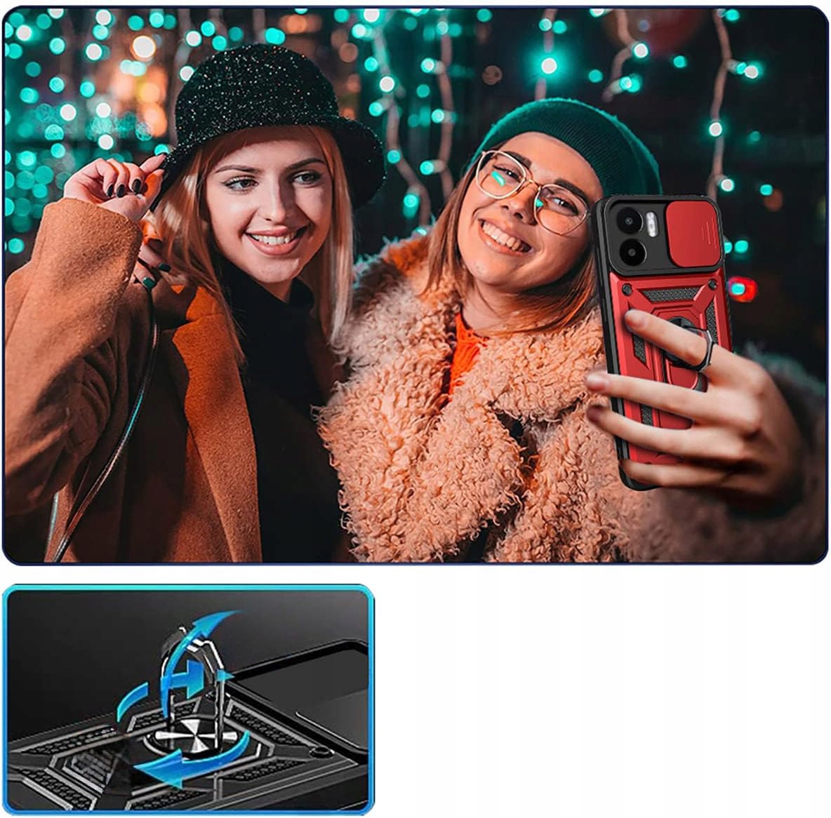 ETUI PANCERNE DO REDMI A1 / A2 OCHRONA APARATU SLIDE RING CASE + SZKŁO