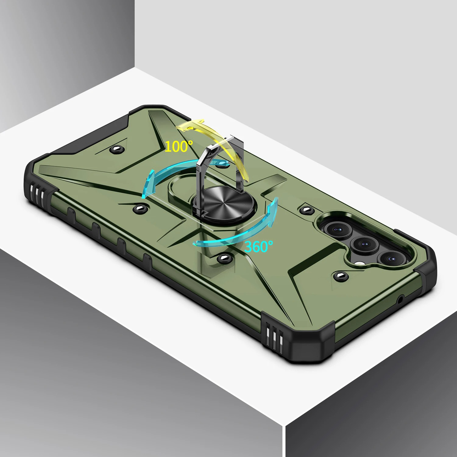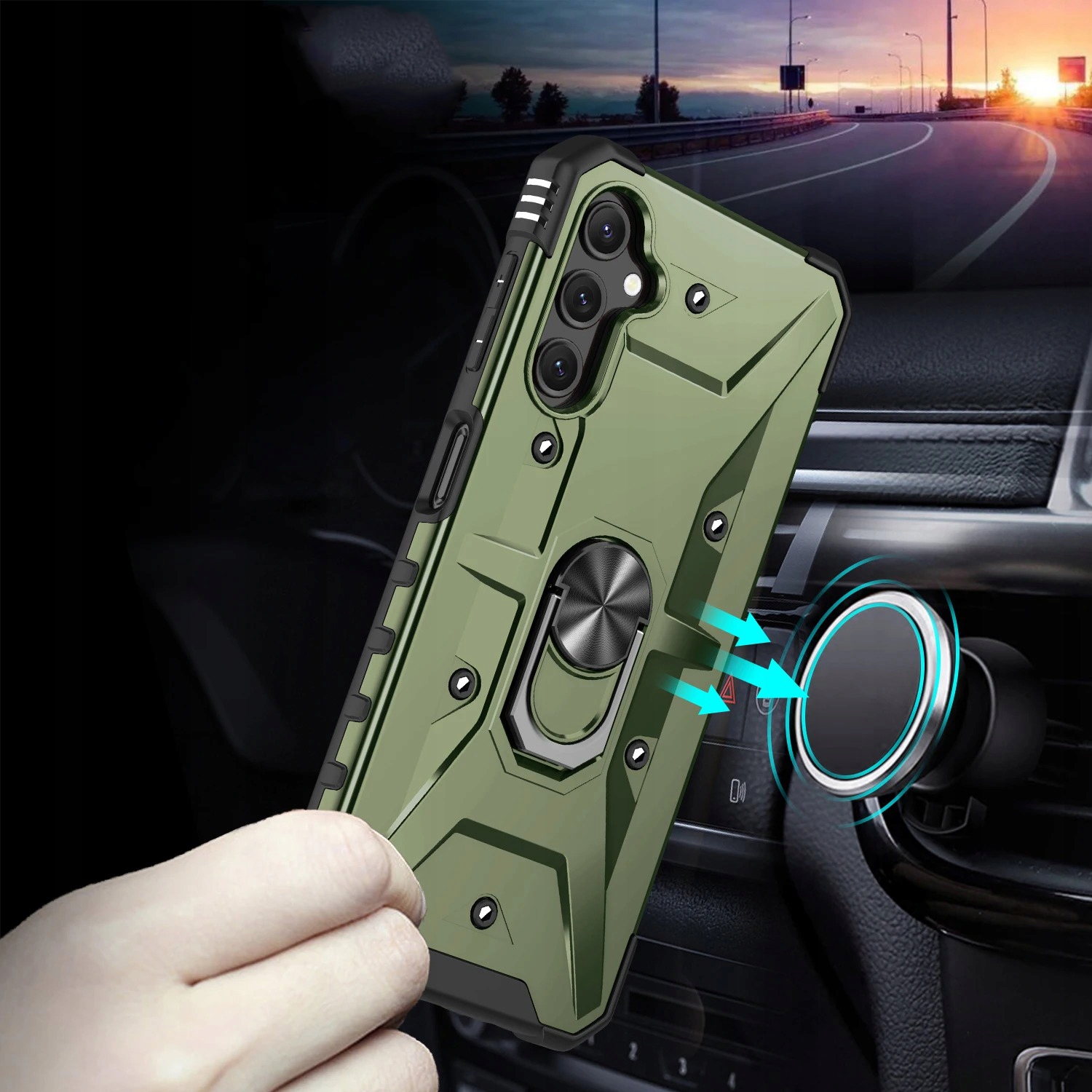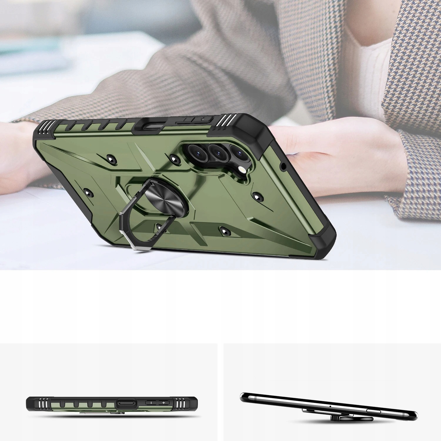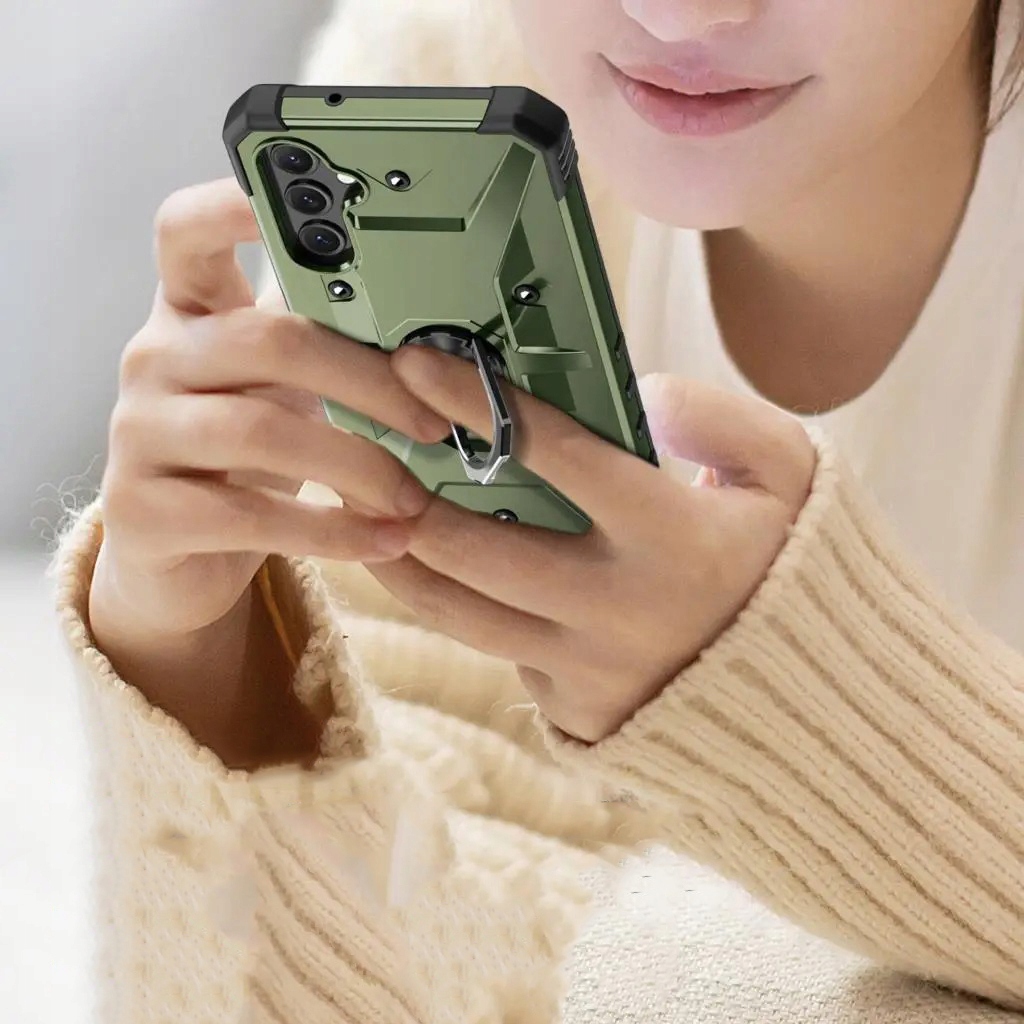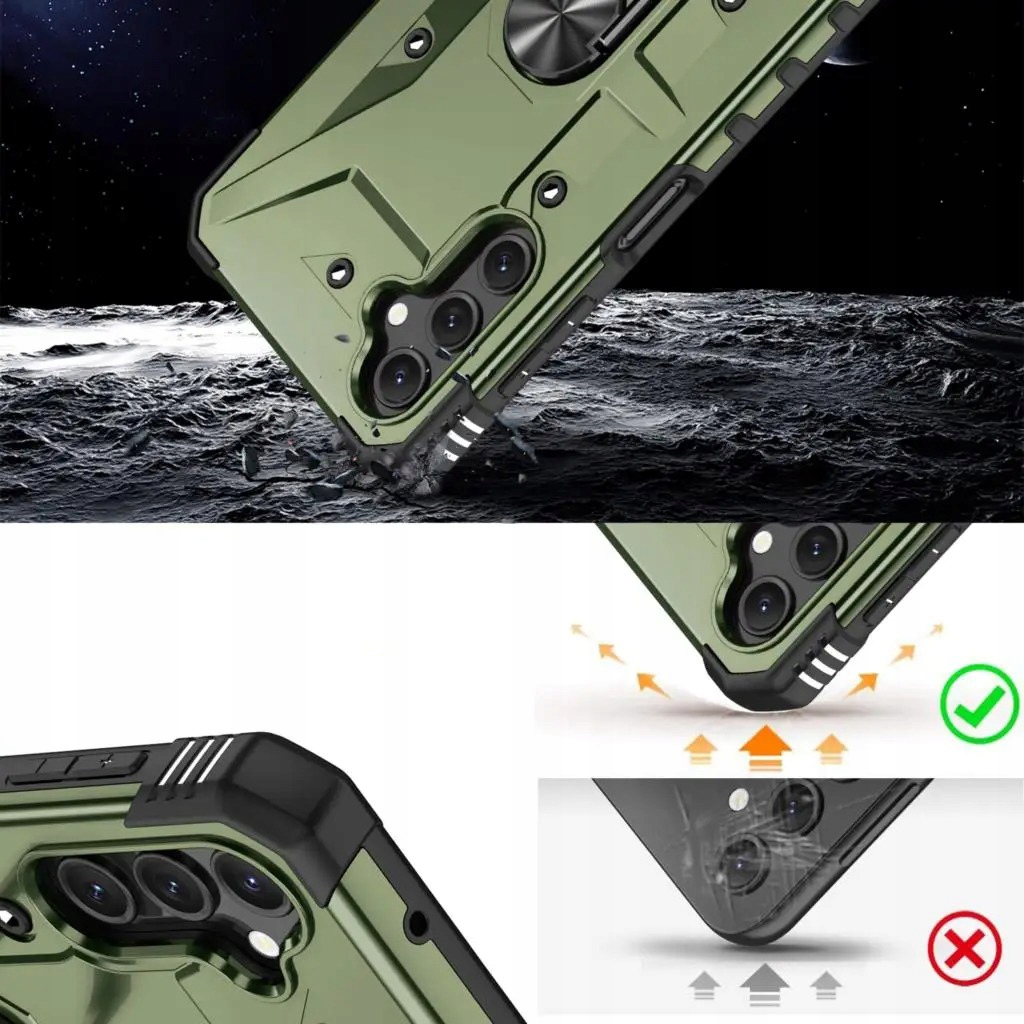 Pancerne etui to konstrukcja dwa w jednym z PC i TPU, z obudową PC, która jest mocna, trwała i odporna na wstrząsy , podszyte TPU, dobra elastyczność. Posiada pierścień do trzymania telefonu oraz blaszkę, dzięki czemu etui jest idealne do używania z magnetycznym uchwytem samochodowym.