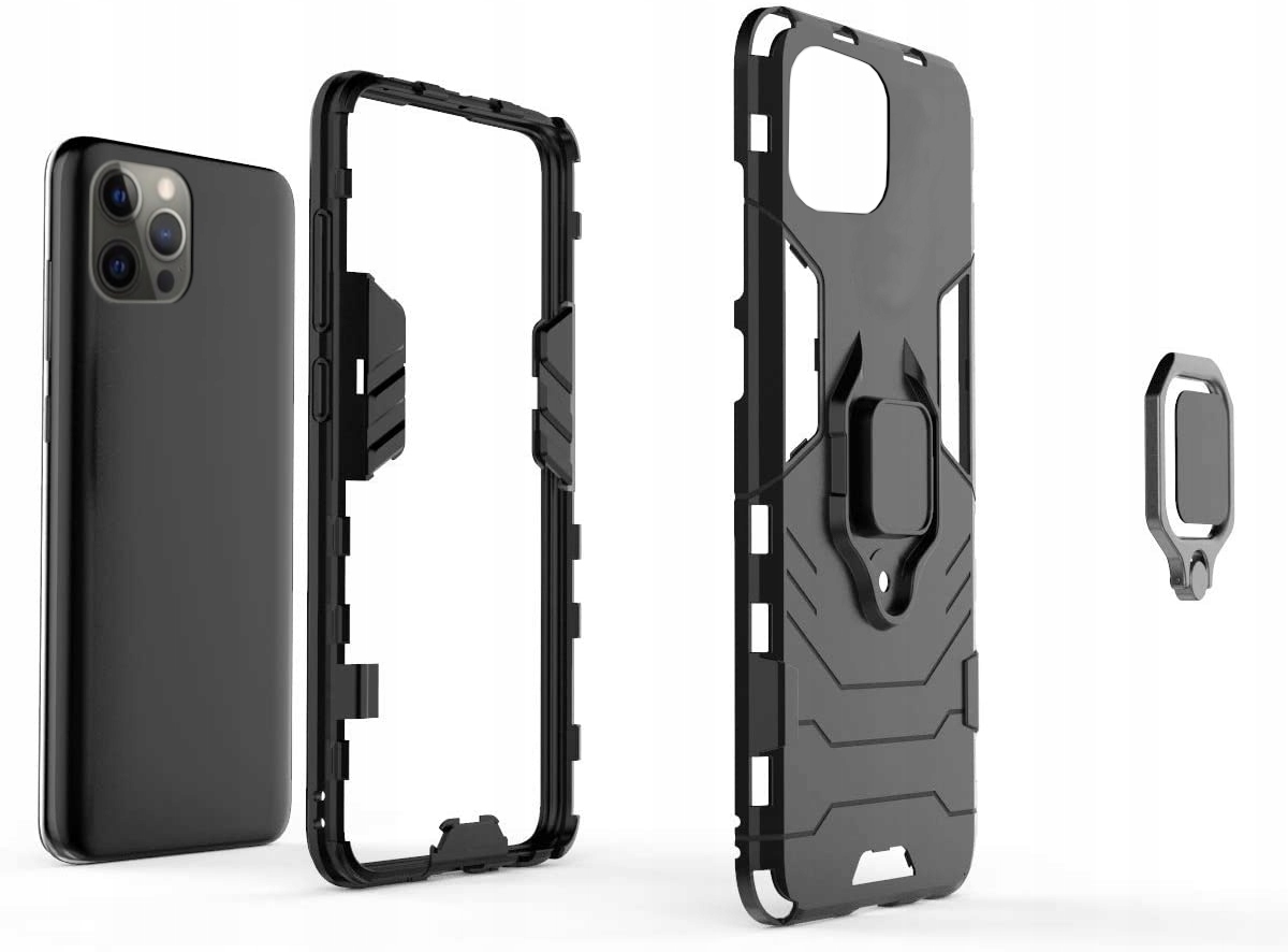 Pancerne etui o innowacyjnym designie. Posiada pierścień do trzymania telefonu oraz blaszkę, dzięki czemu etui jest idealne do używania z magnetycznym uchwytem samochodowym.