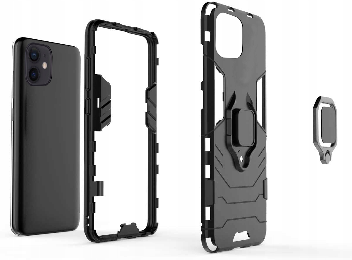 Pancerne etui o innowacyjnym designie. Posiada pierścień do trzymania telefonu oraz blaszkę, dzięki czemu etui jest idealne do używania z magnetycznym uchwytem samochodowym.