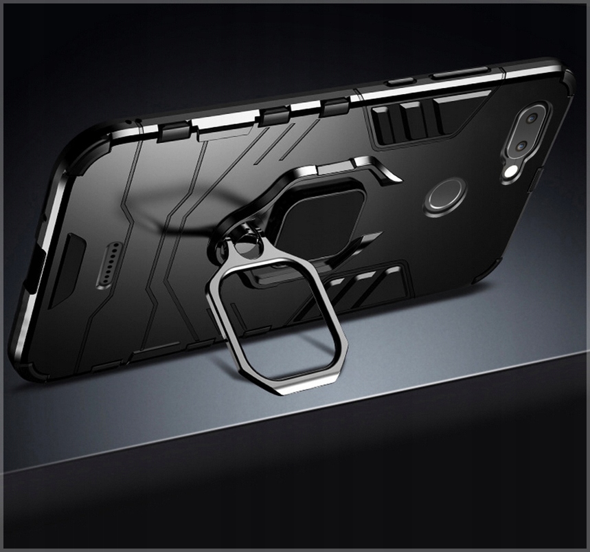 Pancerne etui o innowacyjnym designie. Posiada pierścień do trzymania telefonu oraz blaszkę, dzięki czemu etui jest idealne do używania z magnetycznym uchwytem samochodowym.
