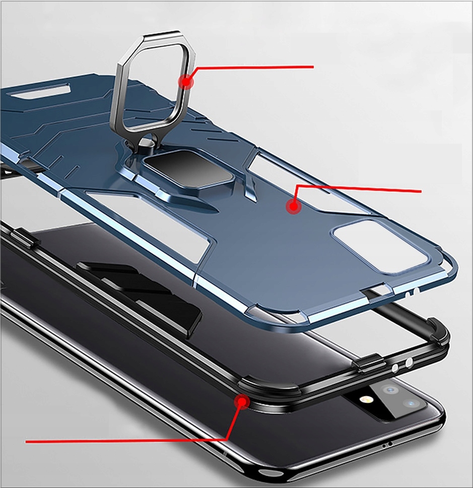 Pancerne etui o innowacyjnym designie. Posiada pierścień do trzymania telefonu oraz blaszkę, dzięki czemu etui jest idealne do używania z magnetycznym uchwytem samochodowym.