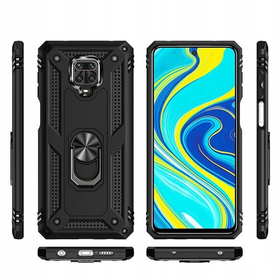 ETUI PANCERNE RING DO XIAOMI REDMI NOTE 9 PRO ARMOR + SZKŁO