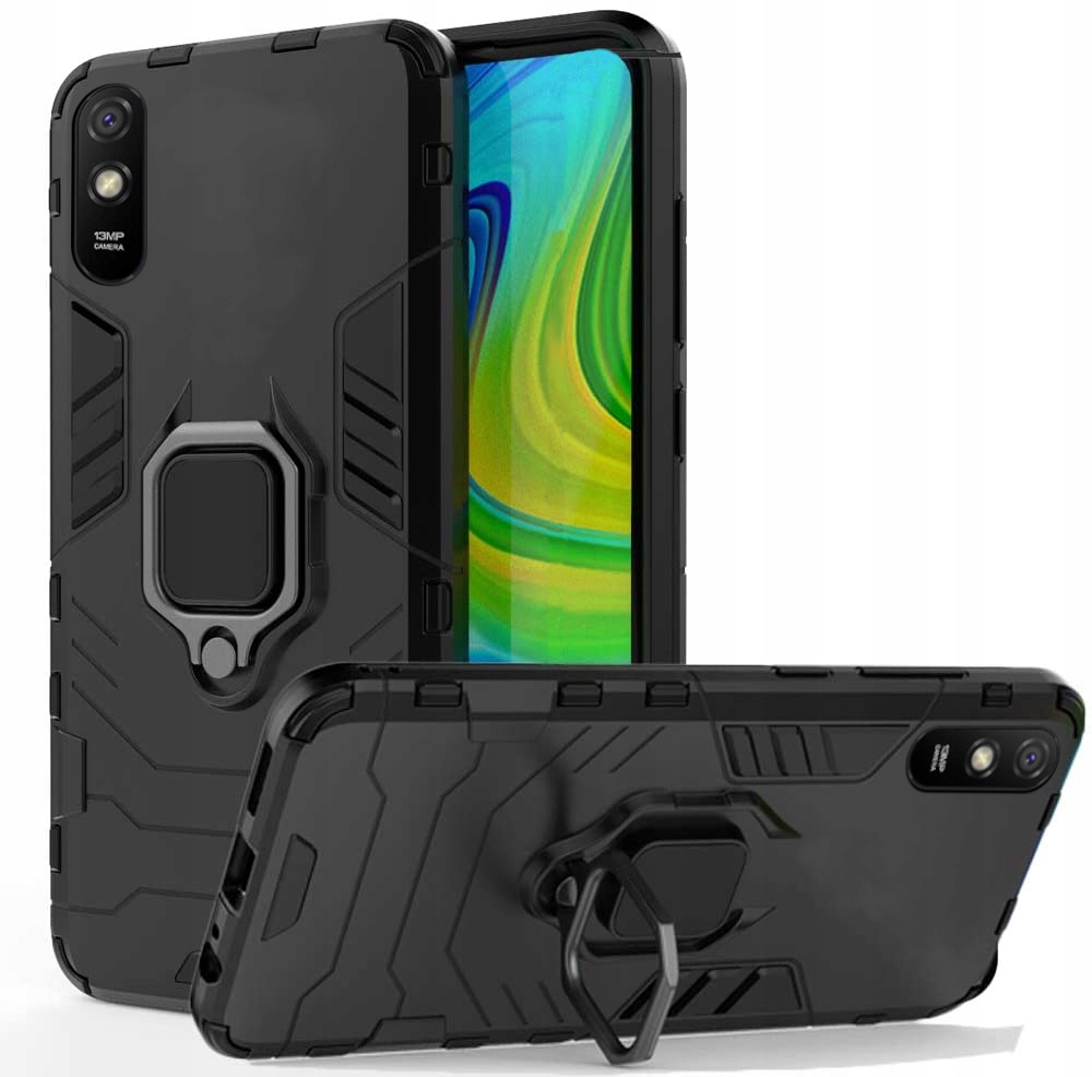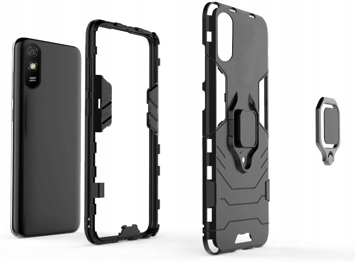 ETUI PANCERNE RING HOLDER DO XIAOMI REDMI 9A SZKŁO + SZKŁO
