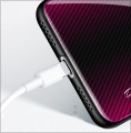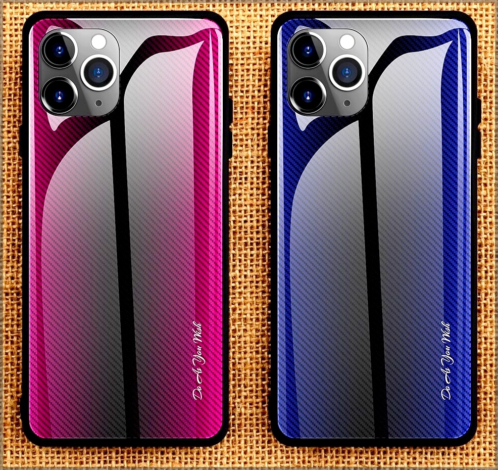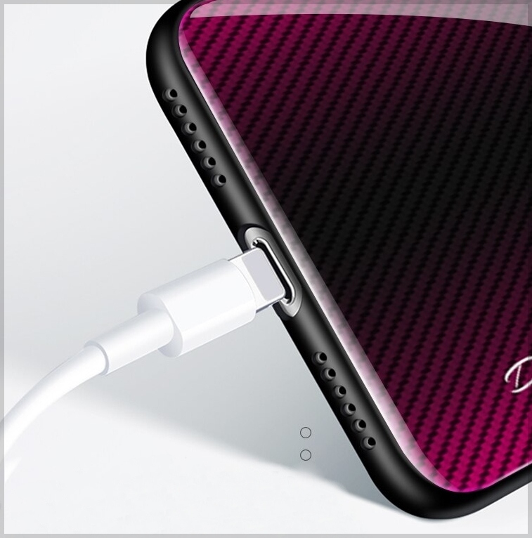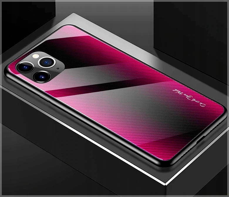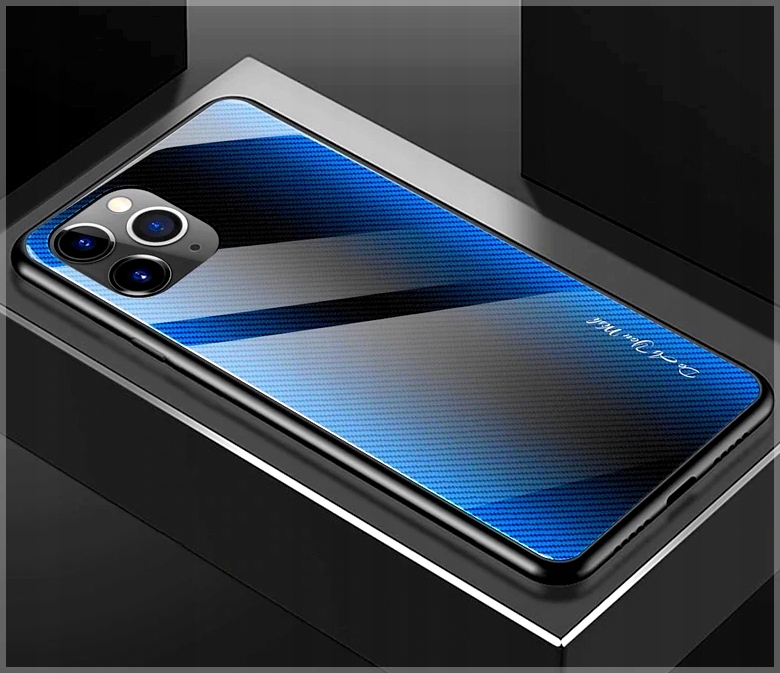 Etui wykonane ze szklanego panelu z połyskującą strukturą oraz elastycznej, matowej ramki. Posiadające dodatkowo właściwość amortyzowania uderzenia w razie upadku. Podwyższany rant idealnie ochroni wyświetlacz a połączenie gradientu i struktury carbonu nada urządzeniu oryginalnego wyglądu.