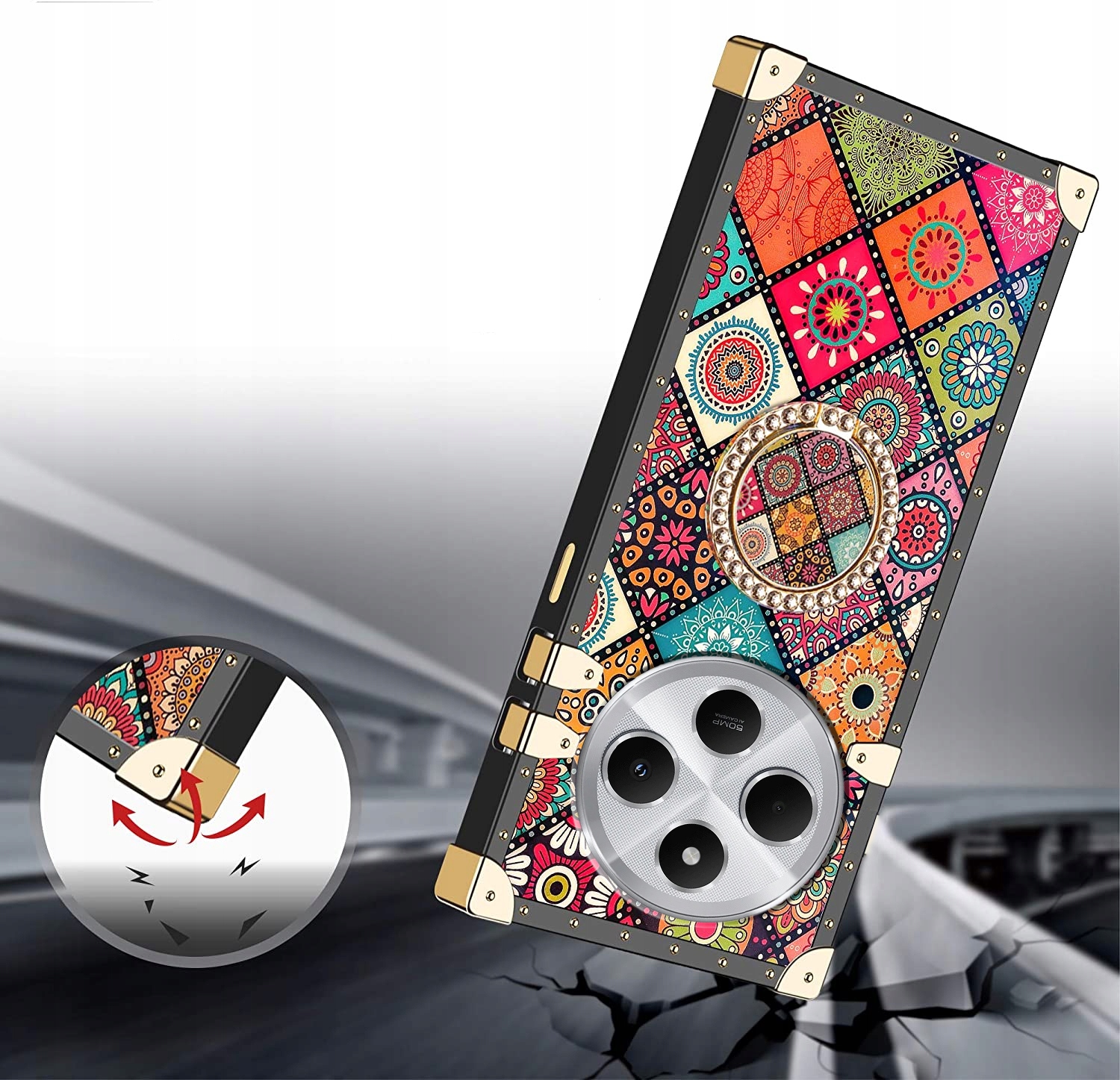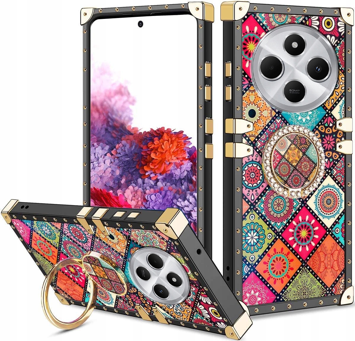 ETUI XIAOMI REDMI 14C LUKSUSOWE GLAMOUR SILIKON RING MOCNE CASE + SZKŁO
