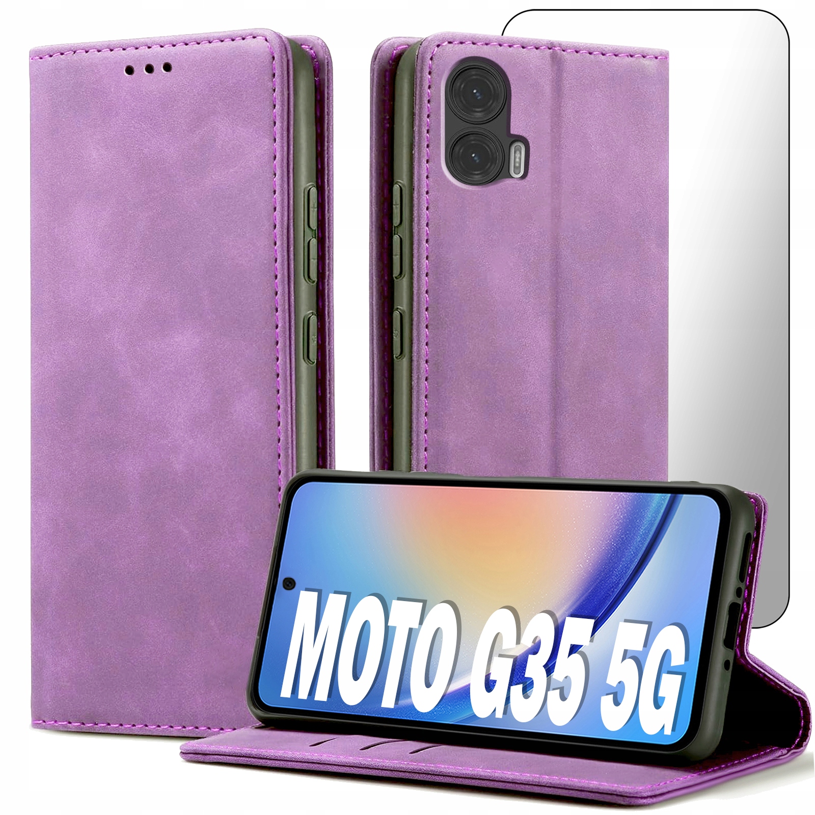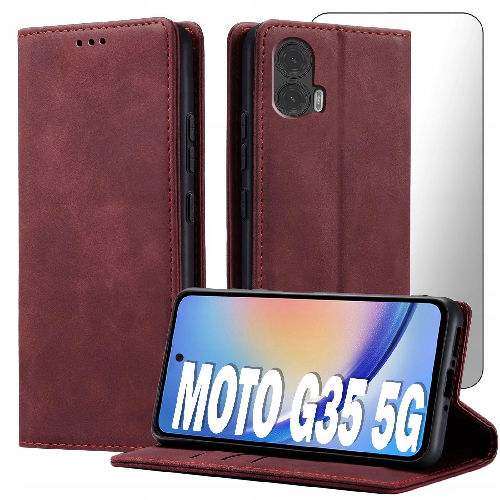 ETUI Z KLAPKĄ DO MOTOROLA MOTO G35 5G ECOSKÓRA PORTFEL MAGNETYCZNE + SZKŁO