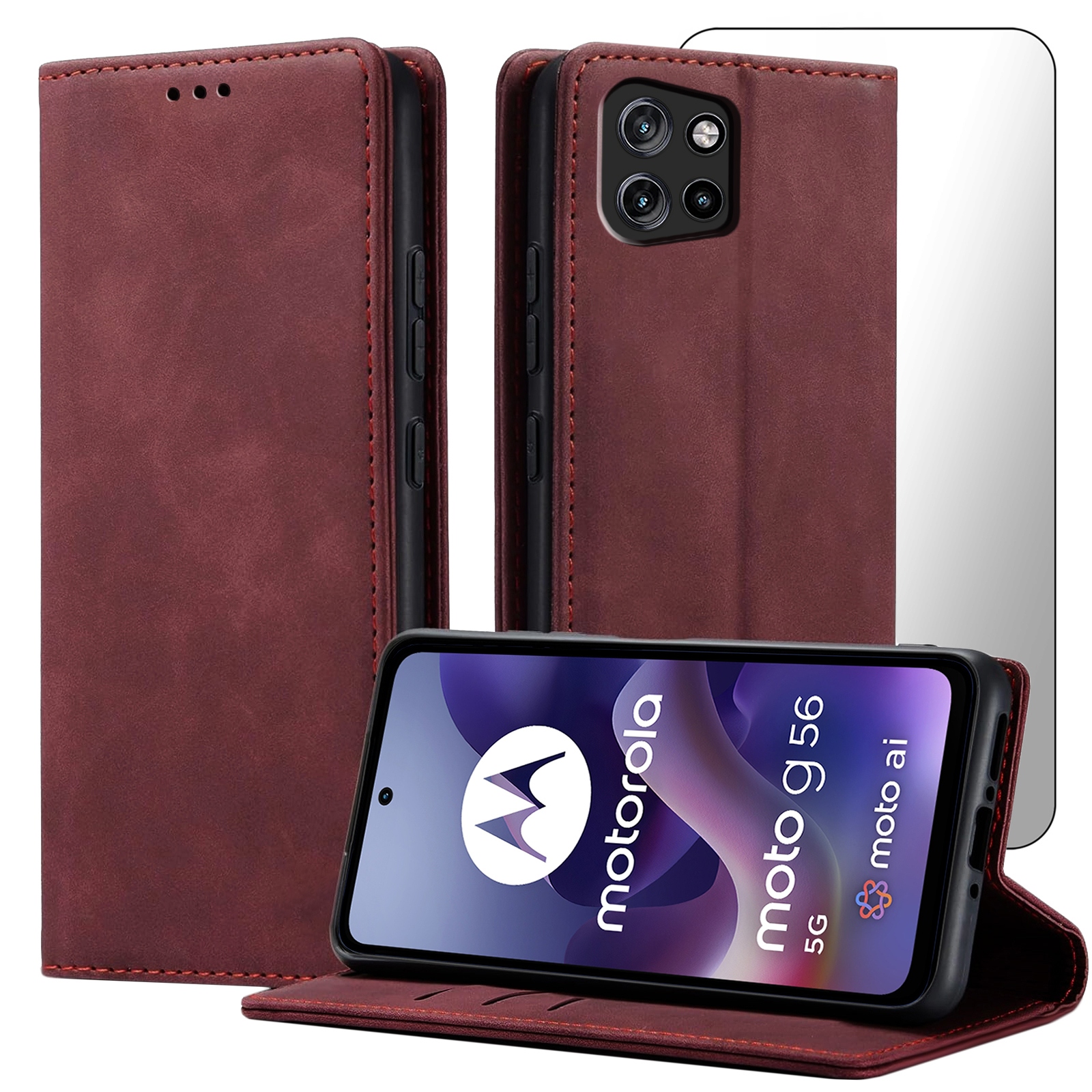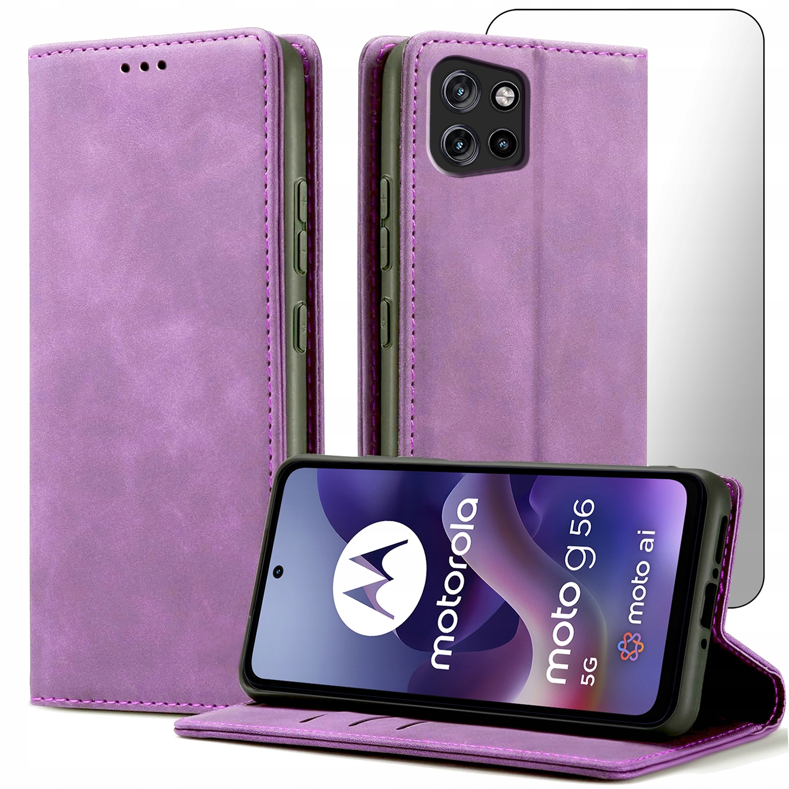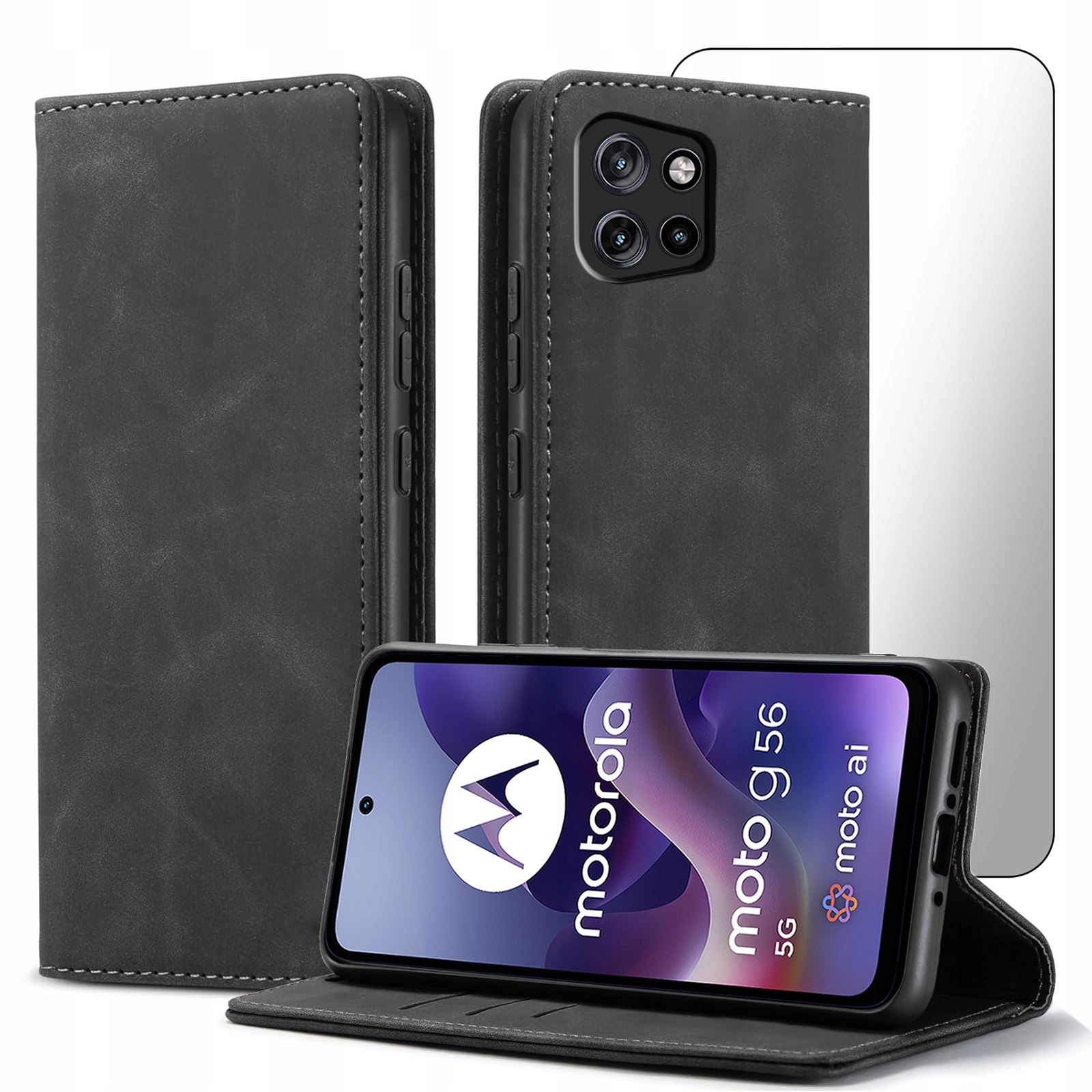 ETUI Z KLAPKĄ DO MOTOROLA MOTO G56 5G ECOSKÓRA PORTFEL MAGNETYCZNE + SZKŁO