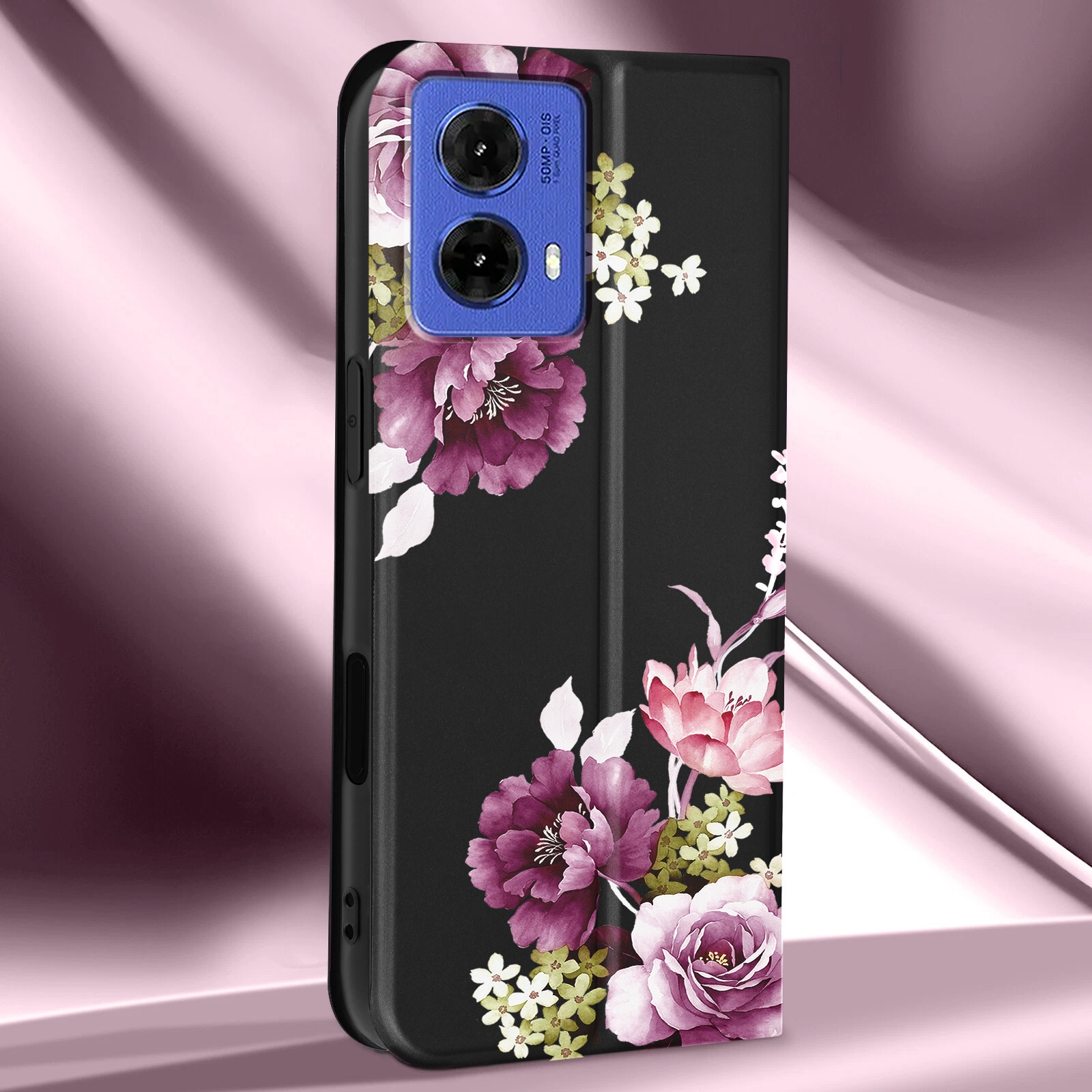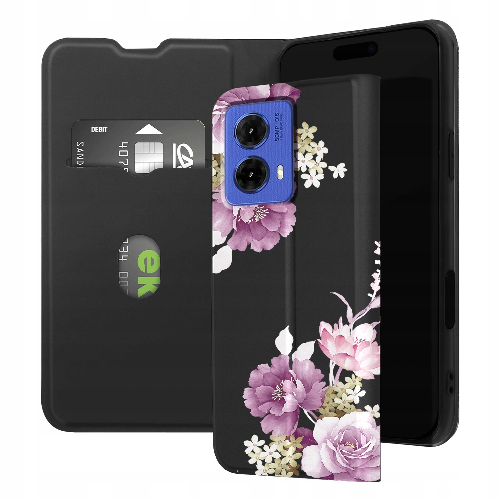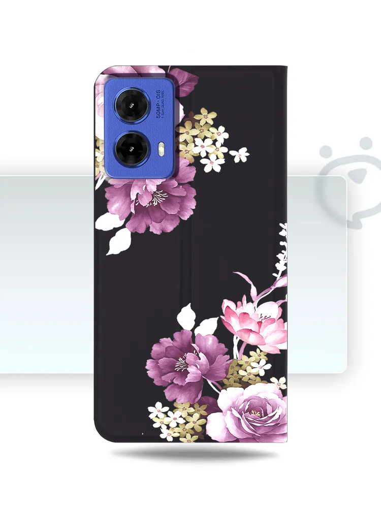 ETUI Z KLAPKĄ DO MOTOROLA MOTO G85 5G PORTFEL MAGNETYCZNE KWIATY + SZKŁO
