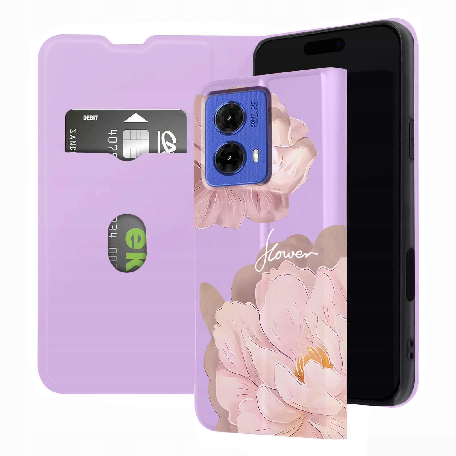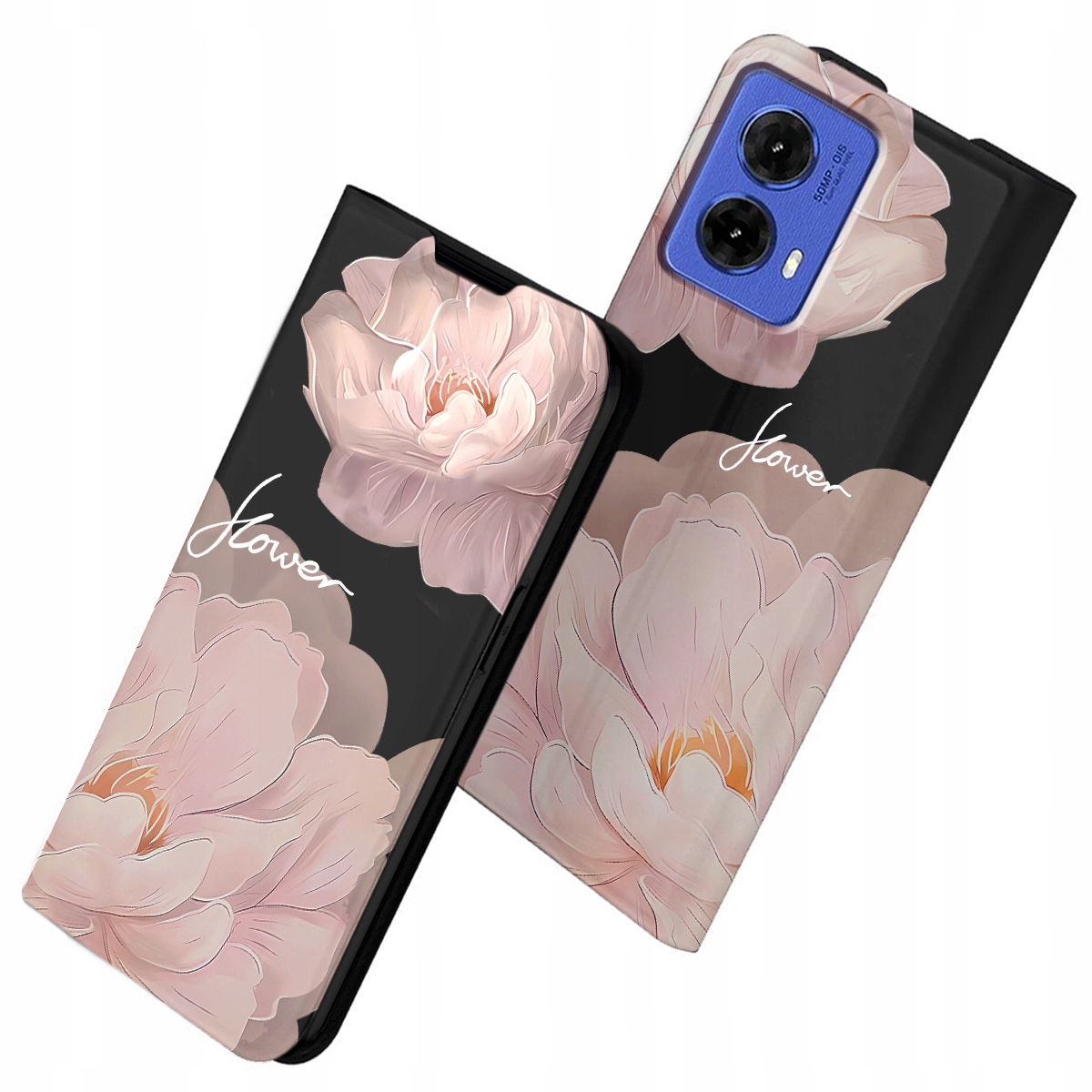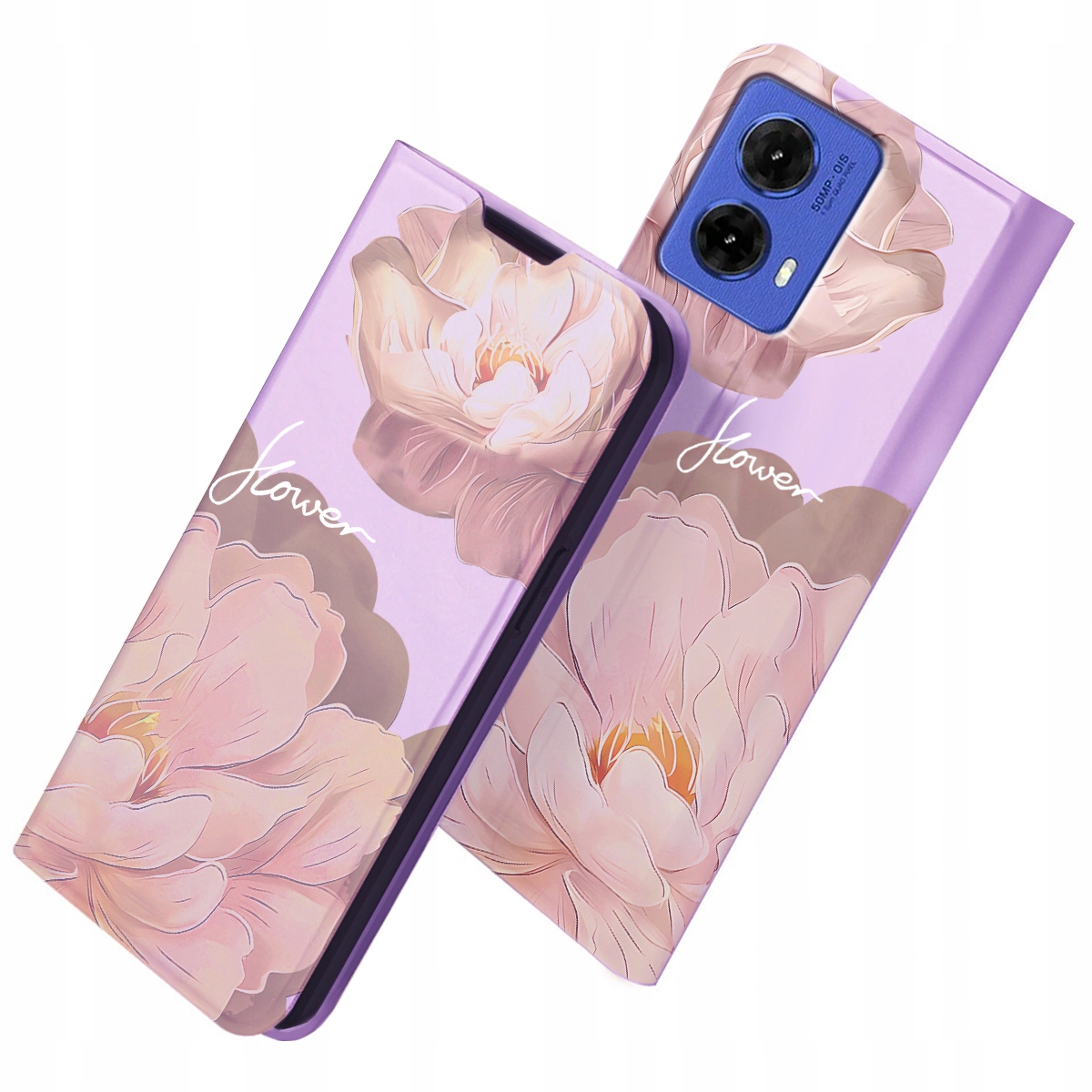 ETUI Z KLAPKĄ DO MOTOROLA MOTO G85 5G PORTFEL MAGNETYCZNE KWIATY + SZKŁO