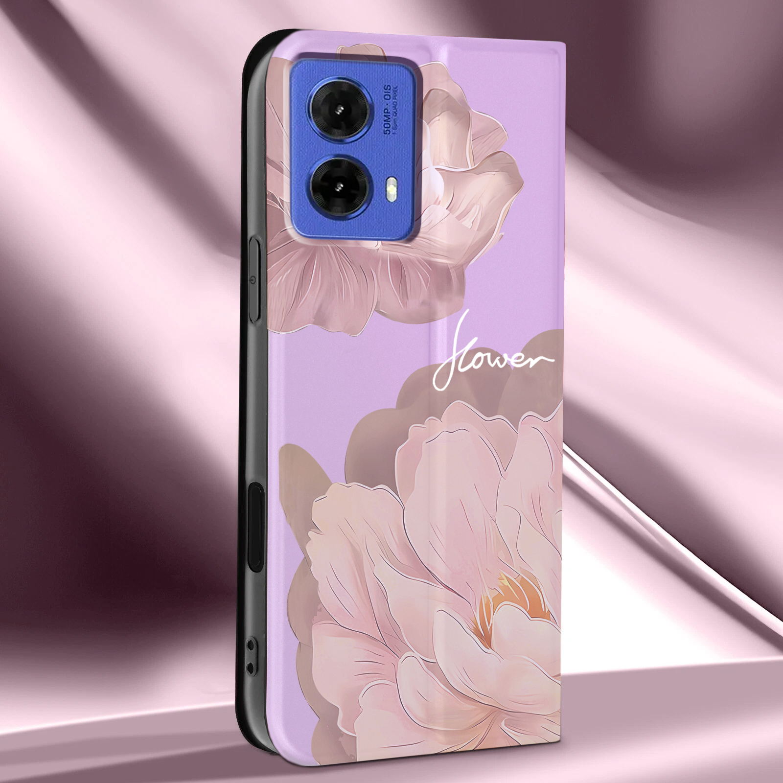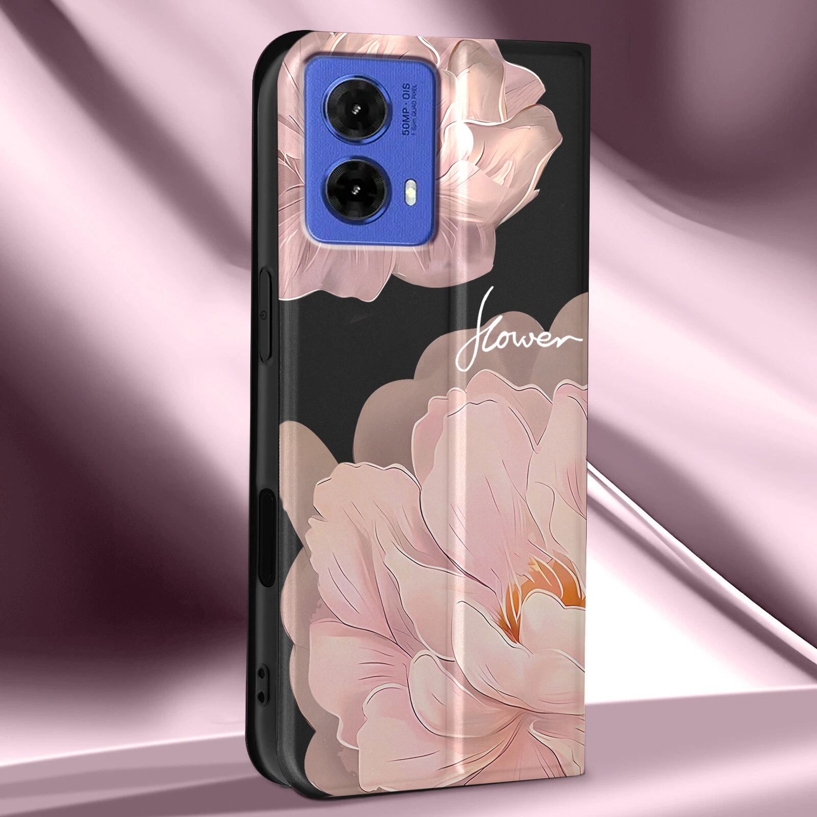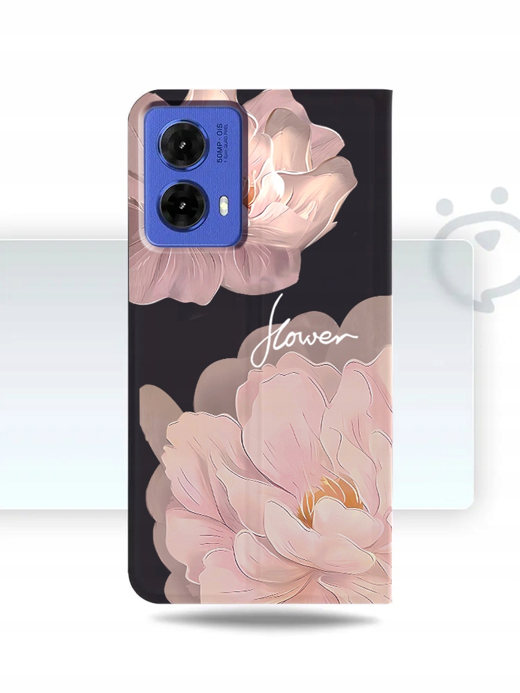 ETUI Z KLAPKĄ DO MOTOROLA MOTO G85 5G PORTFEL MAGNETYCZNE KWIATY + SZKŁO