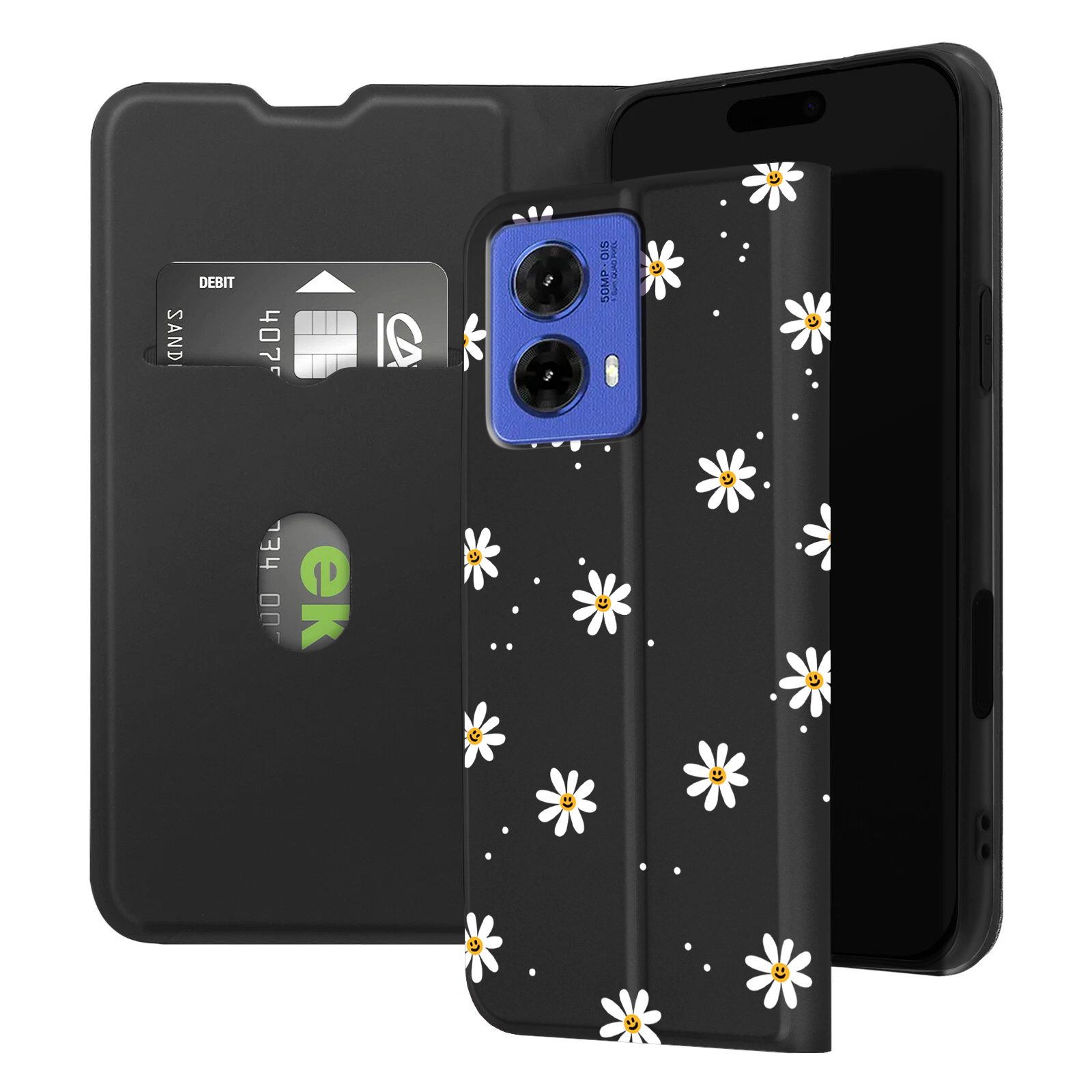 - Stylowy nadruk stokrotek – wyrazisty, trwały wzór, który dodaje pozytywnej energii i wyróżnia telefon na tle innych