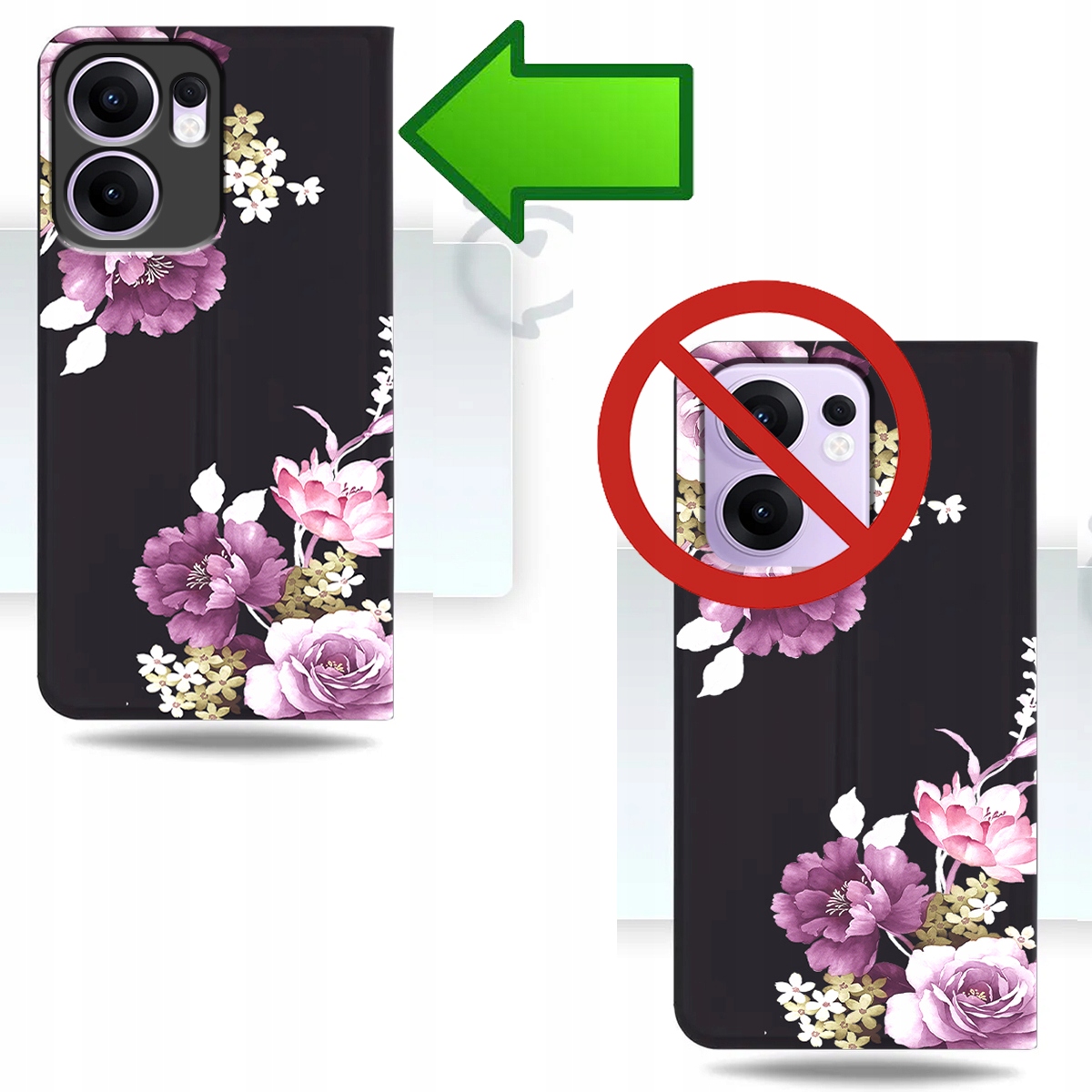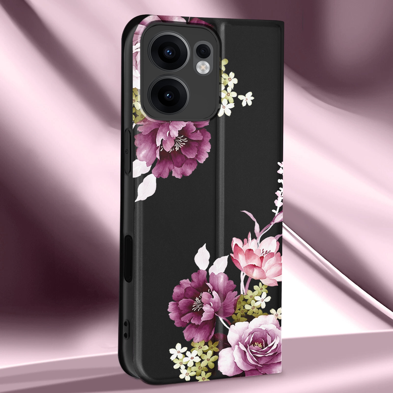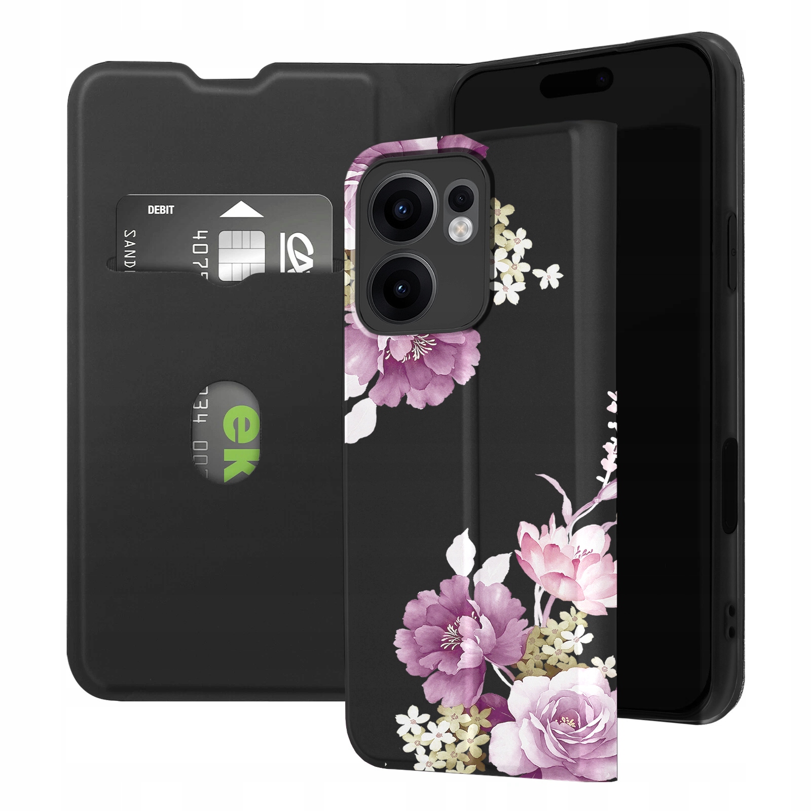 ETUI Z KLAPKĄ DO OPPO RENO13 F / FS PORTFEL MAGNET STYLOWE KWIATY + SZKŁO