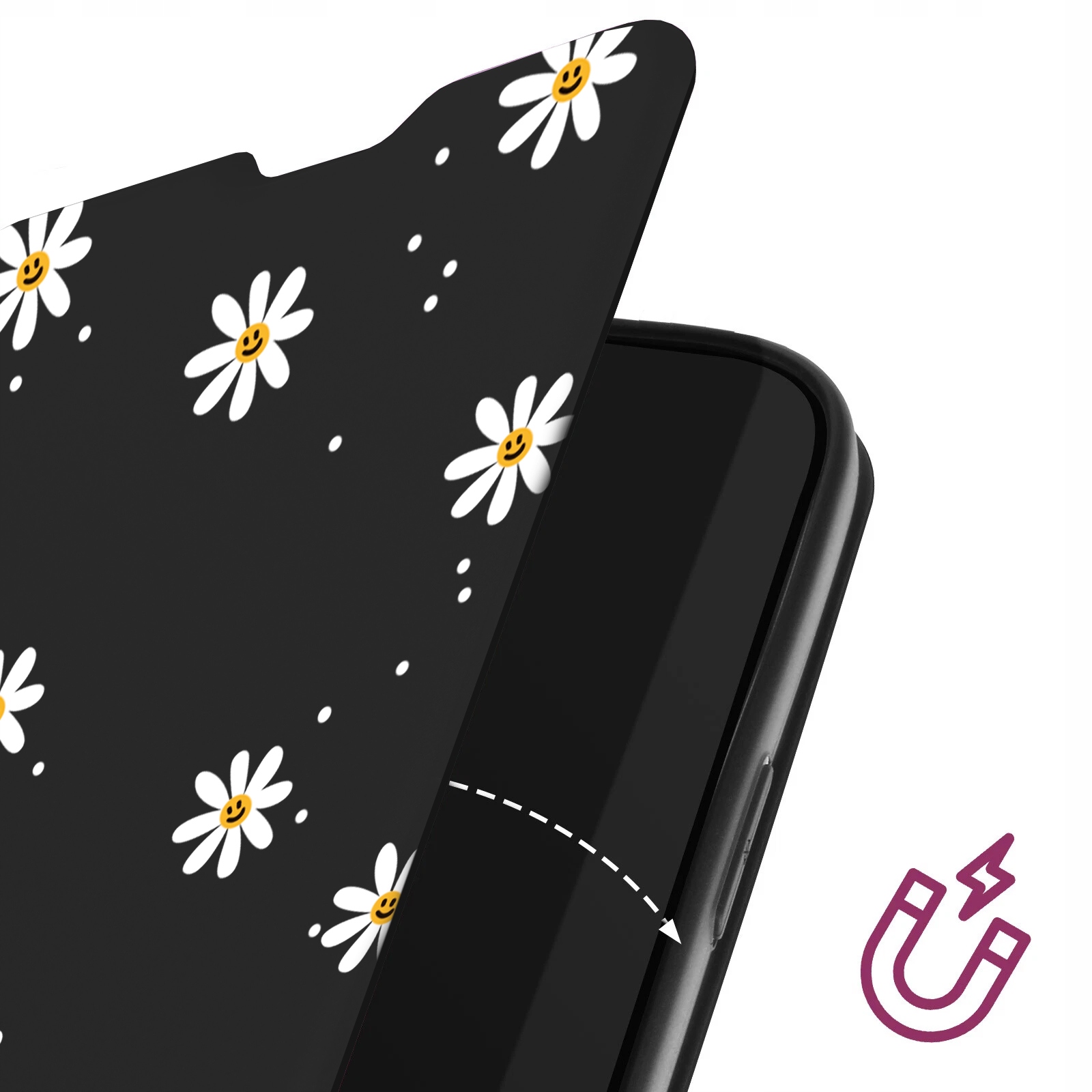 - Stylowy nadruk stokrotek – wyrazisty, trwały wzór, który dodaje pozytywnej energii i wyróżnia telefon na tle innych