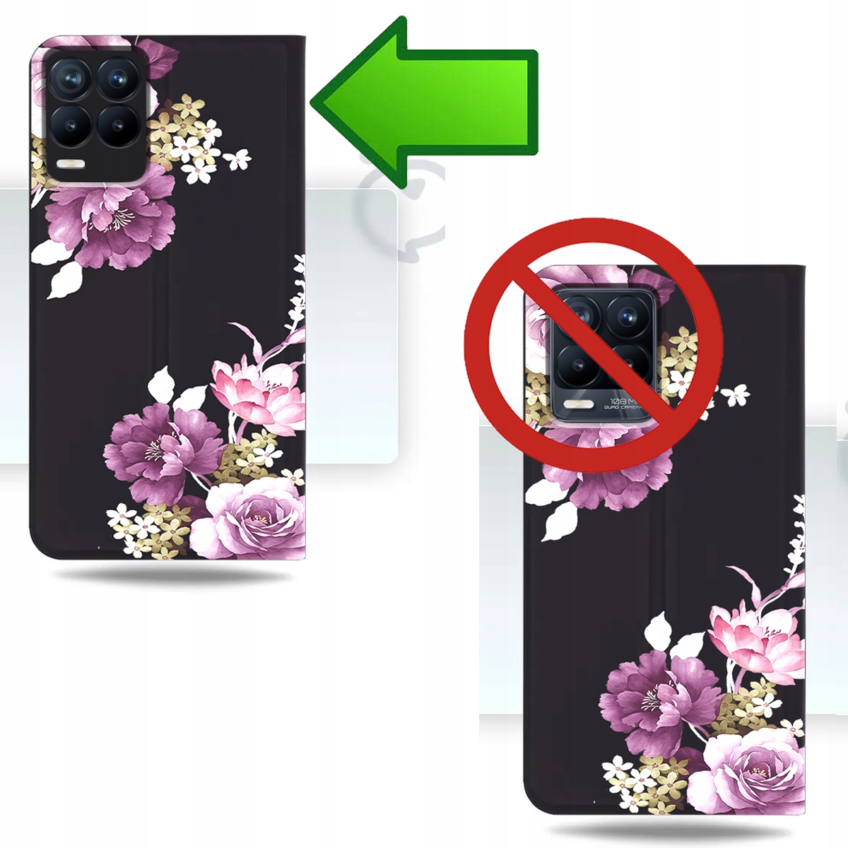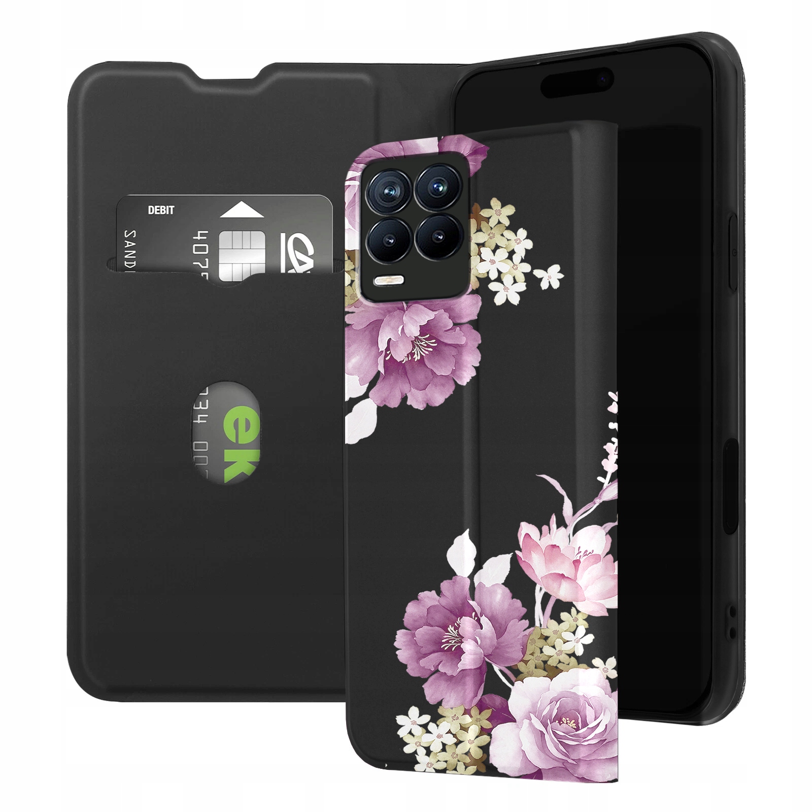 ETUI Z KLAPKĄ DO REALME 8 / 8 PRO PORTFEL MAGNET STYLOWE KWIATY + SZKŁO