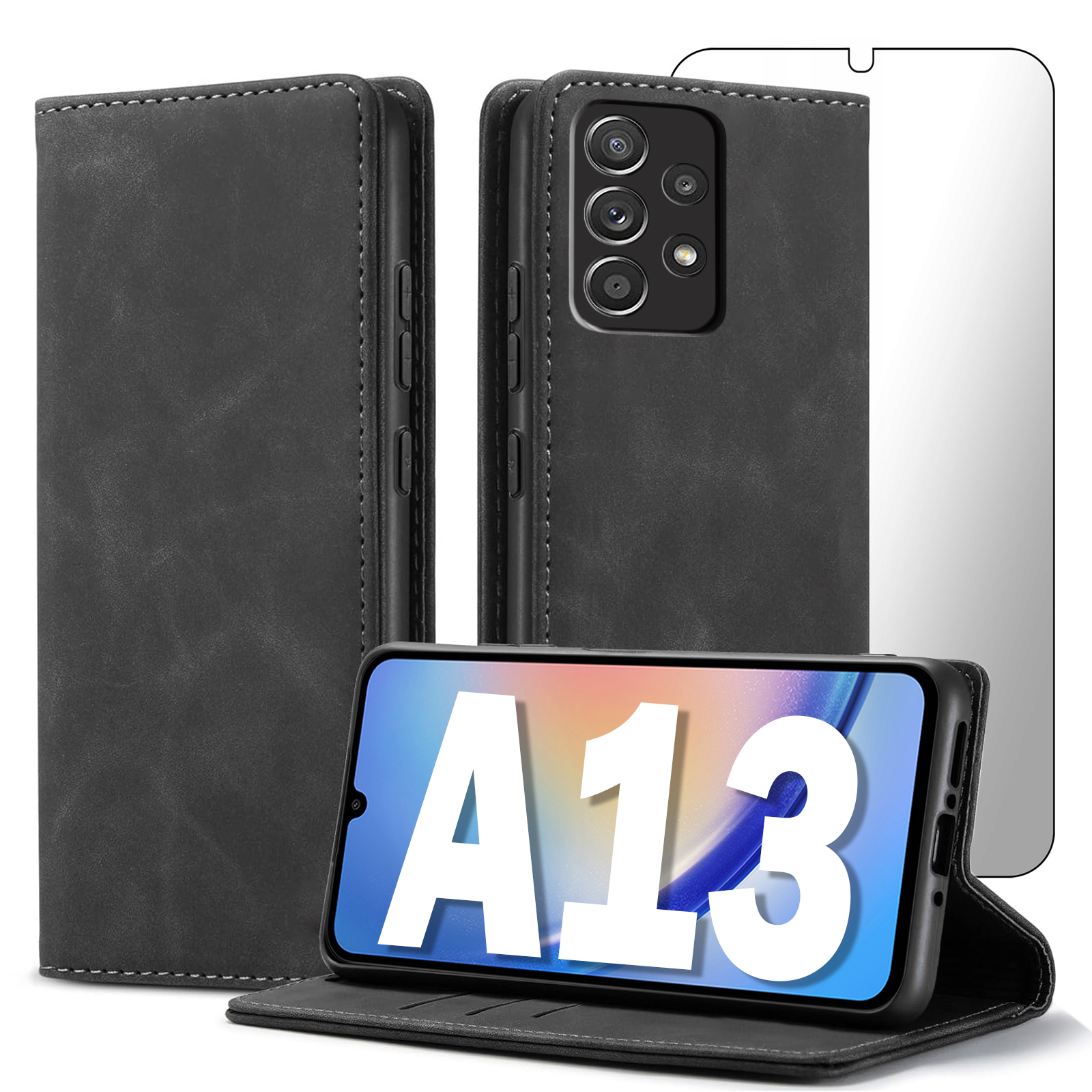 ETUI Z KLAPKĄ DO SAMSUNG A13 4G ECOSKÓRA PORTFEL MAGNETYCNE Ochrona + SZKŁO