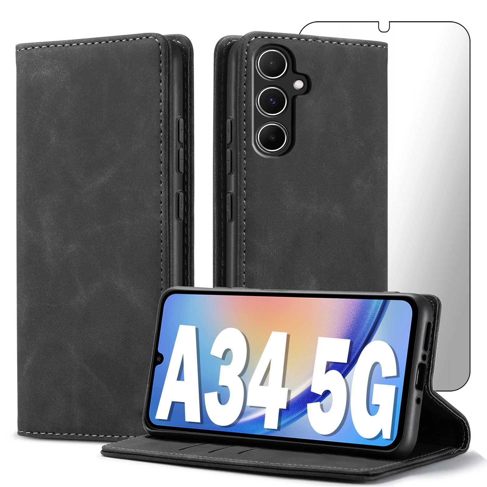 ETUI Z KLAPKĄ DO SAMSUNG A34 5G ECOSKÓRA PORTFEL MAGNETYCNE Ochrona + SZKŁO