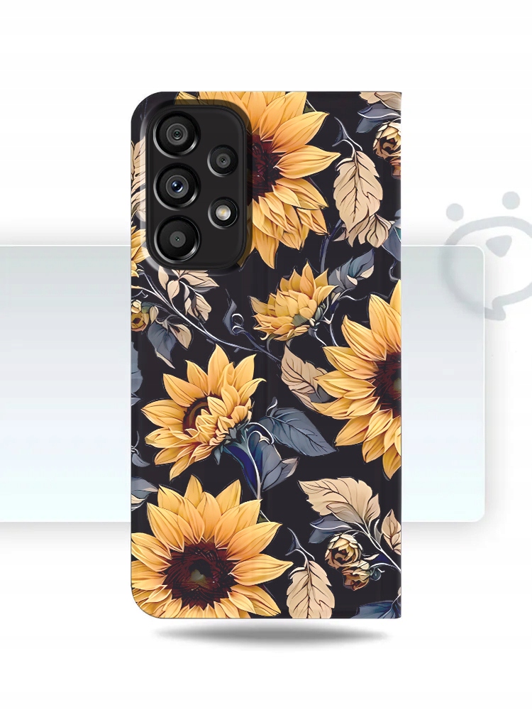 Stylowe , gładkie etui książkowe z pięknym nadrukiem słonecznika to idealne połączenie designu i funkcjonalności .