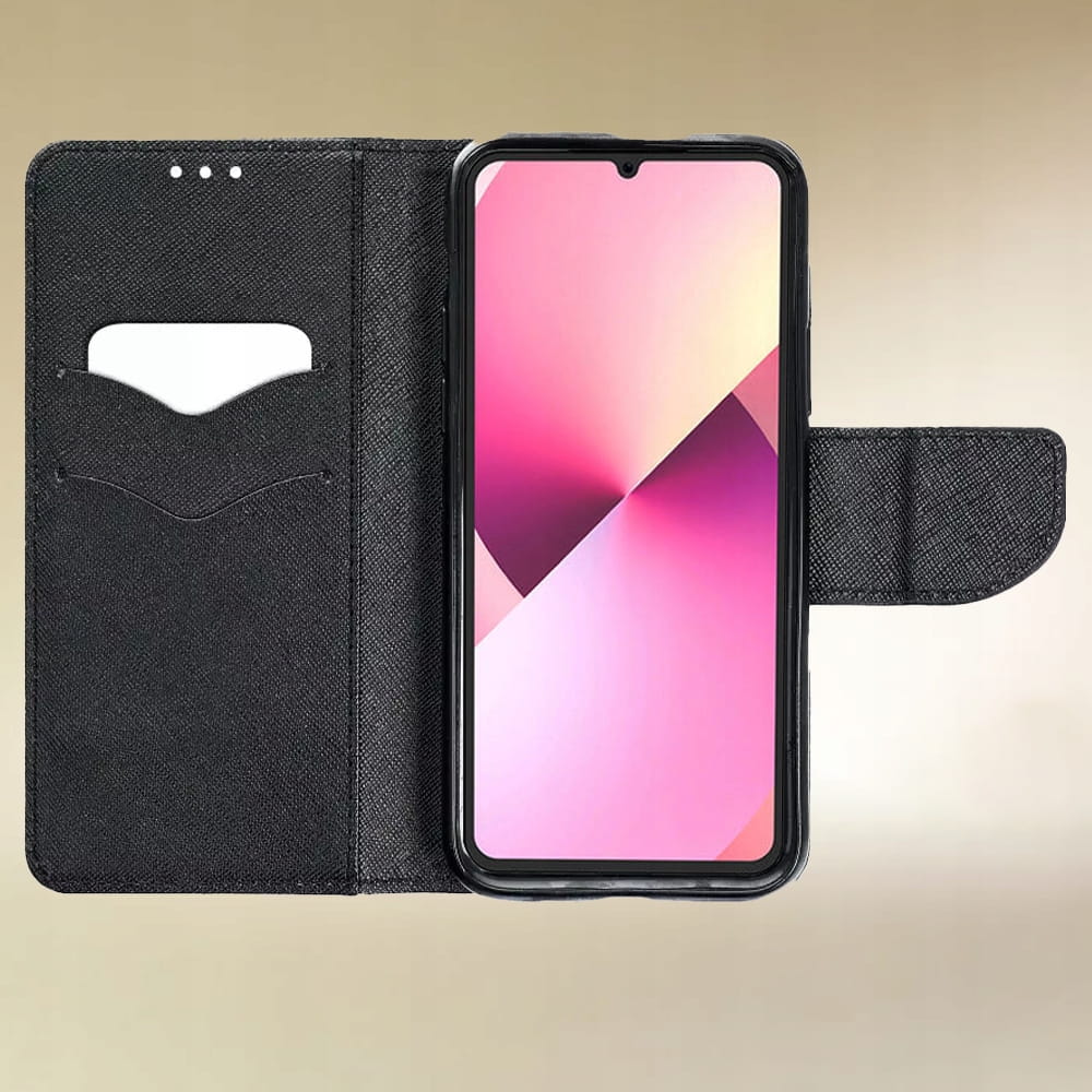 Magnetyczne zapięcie pozwoli zabezpieczyć telefon w eleganckim stylu kiedy nie jest w użyciu. Pokrowiec może pełnić funkcje podstawki do swobodnego oglądania filmów lub zdjęć.