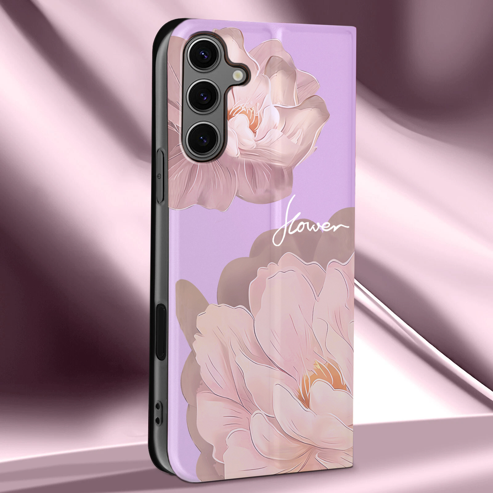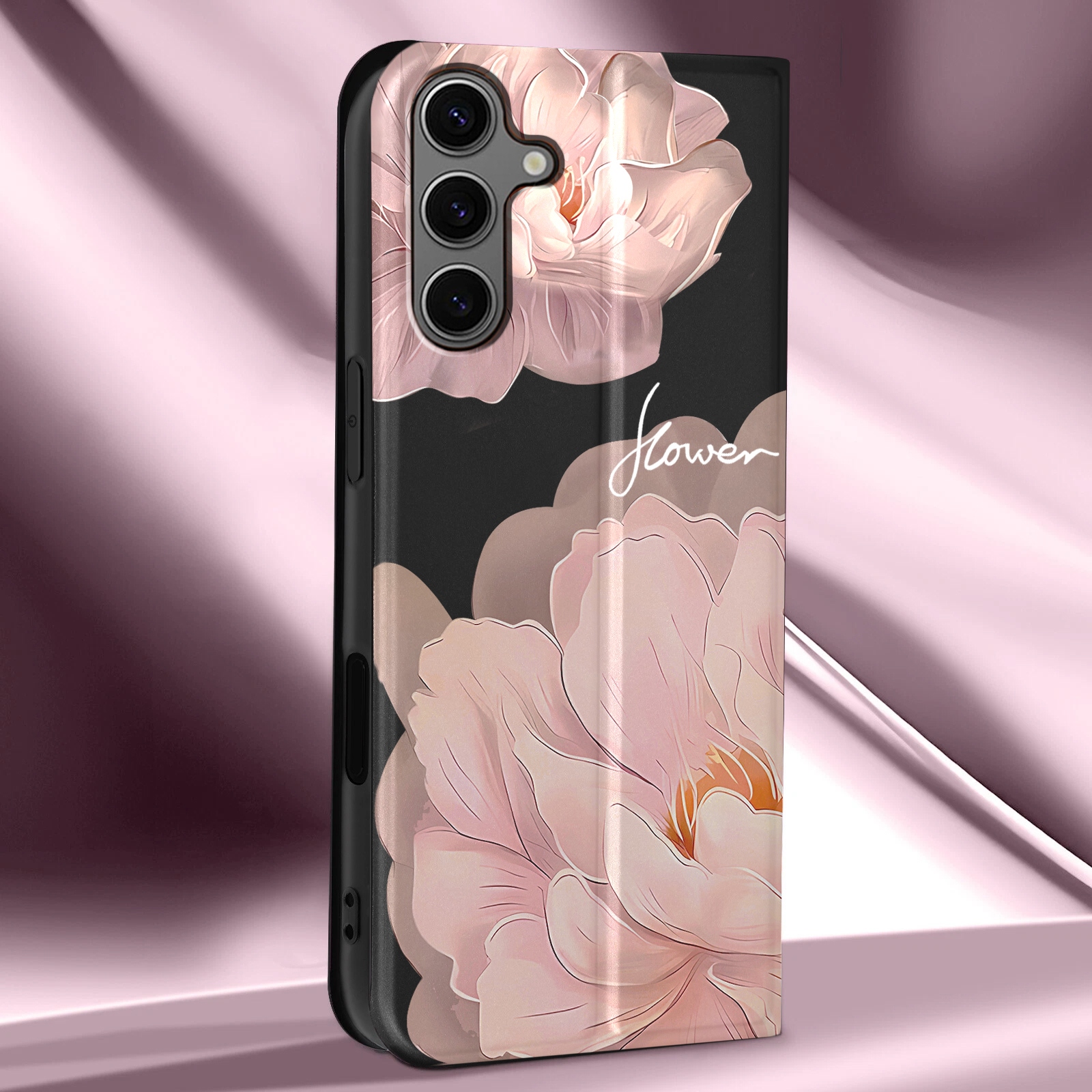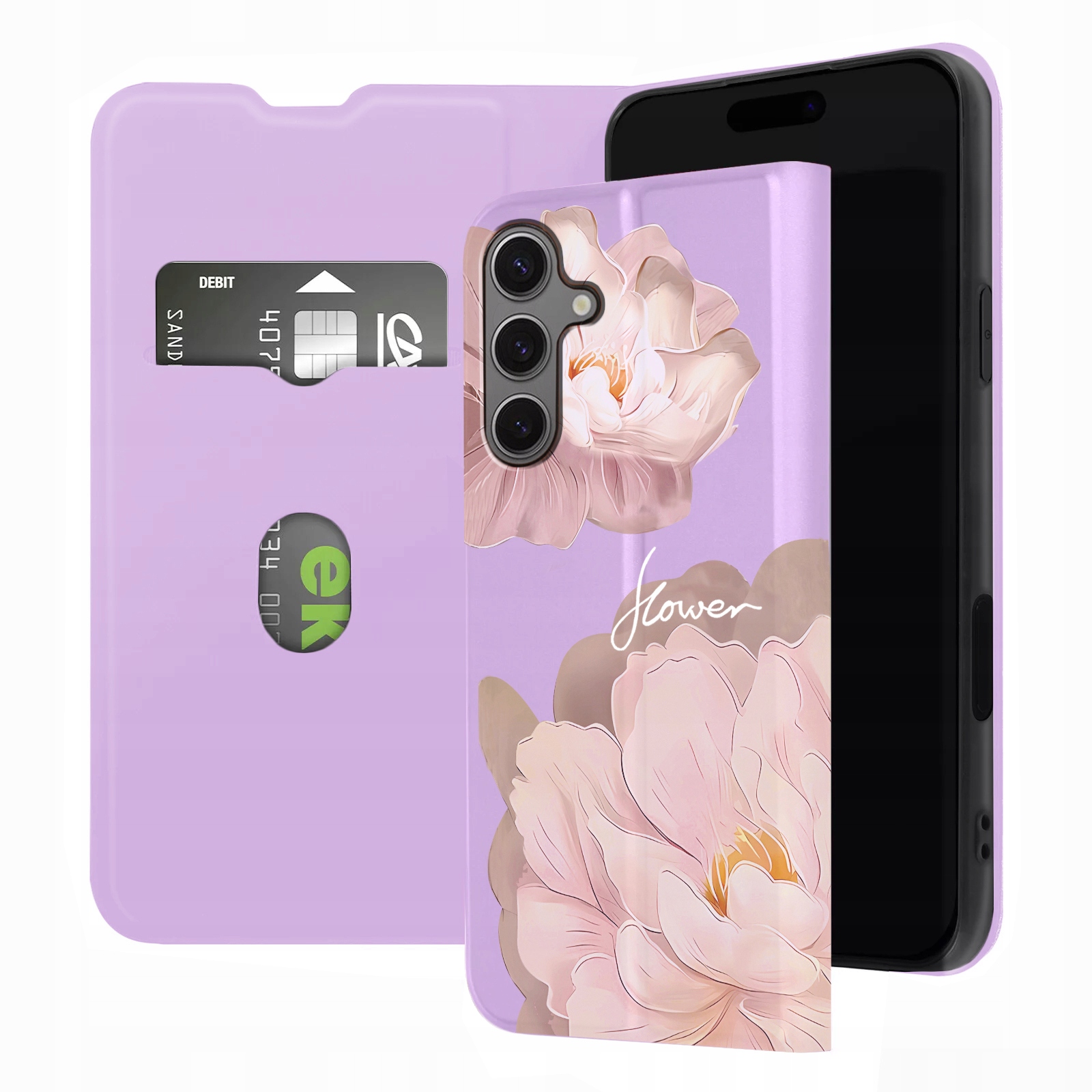 ETUI Z KLAPKĄ DO SAMSUNG M35 5G PORTFEL MAGNETYCZNE STYLOWE KWIATY + SZKŁO
