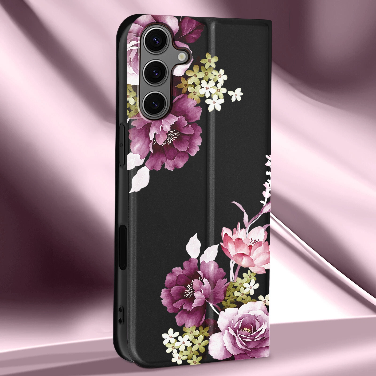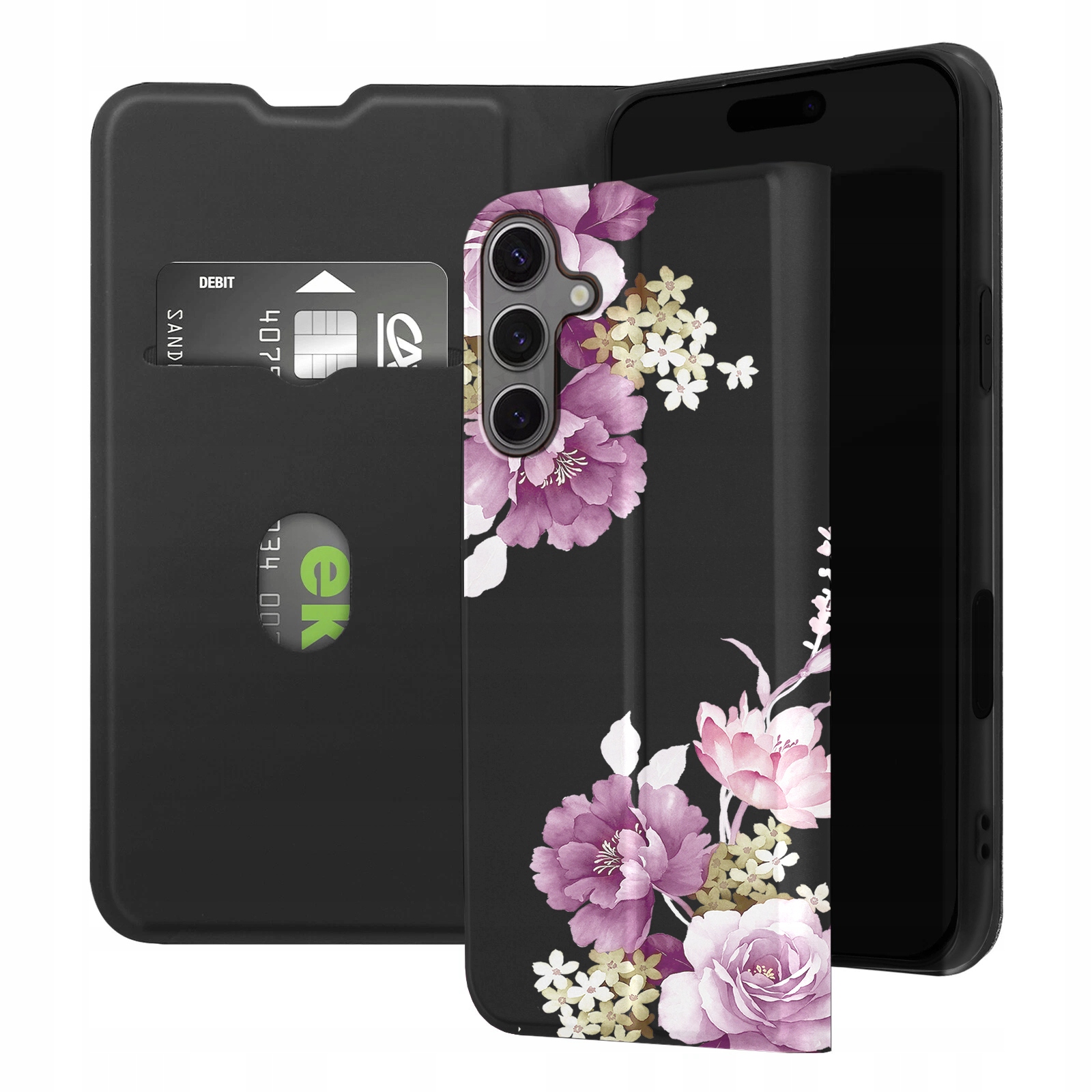 ETUI Z KLAPKĄ DO SAMSUNG M35 5G PORTFEL MAGNETYCZNE STYLOWE KWIATY + SZKŁO