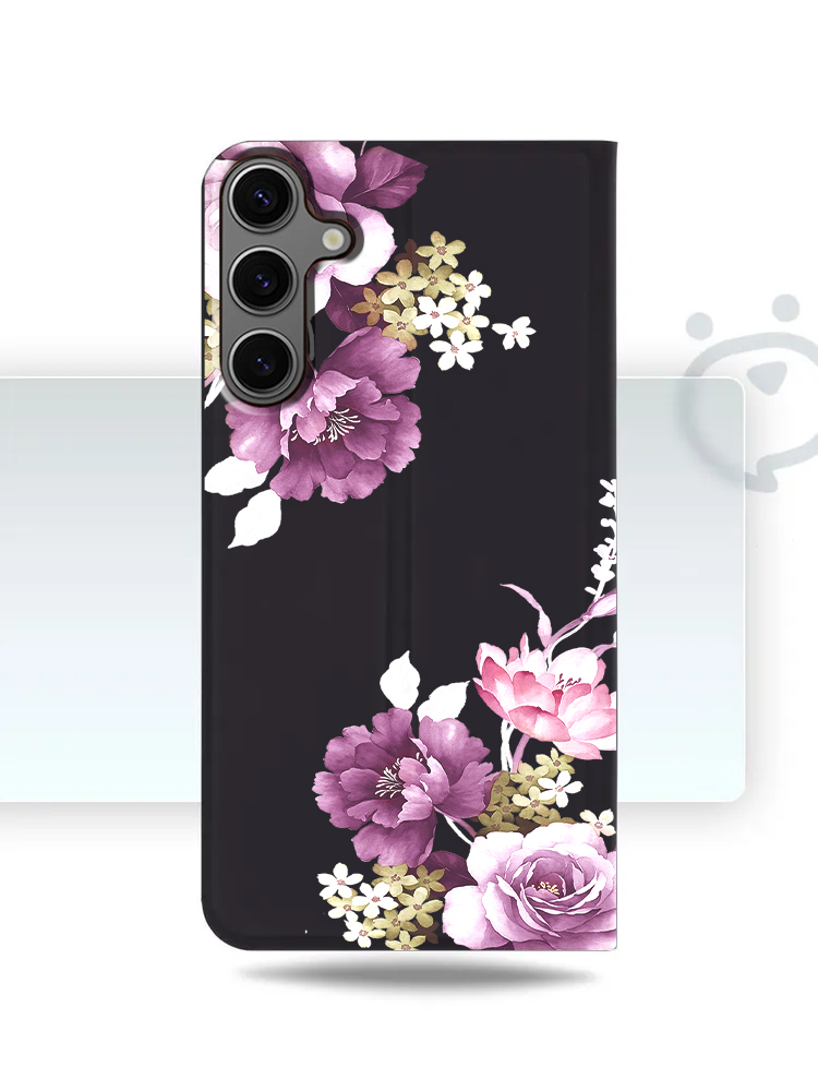 Stylowe , gładkie etui książkowe z pięknym nadrukiem róż to idealne połączenie designu i funkcjonalności .