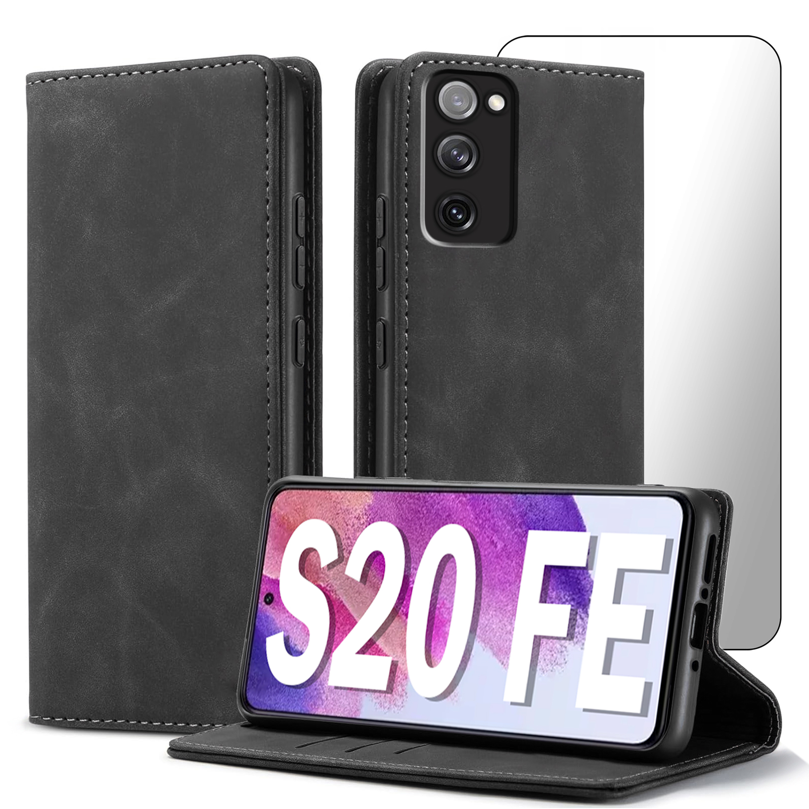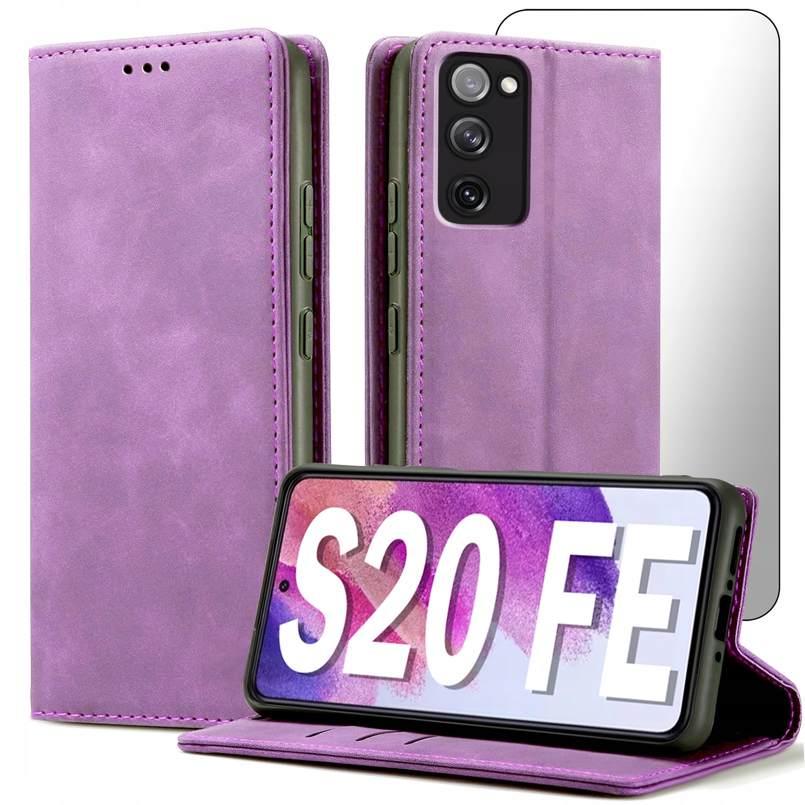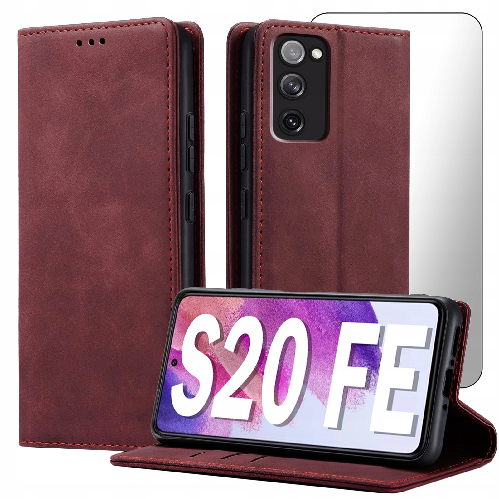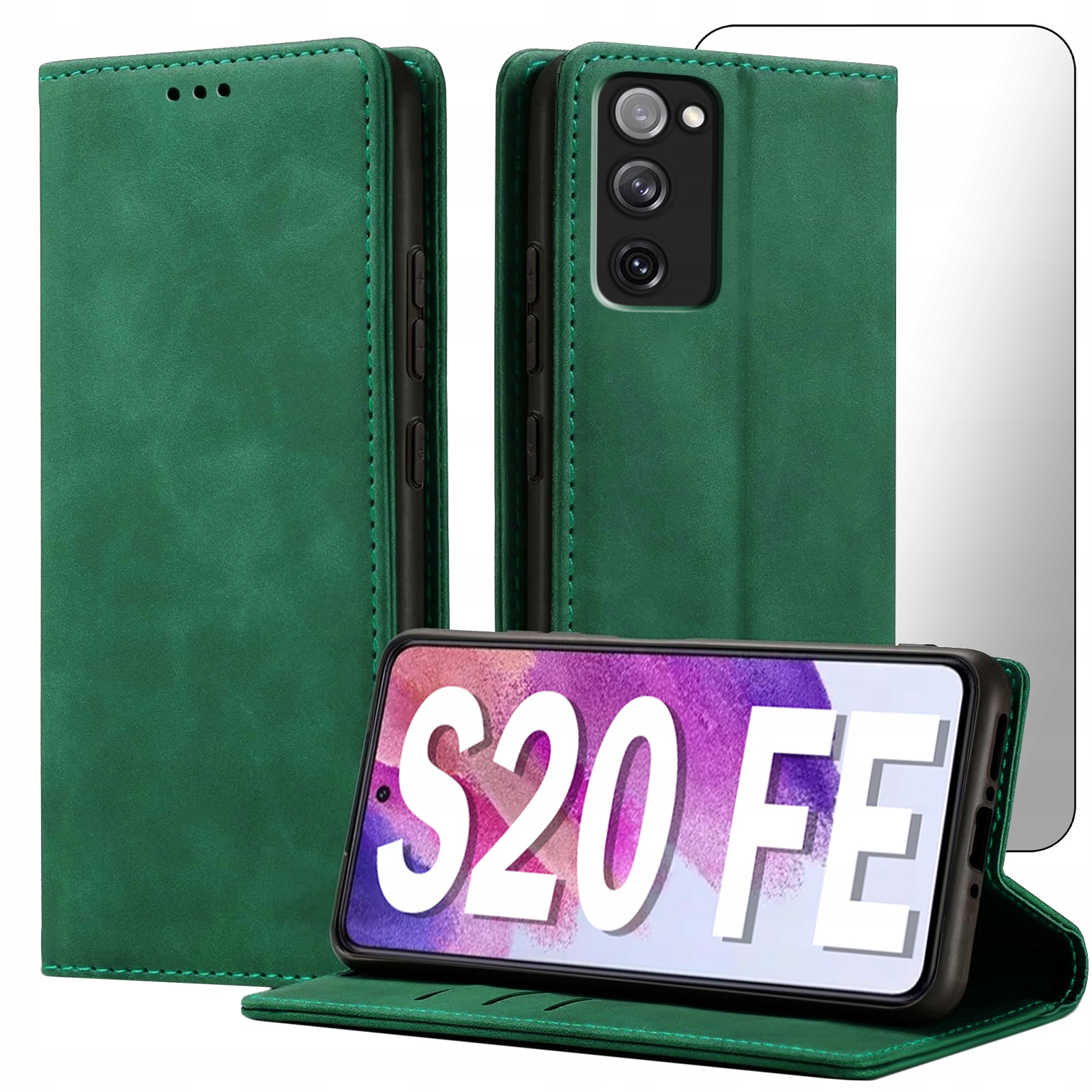ETUI Z KLAPKĄ DO SAMSUNG S20 FE ECOSKÓRA PORTFEL MAGNETYCNE Ochrona + SZKŁO