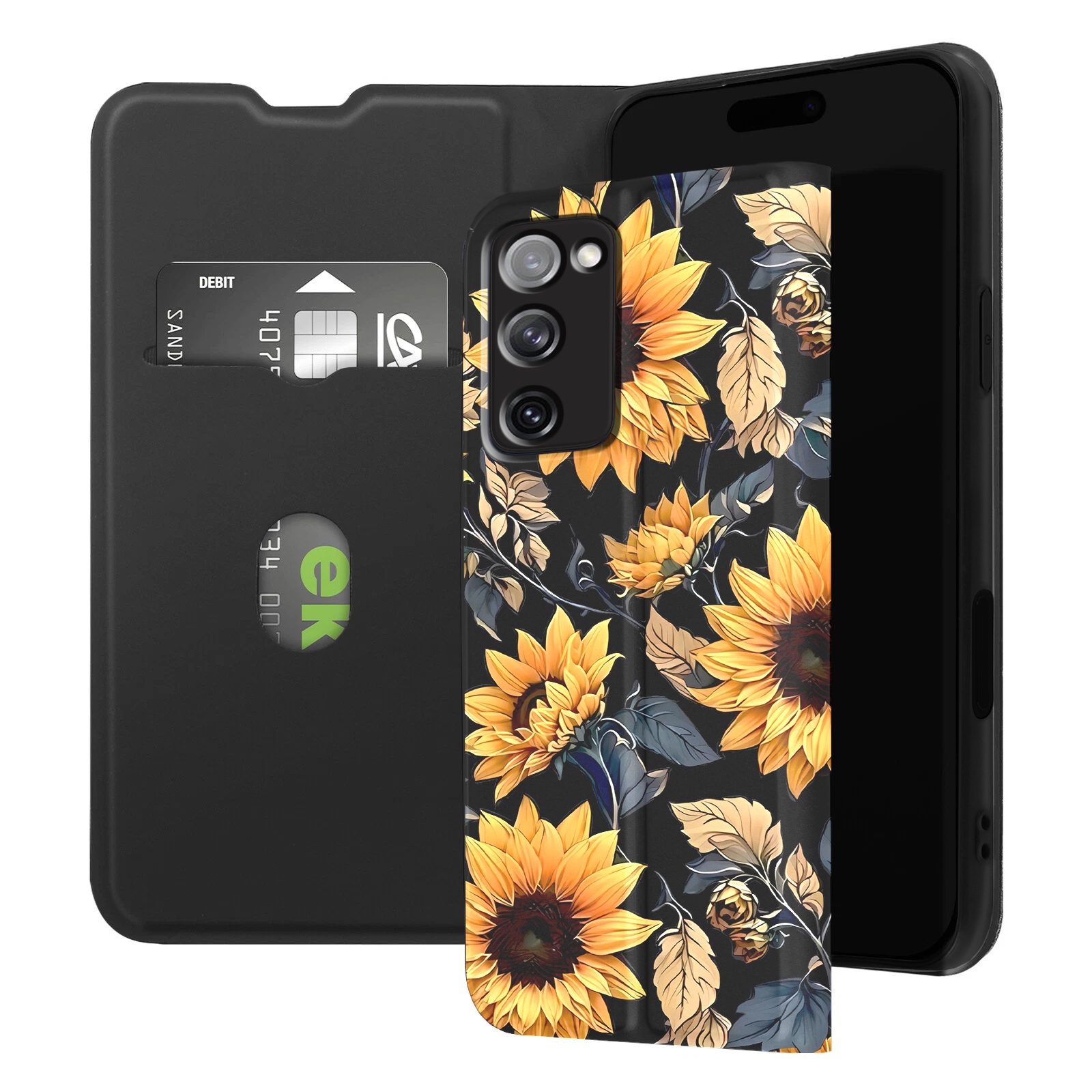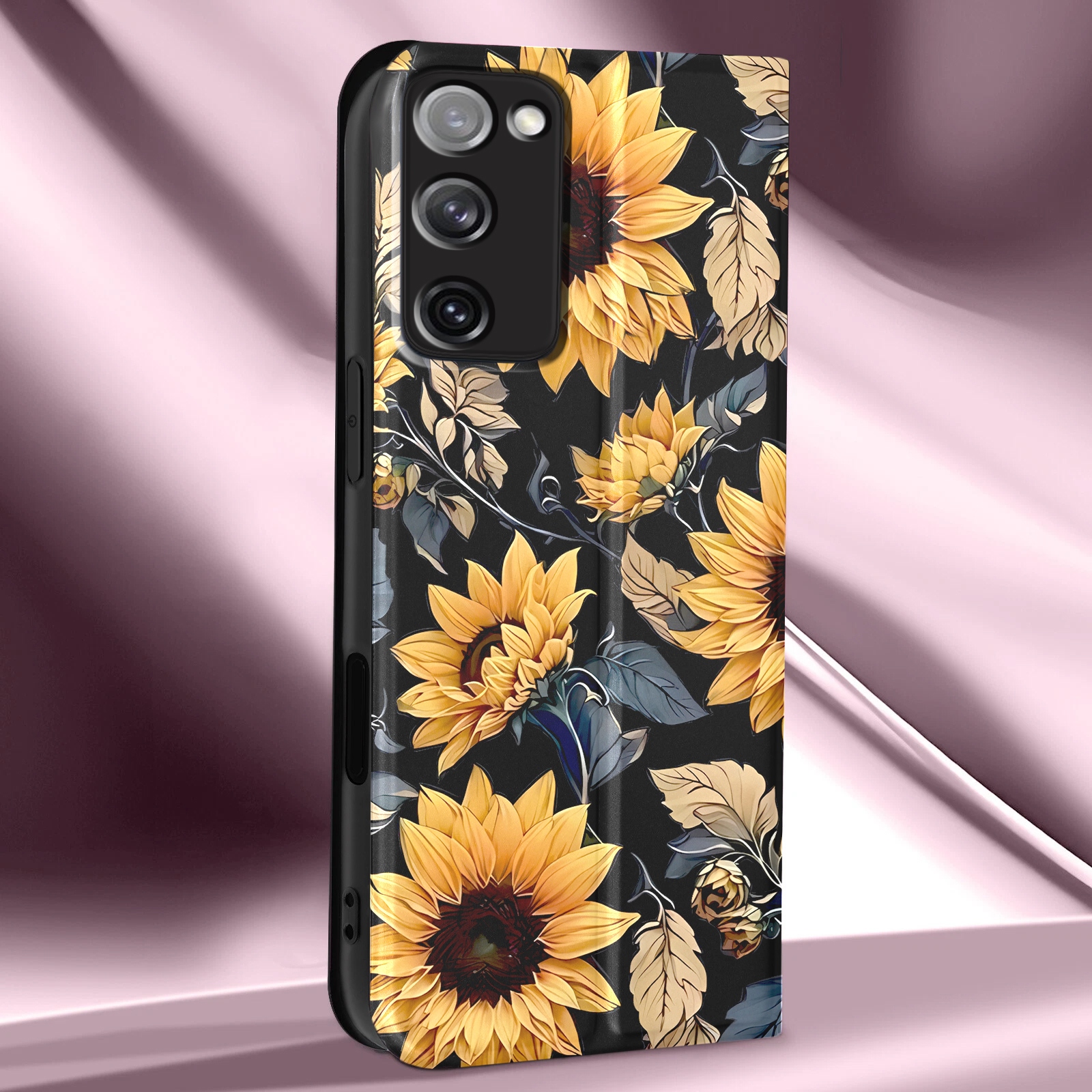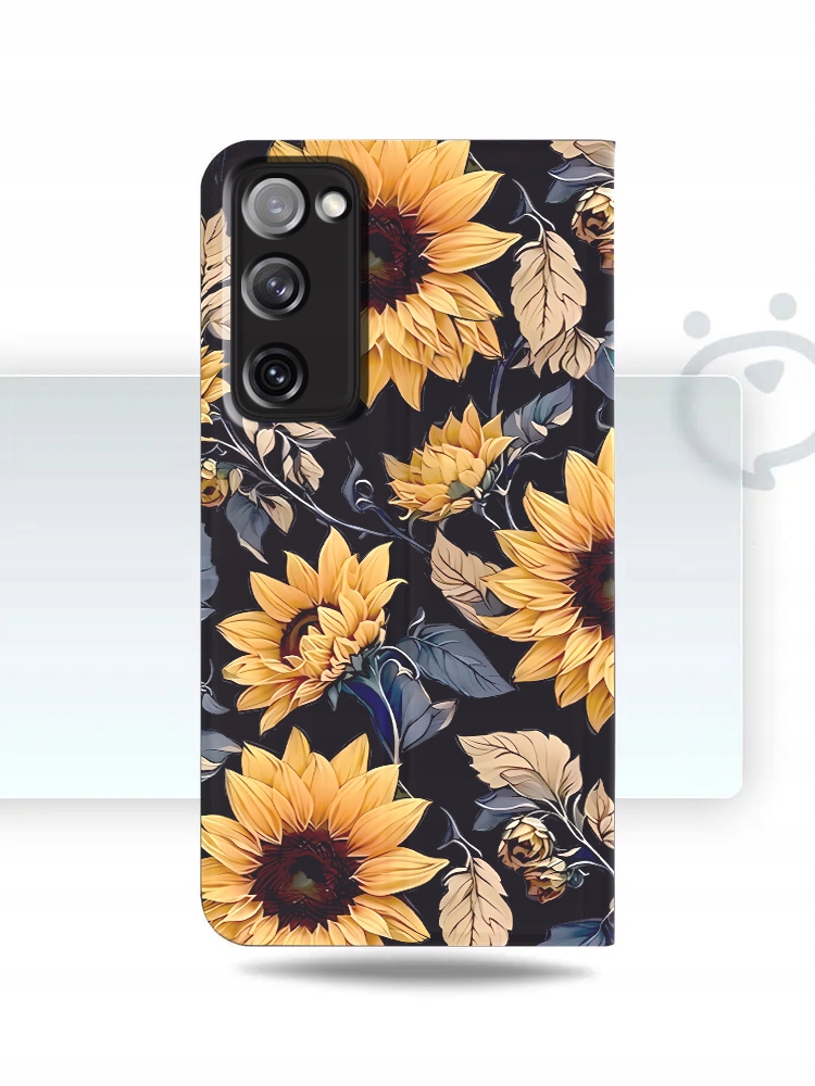 Stylowe , gładkie etui książkowe z pięknym nadrukiem słonecznika to idealne połączenie designu i funkcjonalności .
