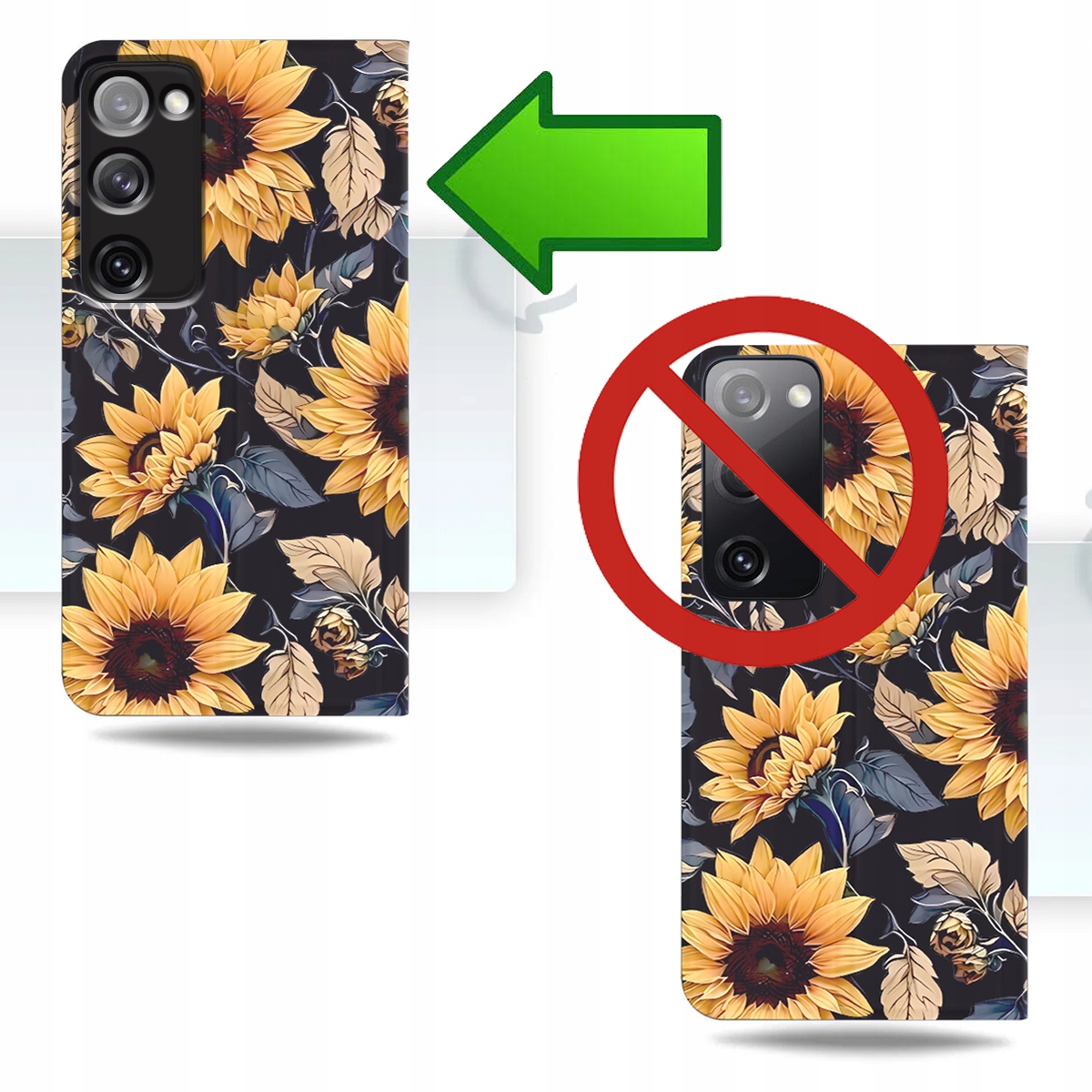 ETUI Z KLAPKĄ DO SAMSUNG S20 FE PORTFEL MAGNETYCZNE STYLOWE KWIATY + SZKŁO