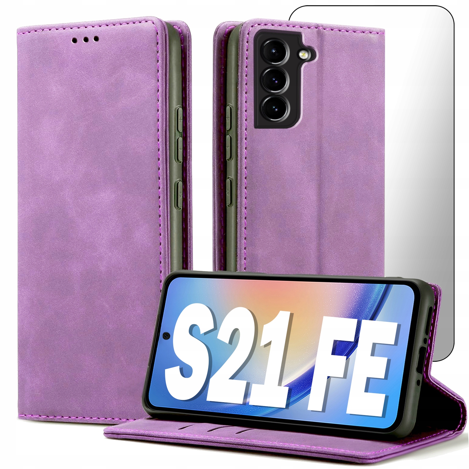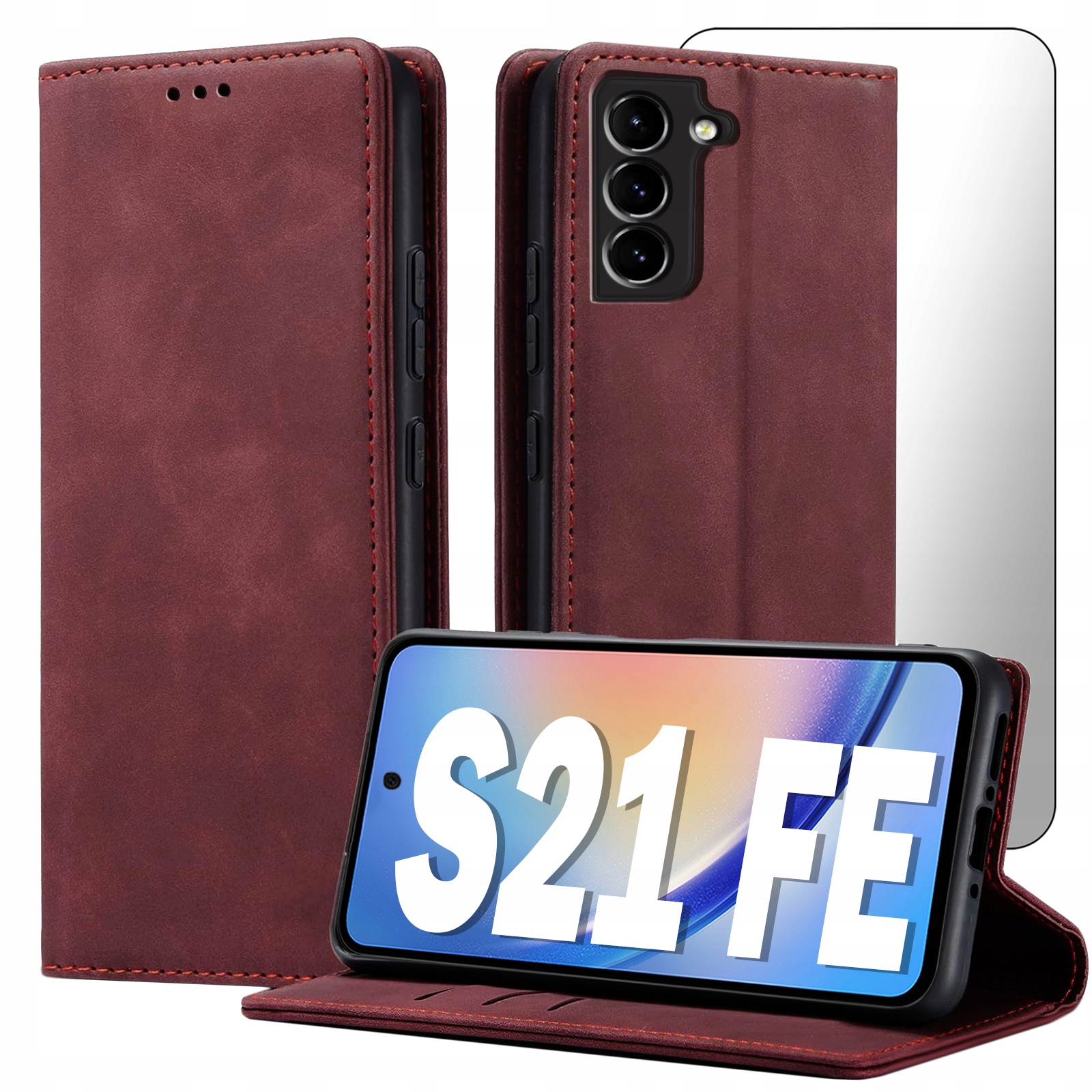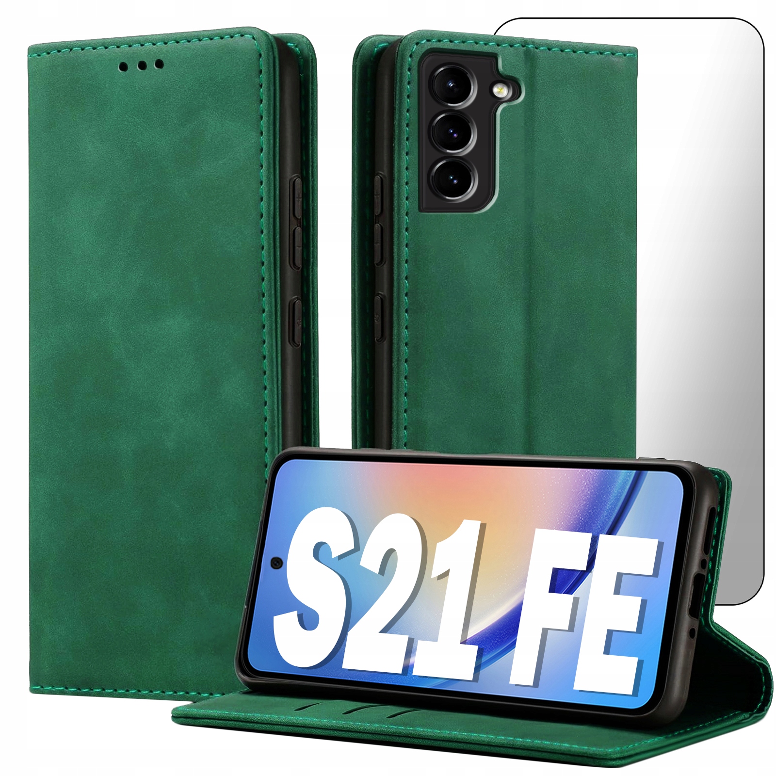 ETUI Z KLAPKĄ DO SAMSUNG S21 FE ECOSKÓRA PORTFEL MAGNETYCNE Ochrona + SZKŁO