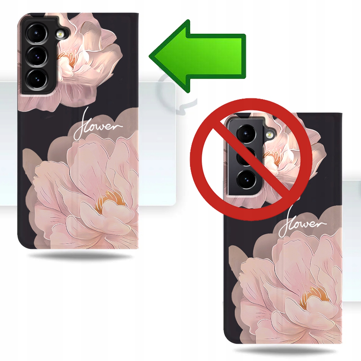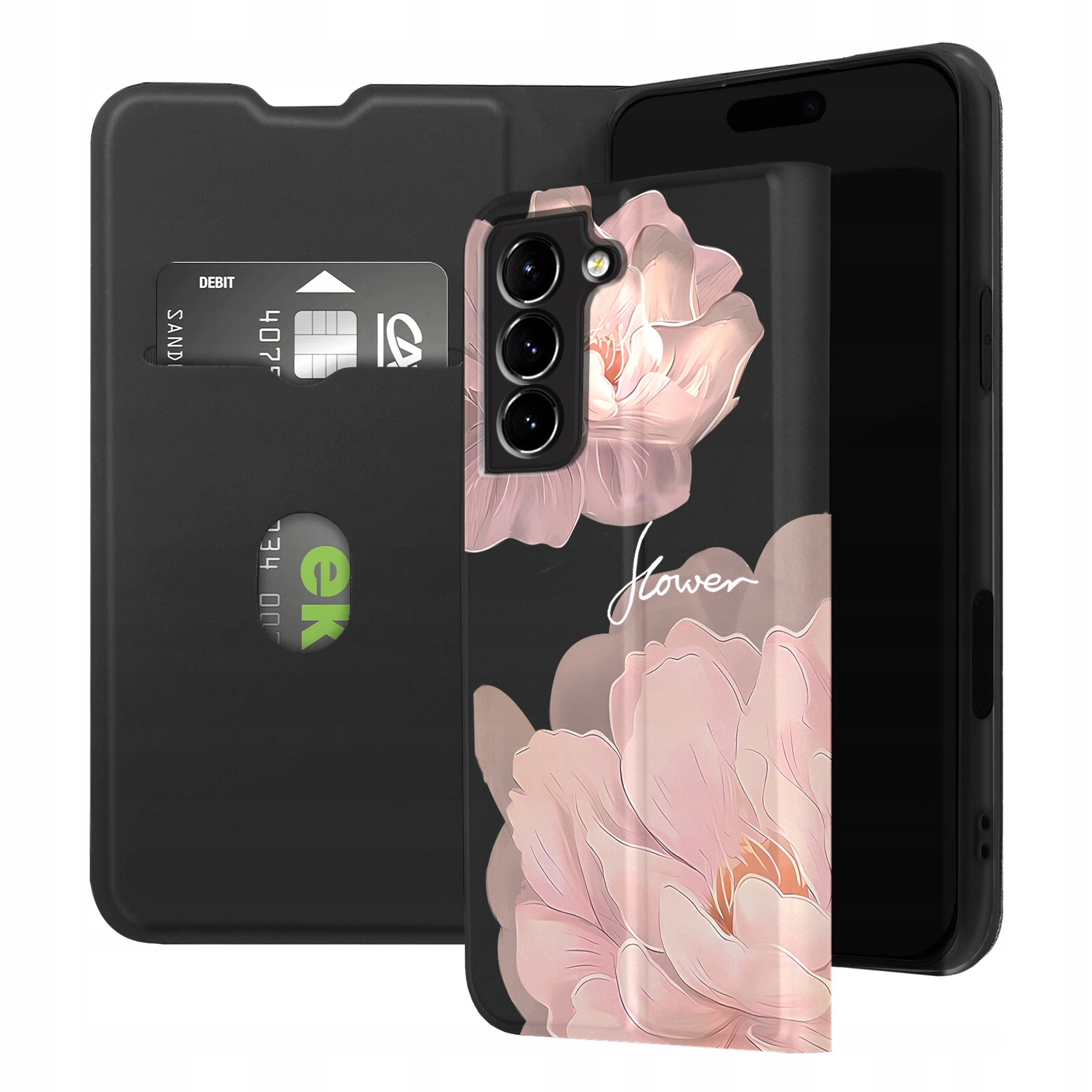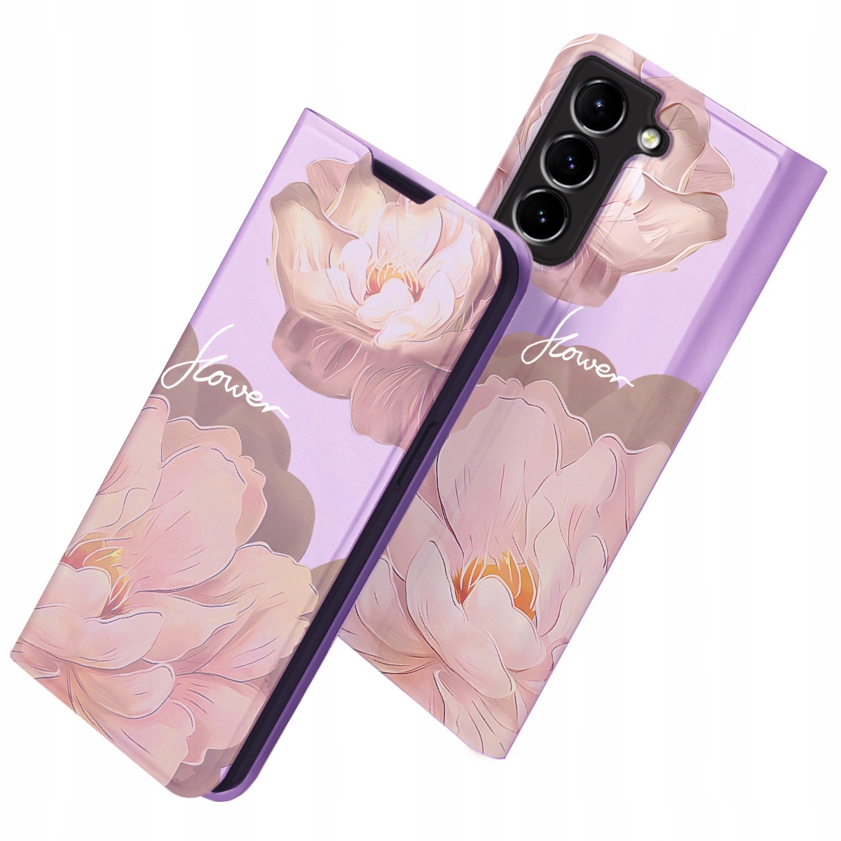 ETUI Z KLAPKĄ DO SAMSUNG S21 FE PORTFEL MAGNETYCZNE STYLOWE KWIATY + SZKŁO