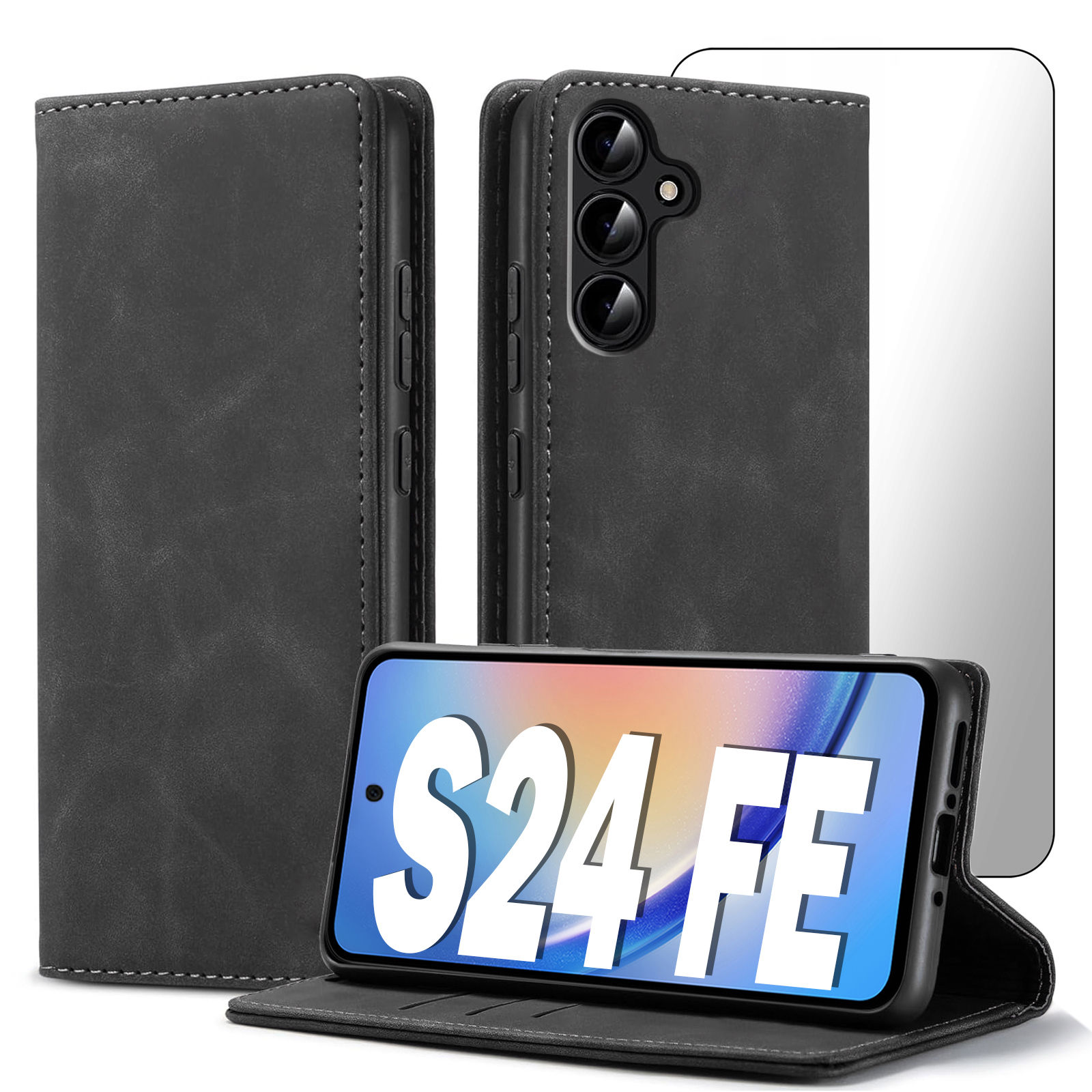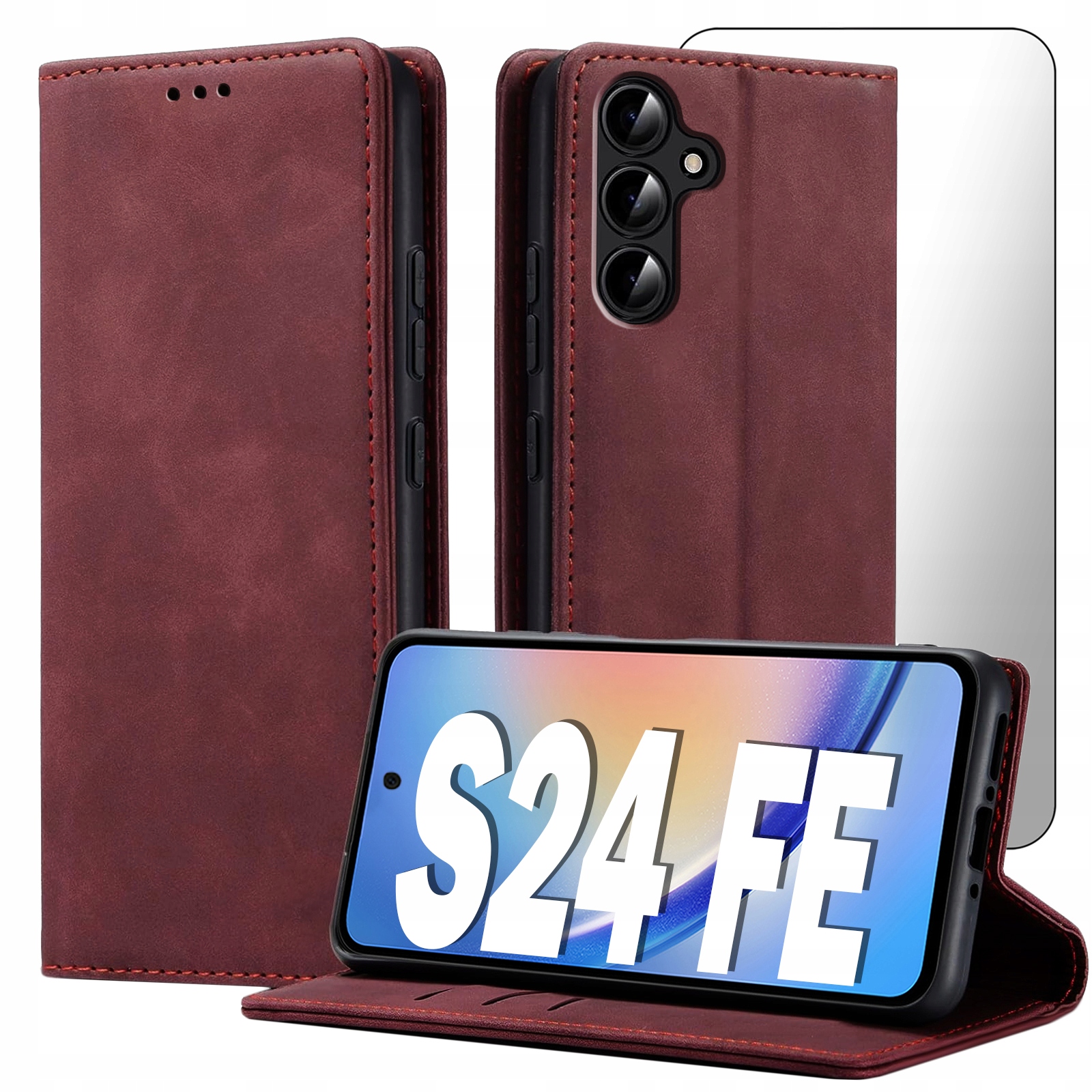 ETUI Z KLAPKĄ DO SAMSUNG S24 FE ECOSKÓRA PORTFEL MAGNETYCNE Ochrona + SZKŁO