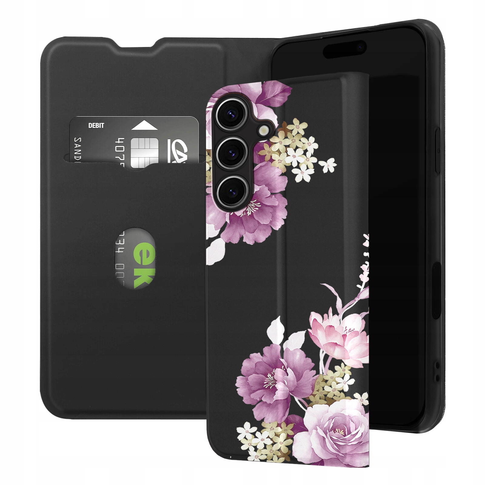 ETUI Z KLAPKĄ DO SAMSUNG S24 FE PORTFEL MAGNETYCZNE STYLOWE KWIATY + SZKŁO