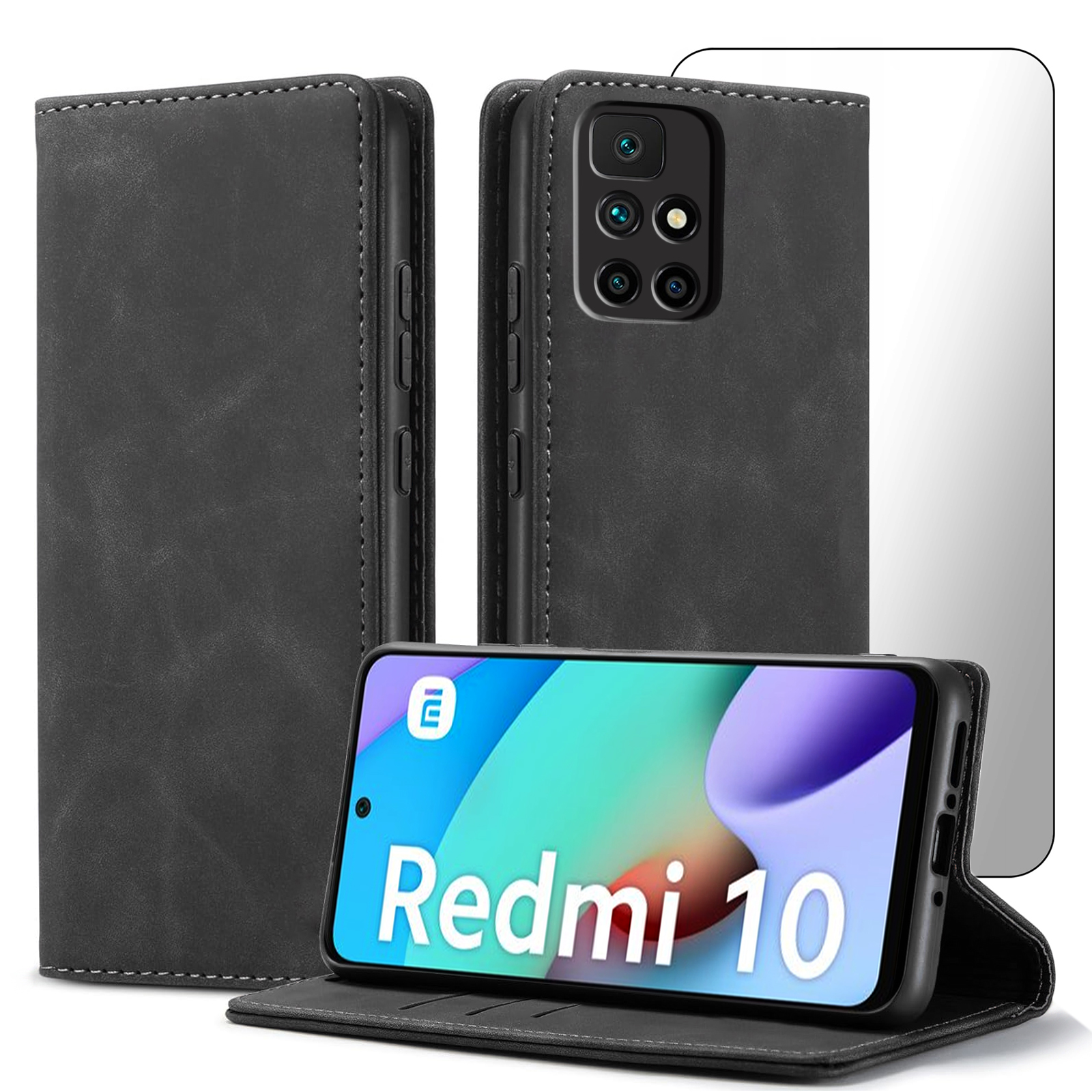 ETUI Z KLAPKĄ DO XIAOMI REDMI 10 / 10 2022 ECOSKÓRA PORTFEL MAGNET + SZKŁO