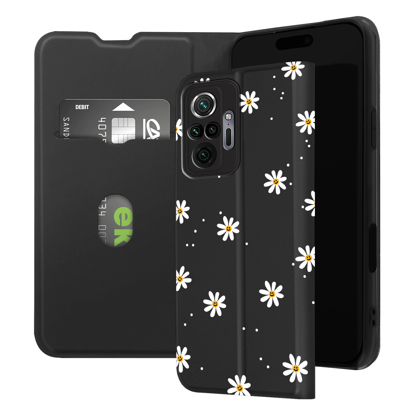 Stylowe , gładkie etui książkowe z pięknym nadrukiem Stokrotek to idealne połączenie designu i funkcjonalności .