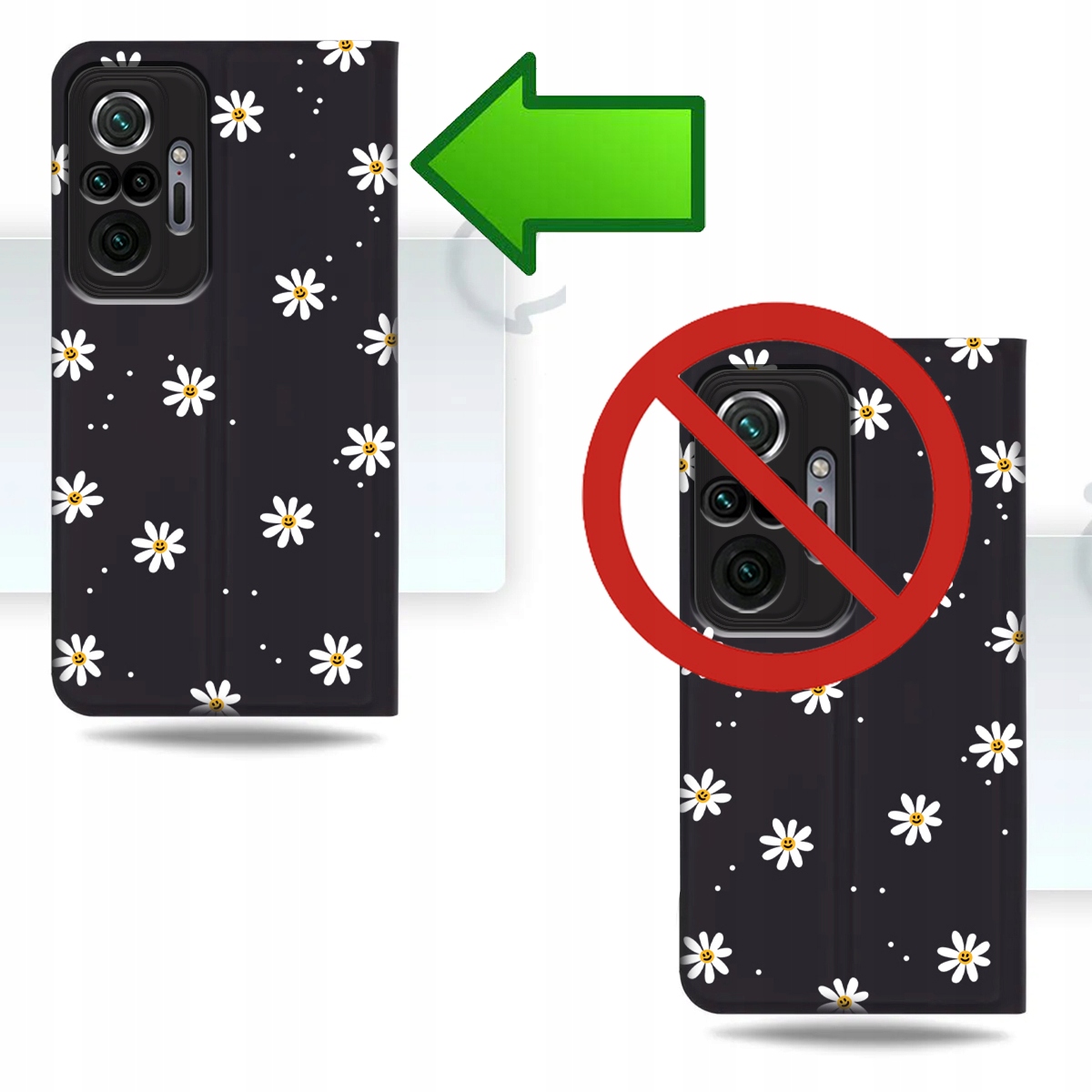 ETUI Z KLAPKĄ DO XIAOMI REDMI 10 PRO PORTFEL MAGNETYCZNE Stokrotki + SZKŁO