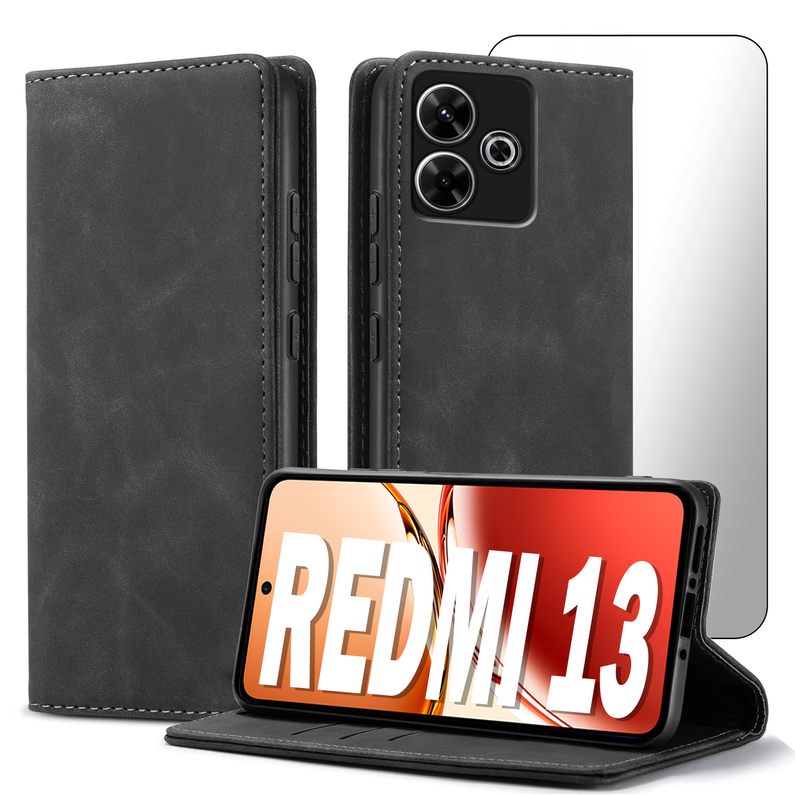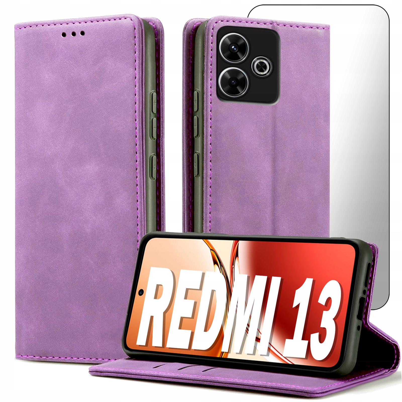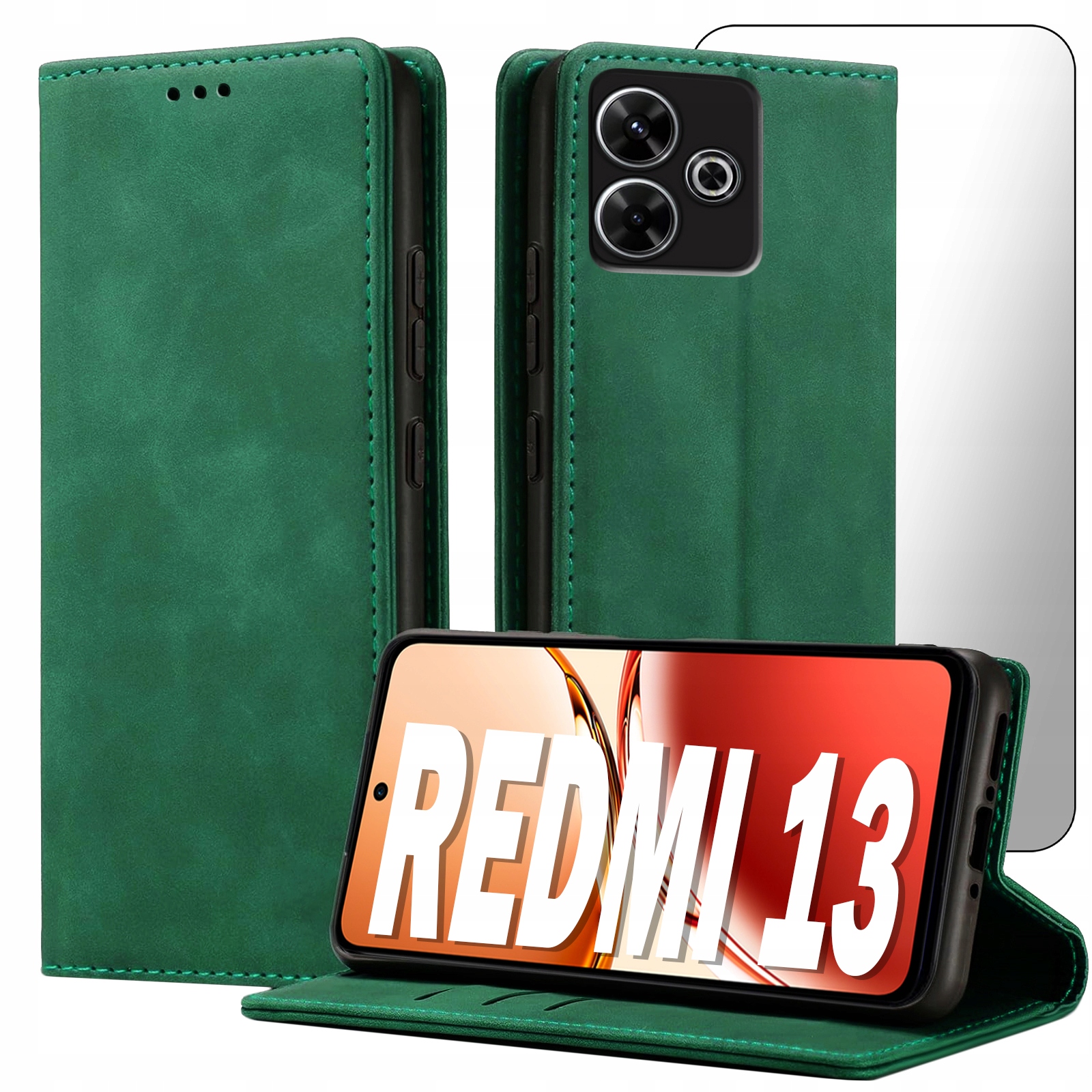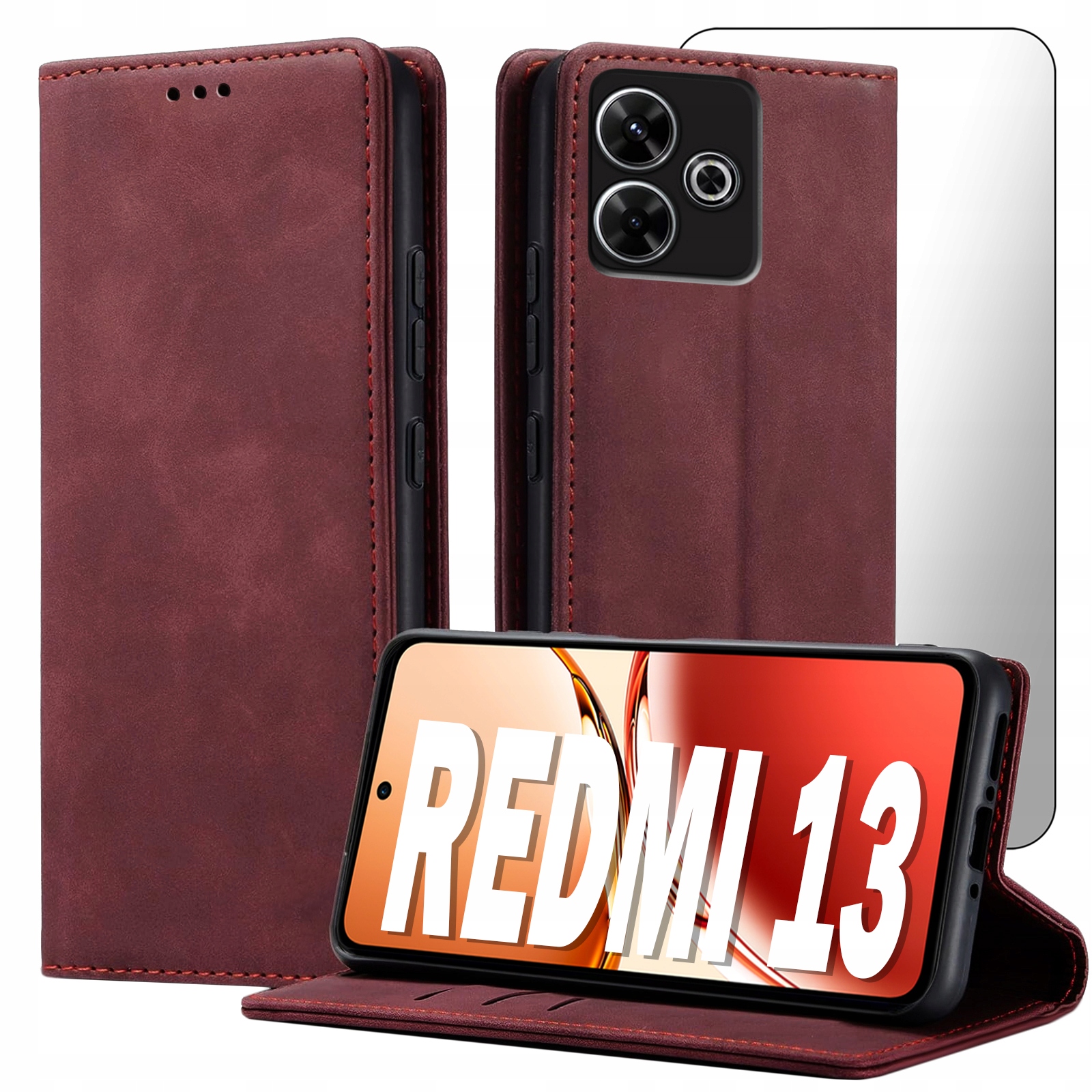 ETUI Z KLAPKĄ DO XIAOMI REDMI 13 4G ECOSKÓRA PORTFEL MAGNETYCNE + SZKŁO