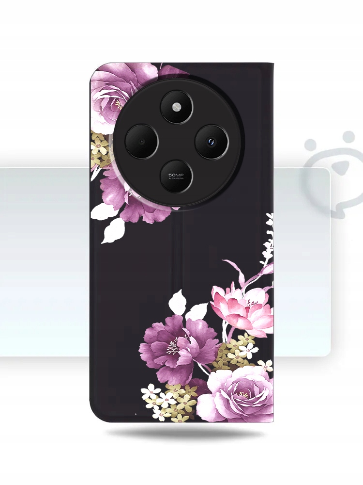 ETUI Z KLAPKĄ DO XIAOMI REDMI 14C PORTFEL MAGNETYCZNE KWIATY CASE + SZKŁO