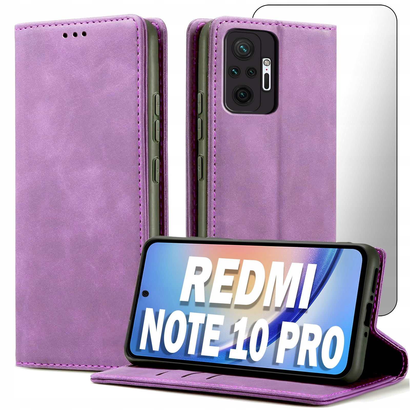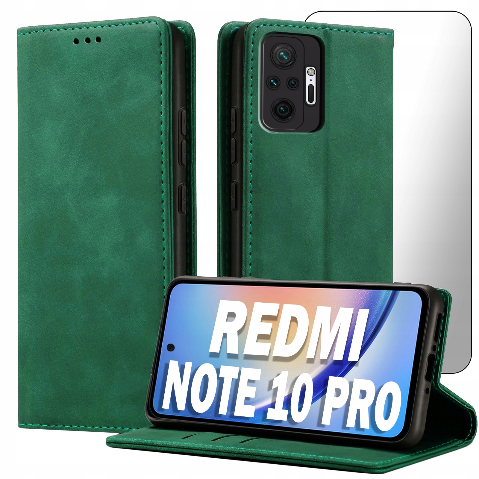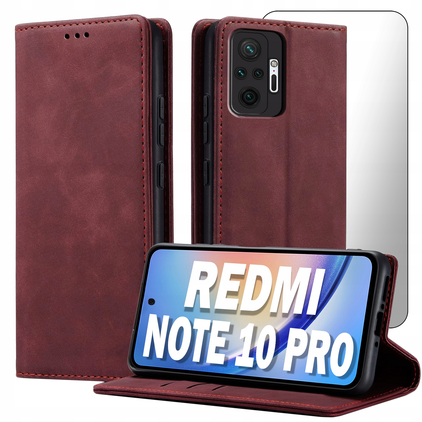 ETUI Z KLAPKĄ DO XIAOMI REDMI NOTE 10 PRO ECOSKÓRA PORTFEL MAGNET + SZKŁO