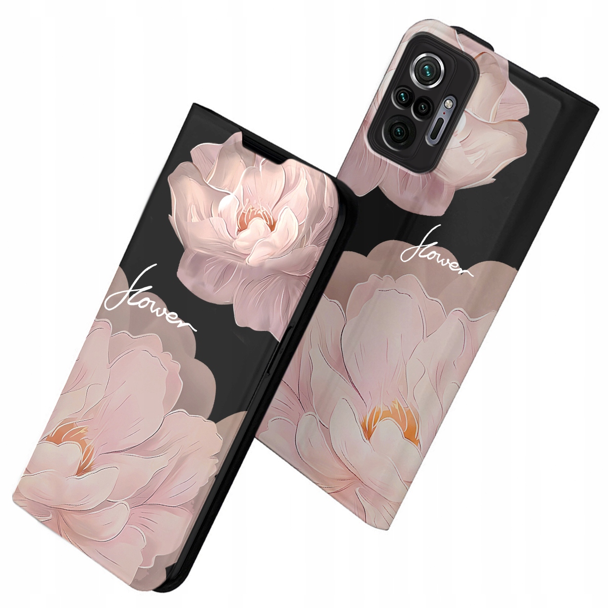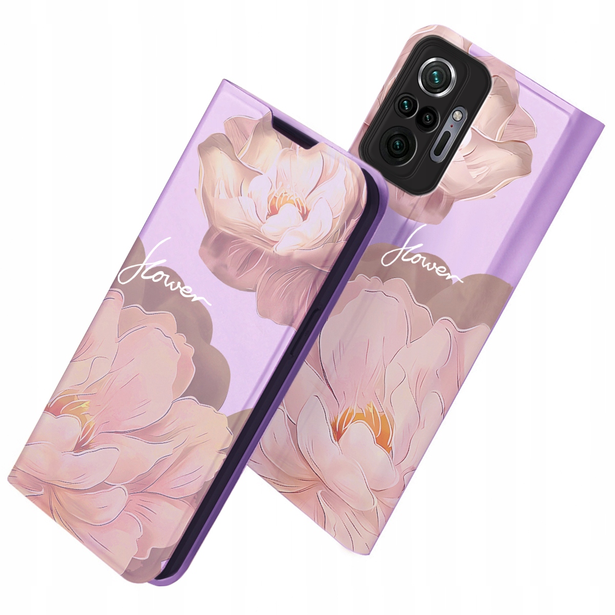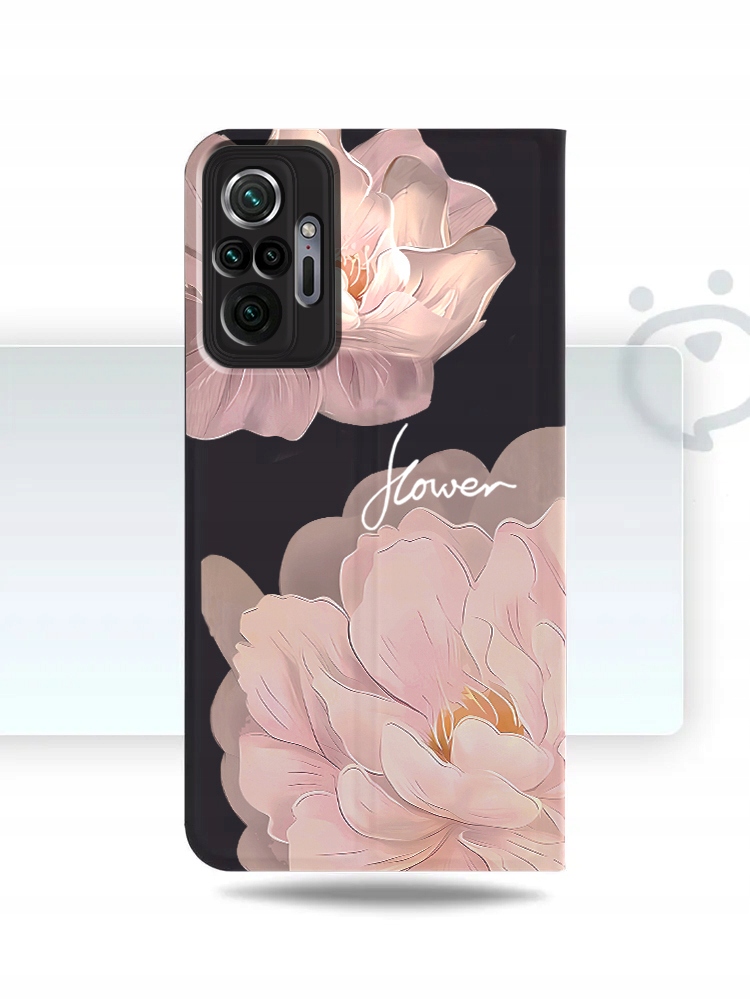 ETUI Z KLAPKĄ DO XIAOMI REDMI NOTE 10 PRO PORTFEL MAGNET KWIATY + SZKŁO