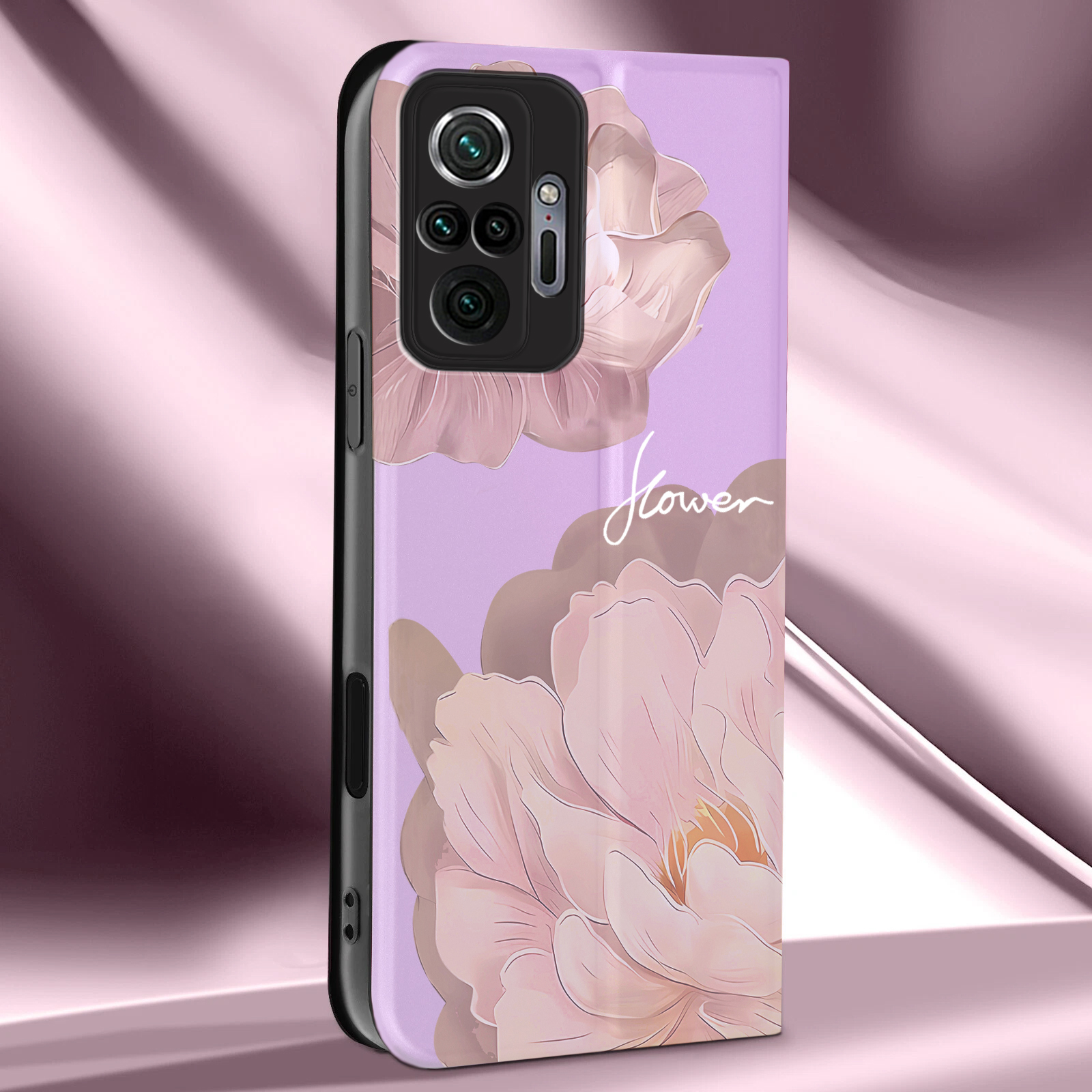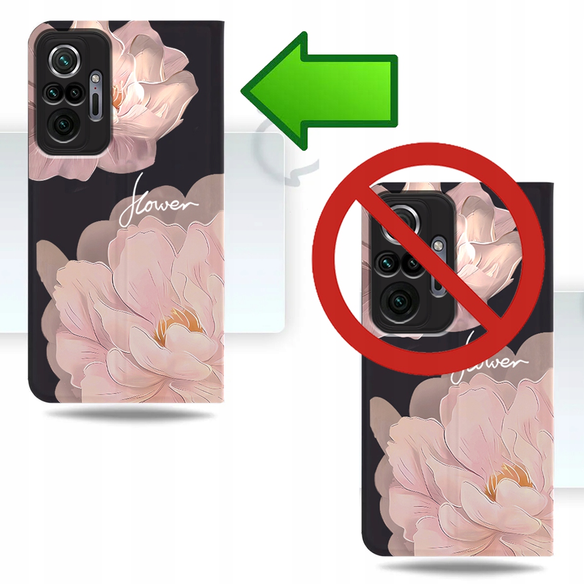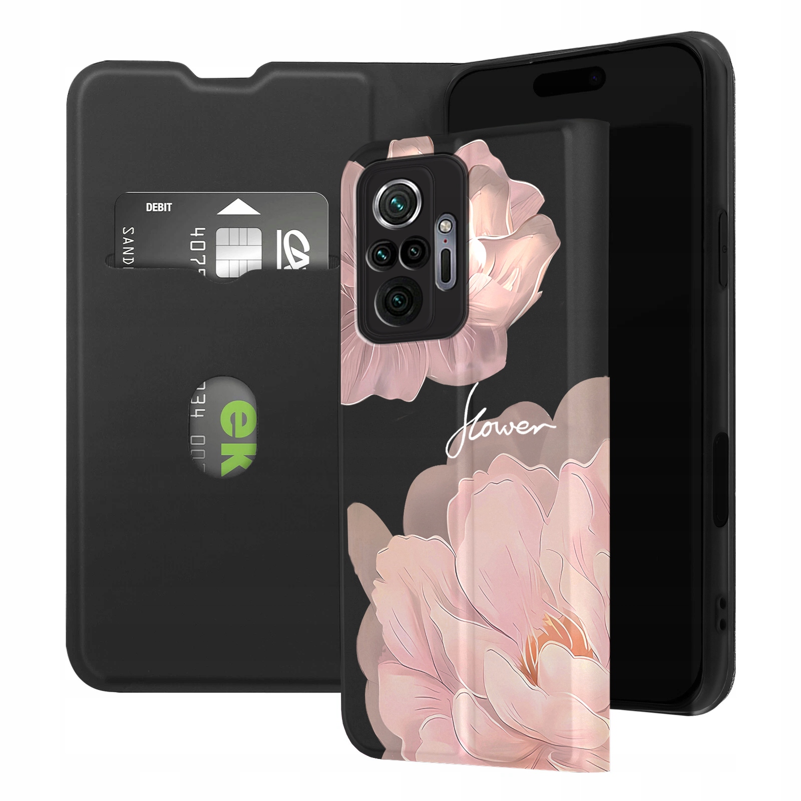 ETUI Z KLAPKĄ DO XIAOMI REDMI NOTE 10 PRO PORTFEL MAGNET KWIATY + SZKŁO