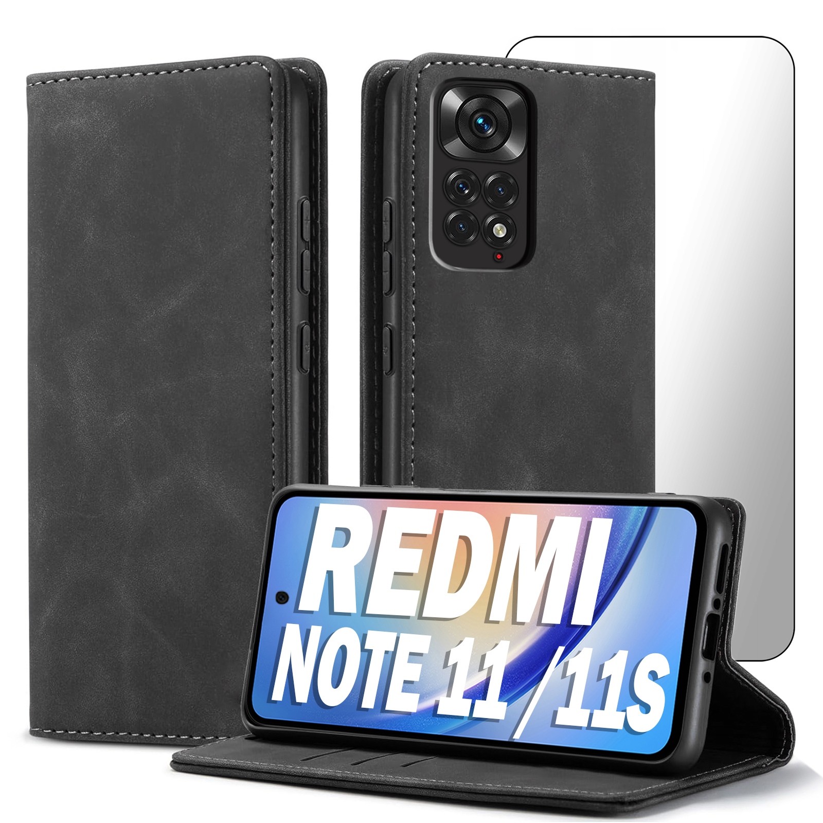 ETUI Z KLAPKĄ DO XIAOMI REDMI NOTE 11 / 11S ECOSKÓRA PORTFEL MAGNET+ SZKŁO