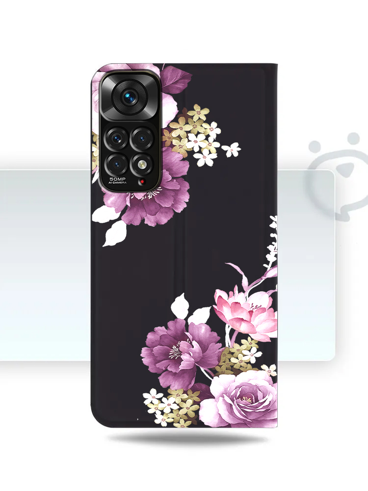 Stylowe , gładkie etui książkowe z pięknym nadrukiem róż to idealne połączenie designu i funkcjonalności .