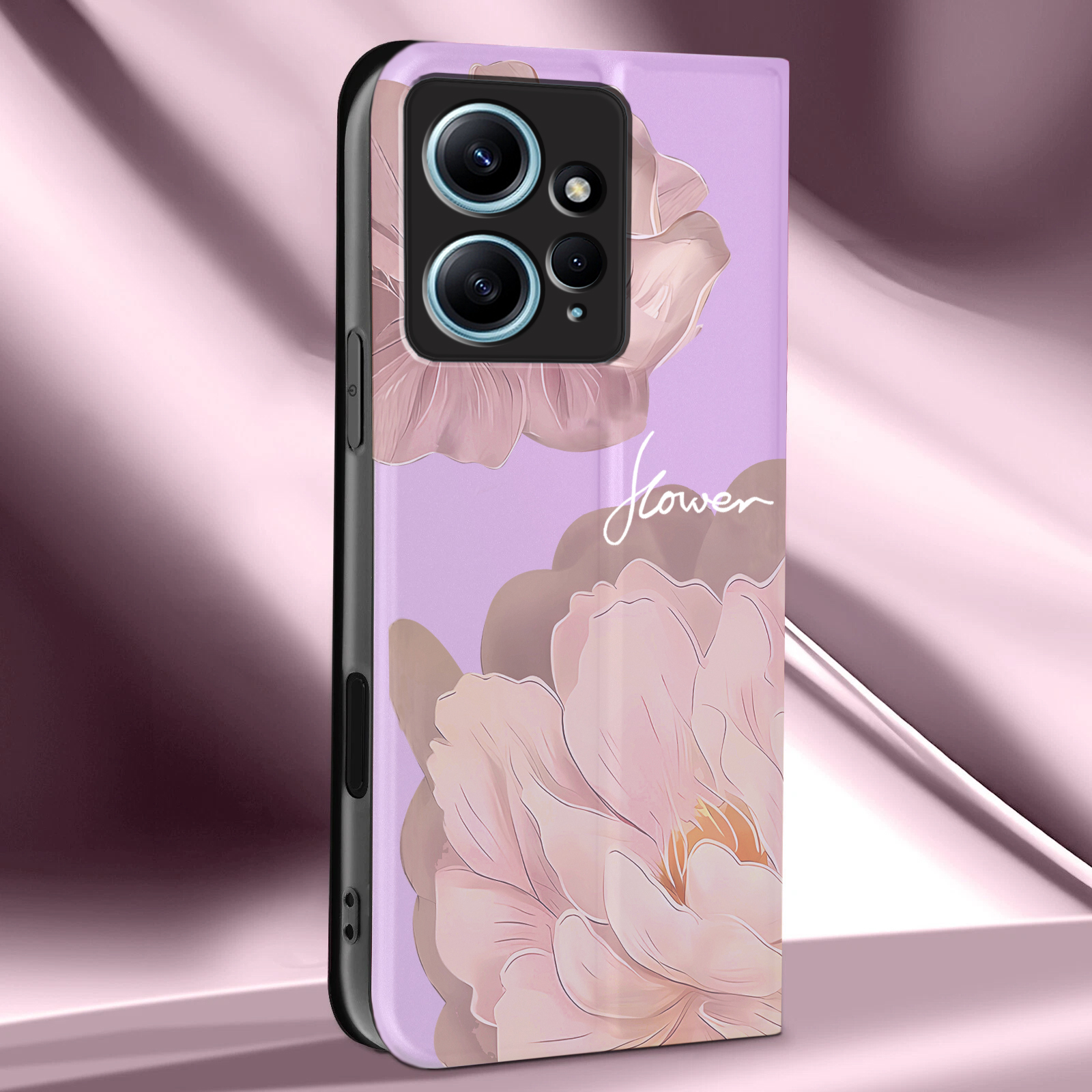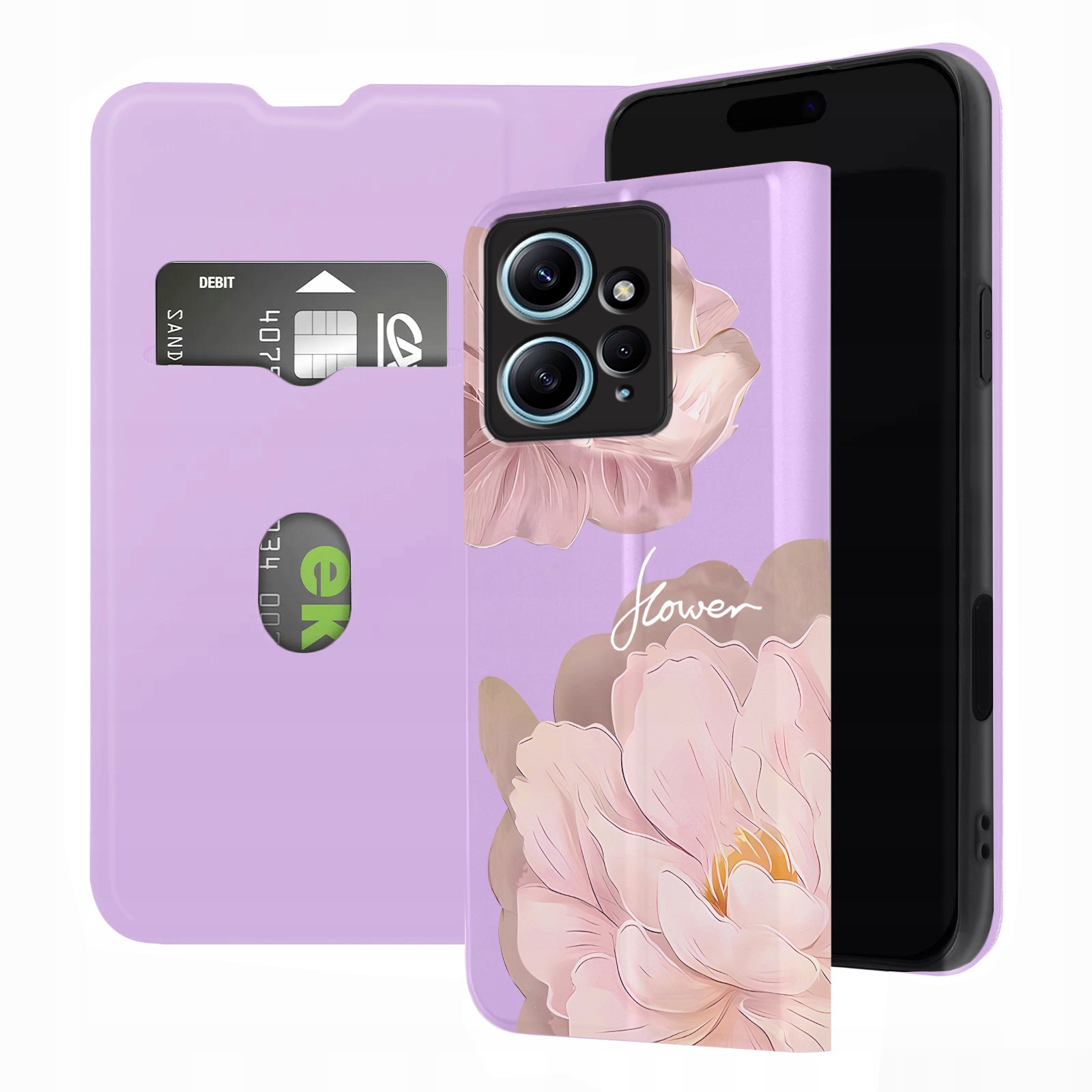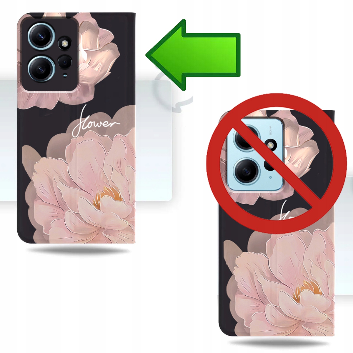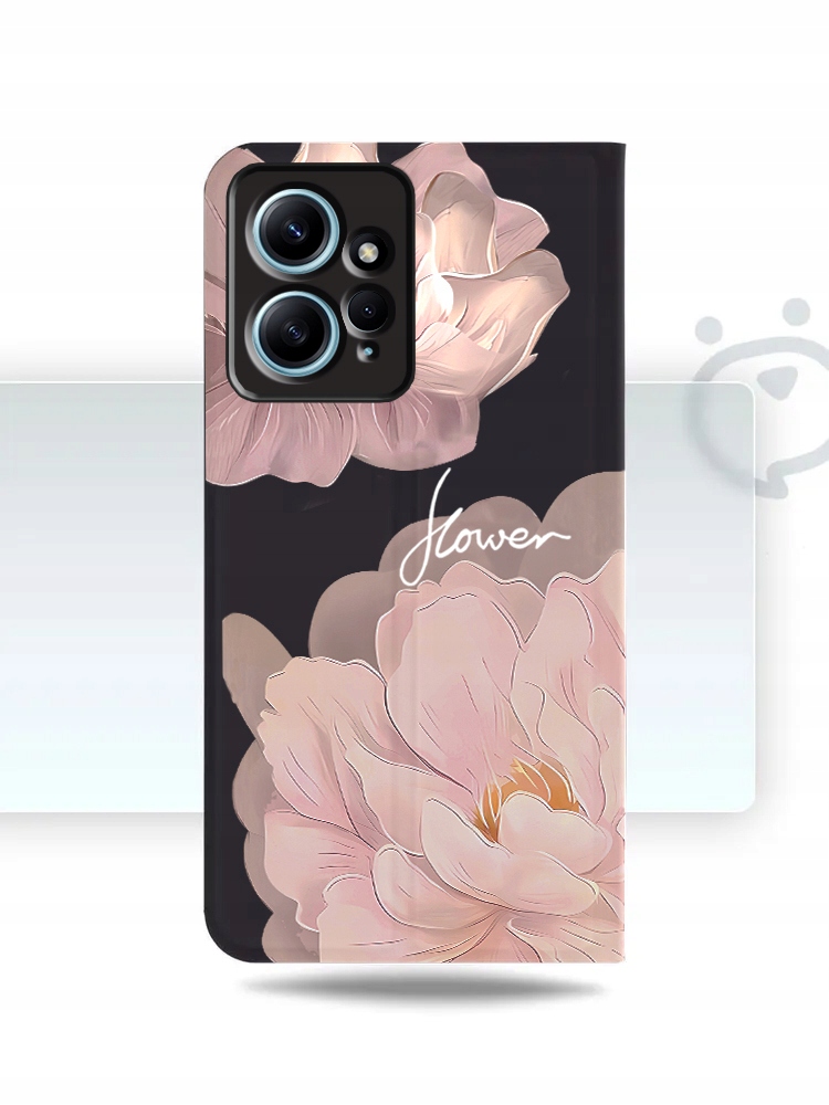 ETUI Z KLAPKĄ DO XIAOMI REDMI NOTE 12 / 12 4G PORTFEL MAGNET KWIATY + SZKŁO