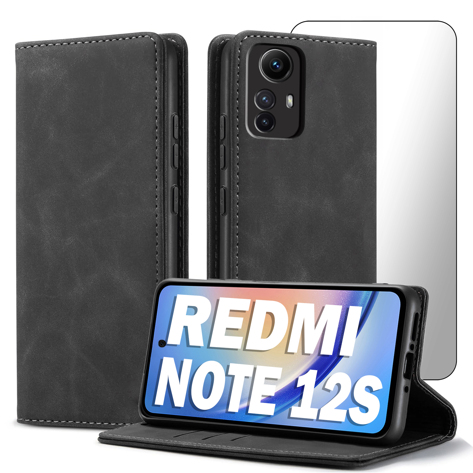 ETUI Z KLAPKĄ DO XIAOMI REDMI NOTE 12S ECOSKÓRA PORTFEL MAGNETYCZNE + SZKŁO