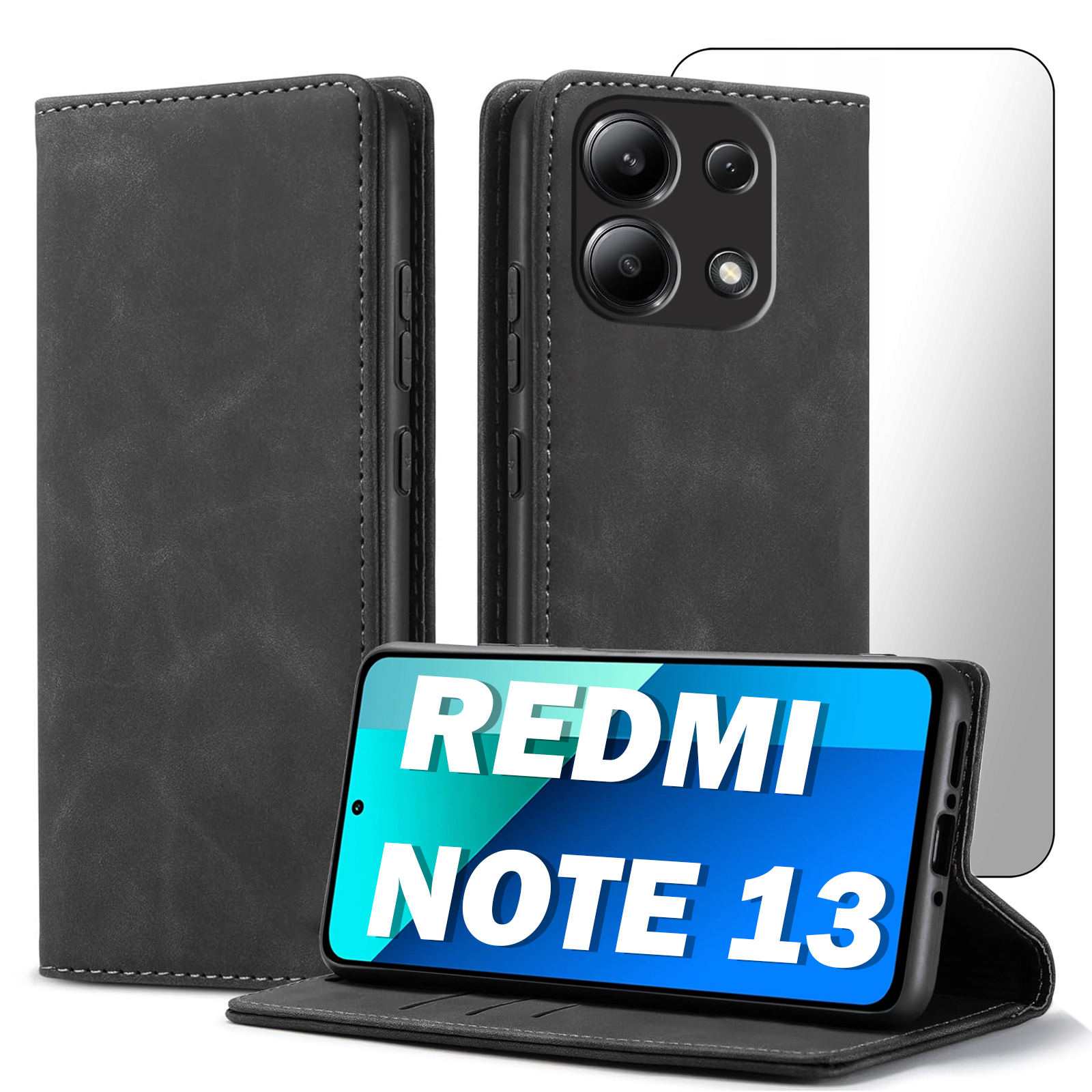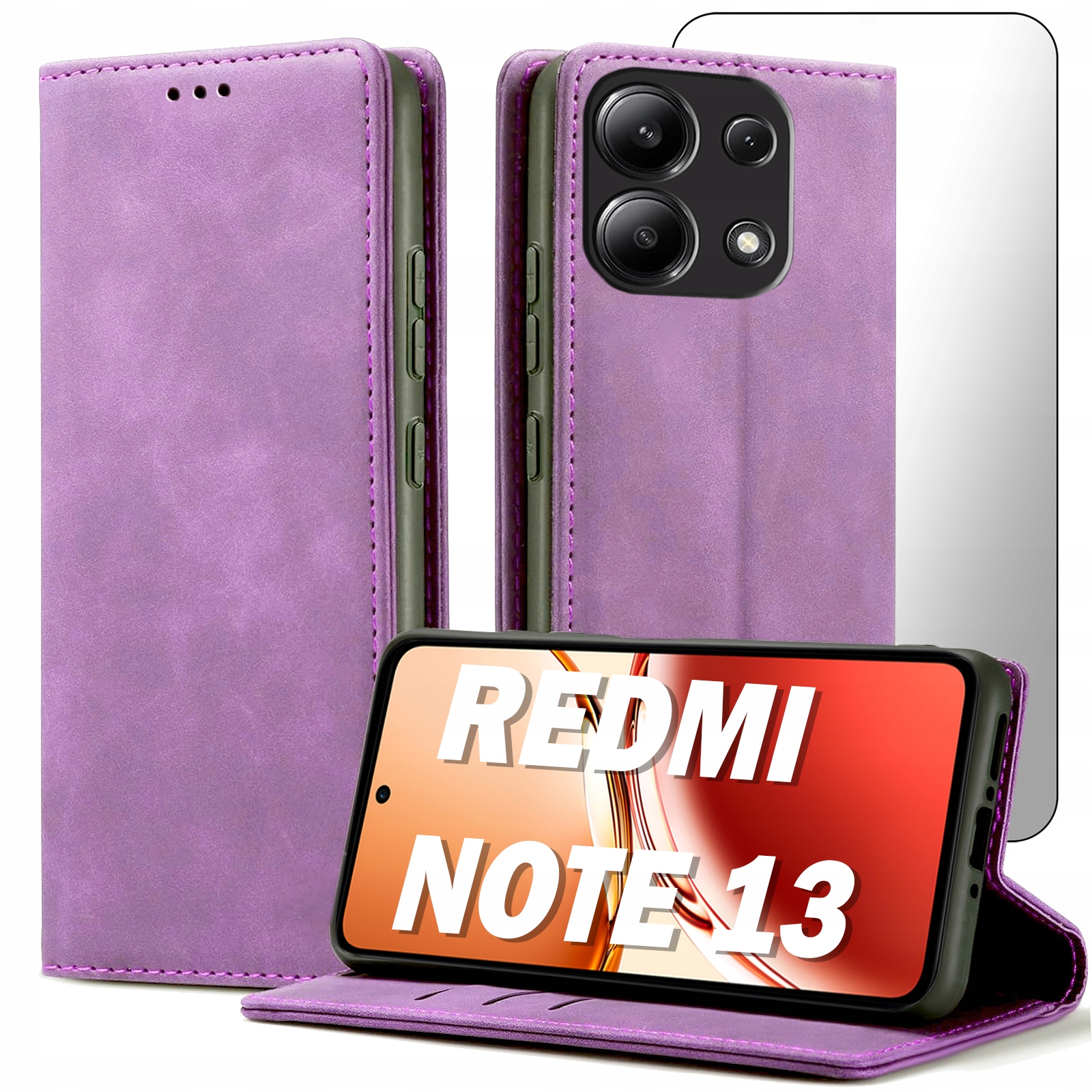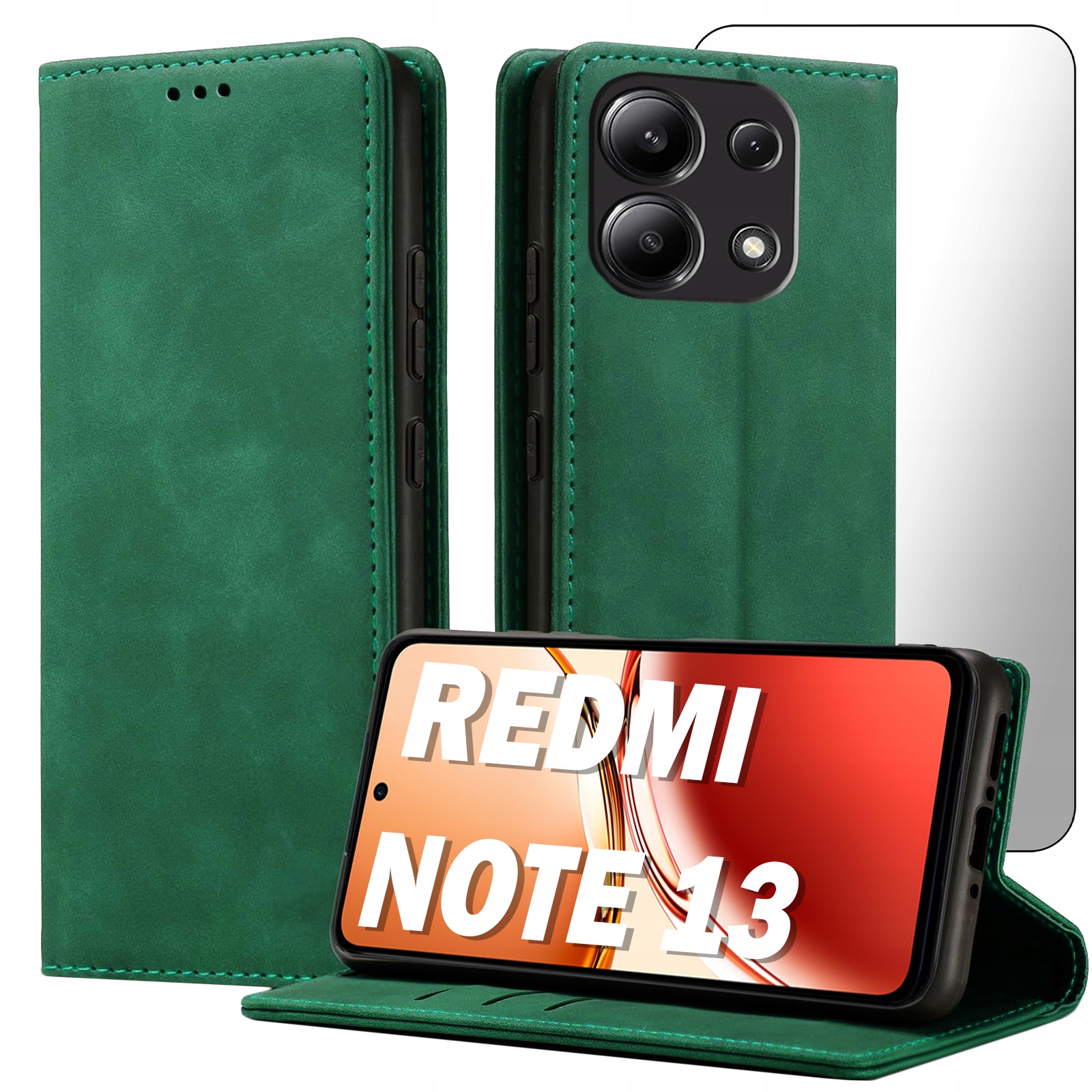 ETUI Z KLAPKĄ DO XIAOMI REDMI NOTE 13 / 13 4G ECOSKÓRA MAGNETYCNE + SZKŁO