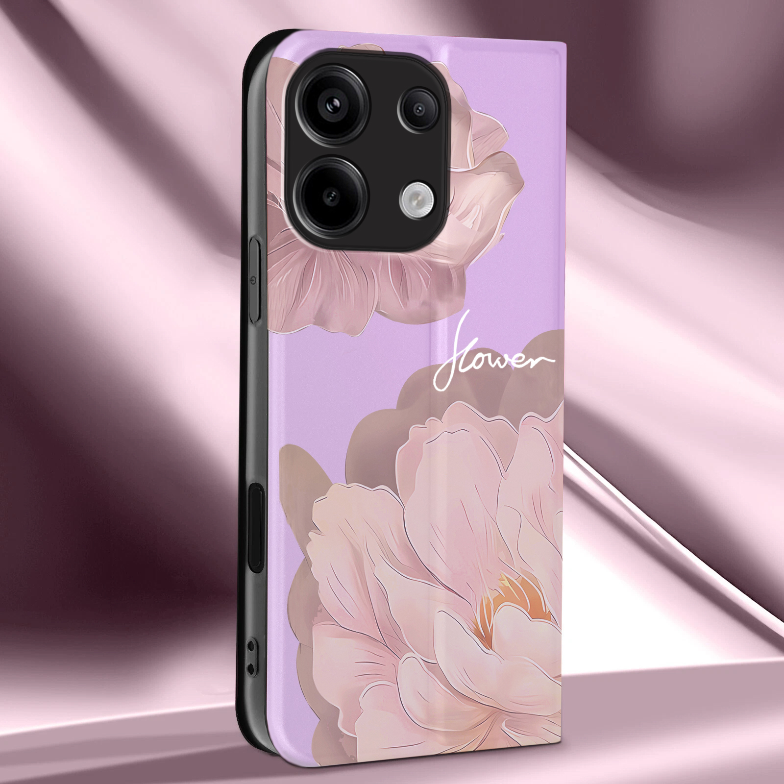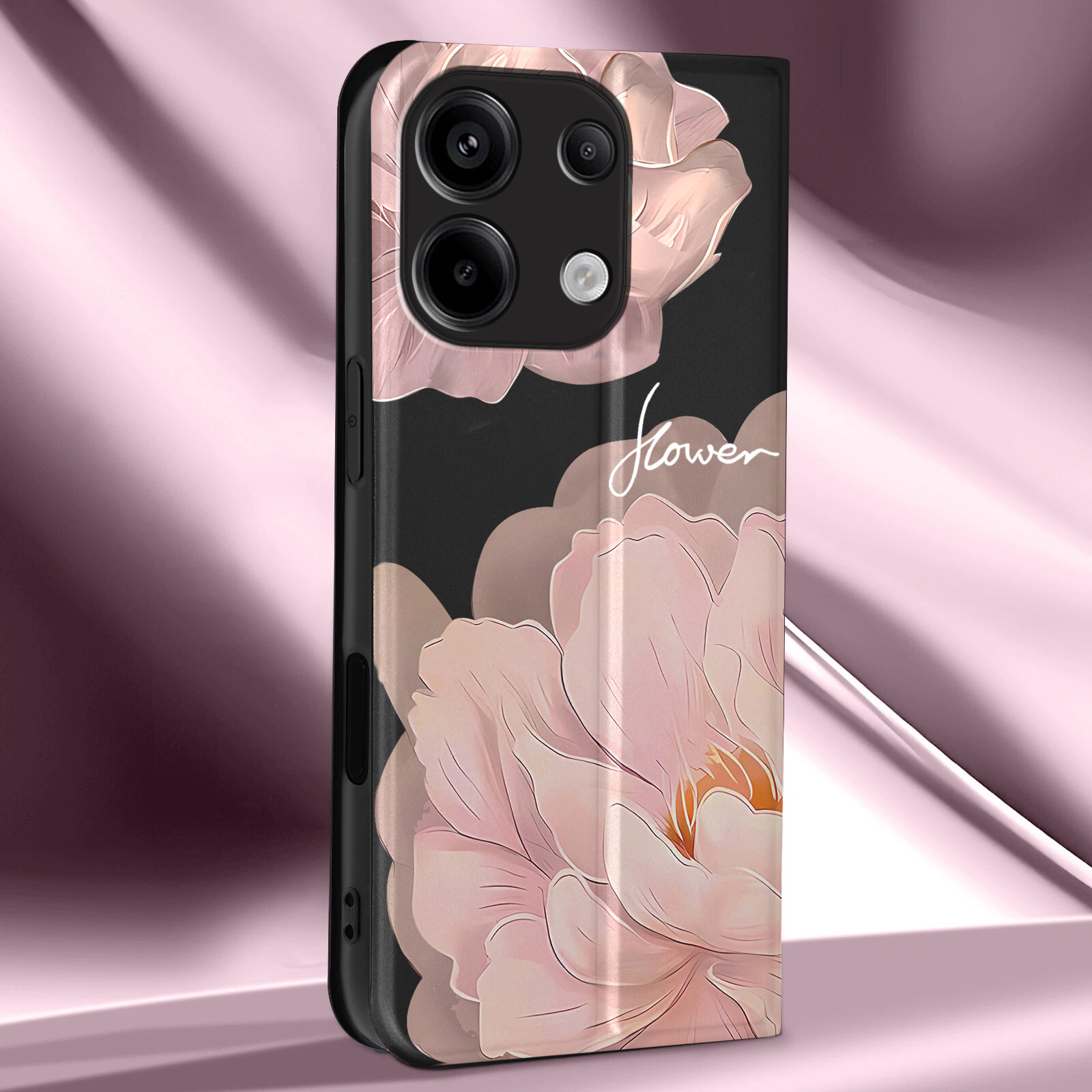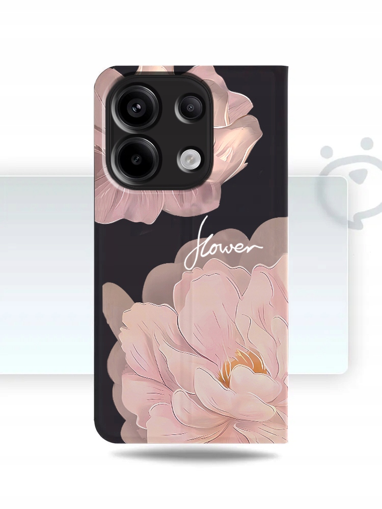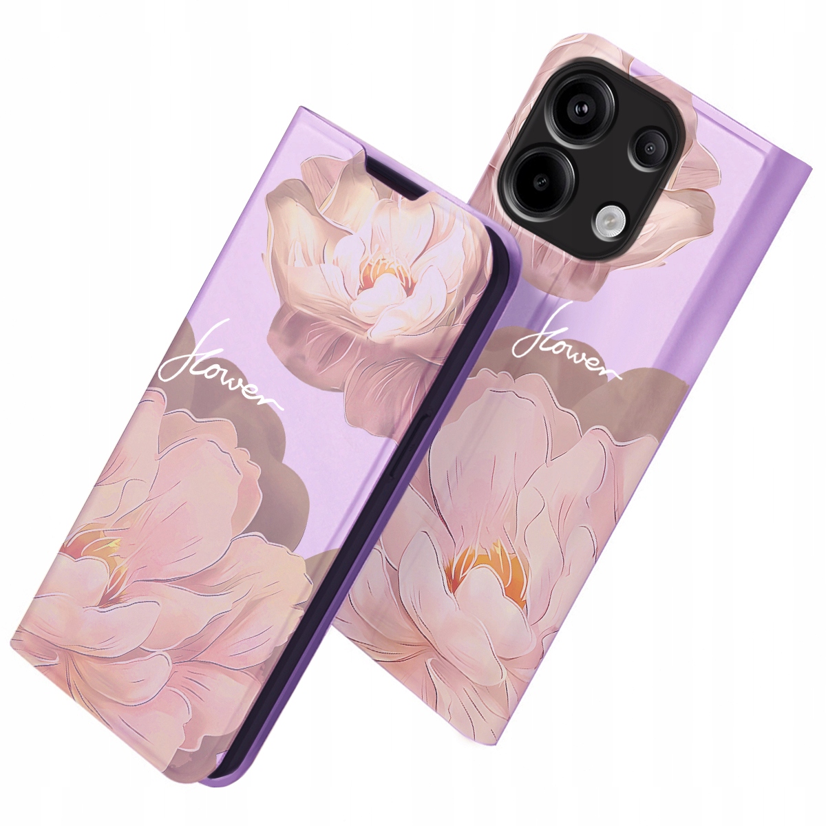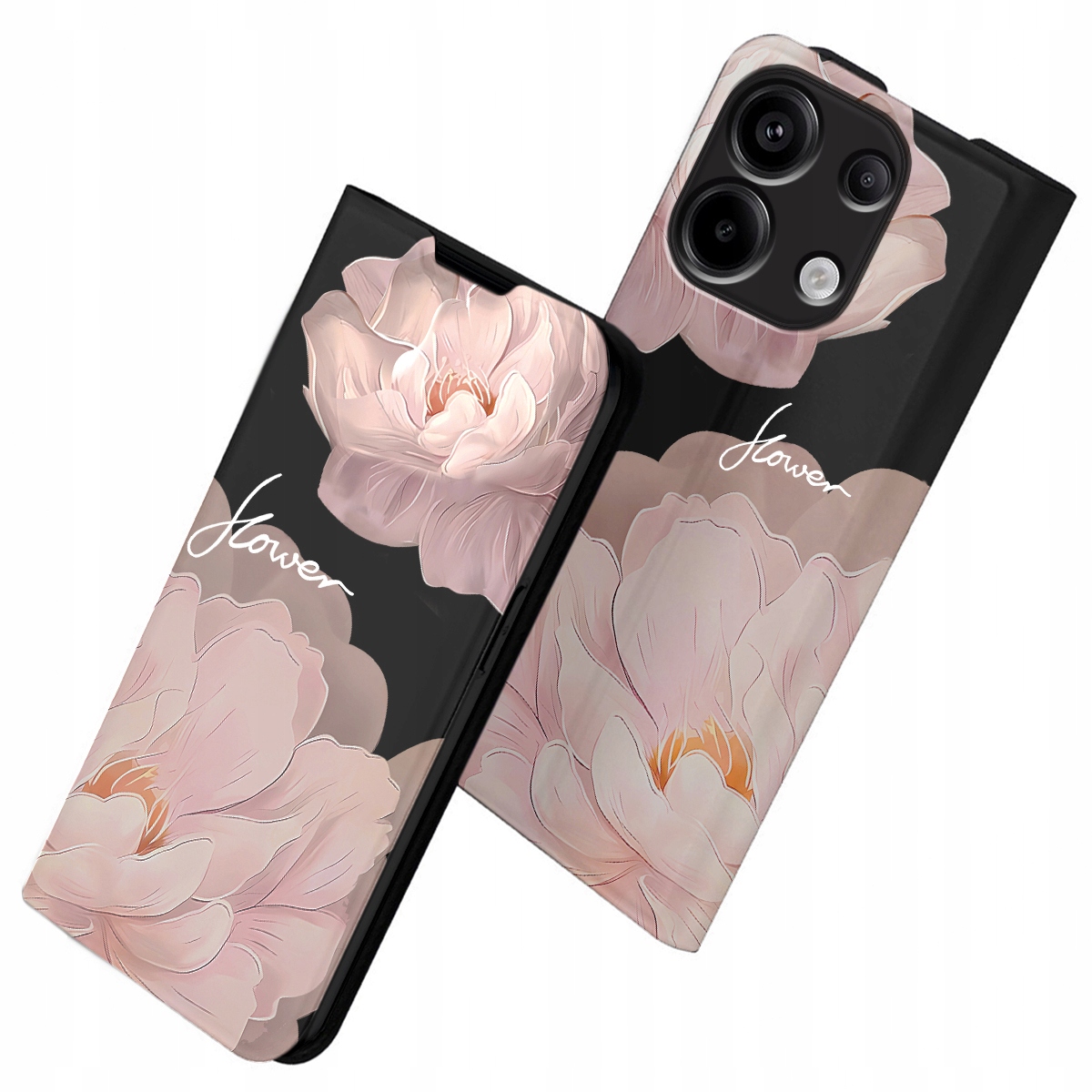 ETUI Z KLAPKĄ DO XIAOMI REDMI NOTE 13 / 13 4G PORTFEL MAGNET KWIATY + SZKŁO