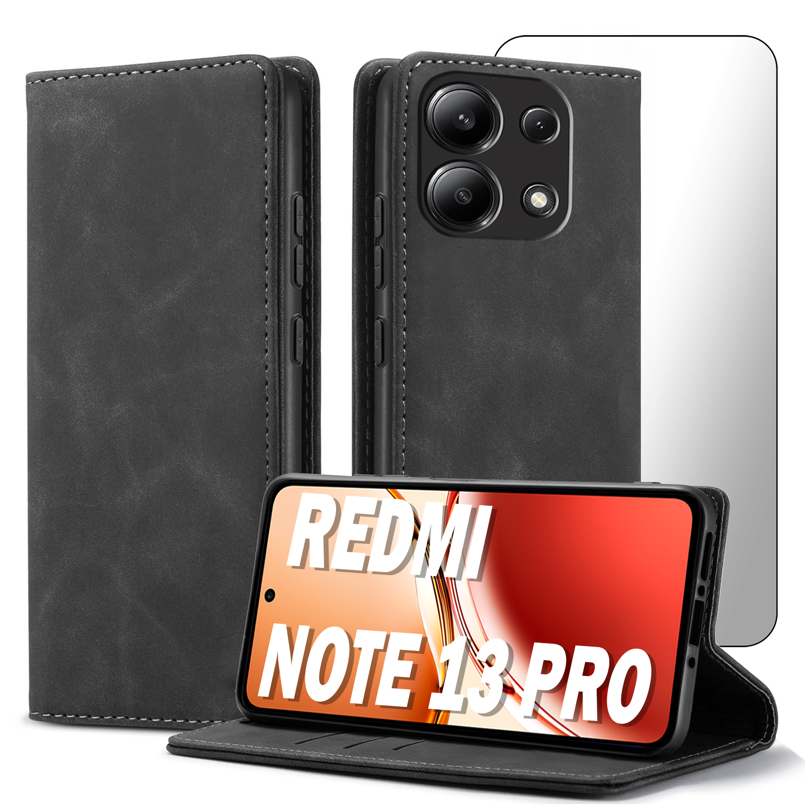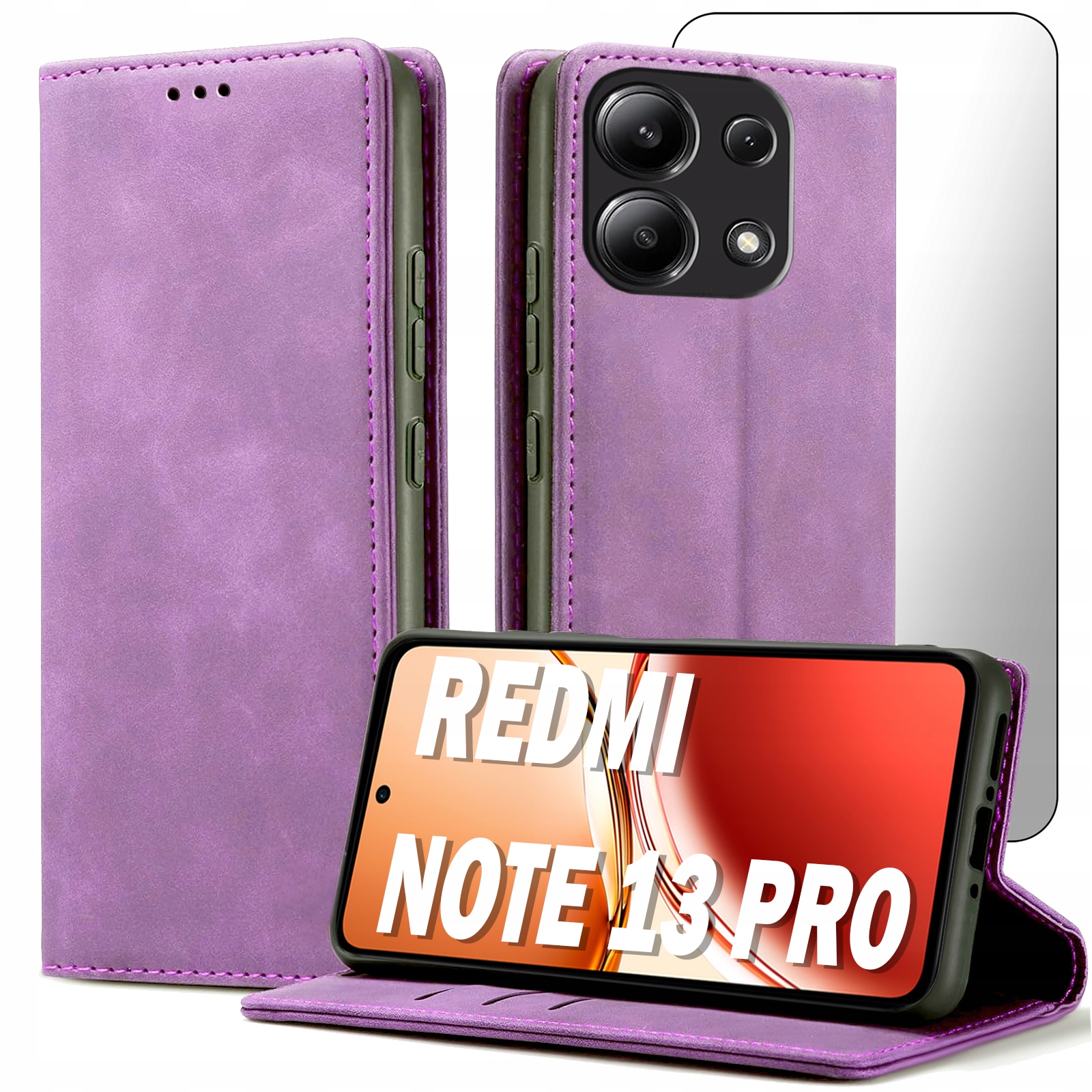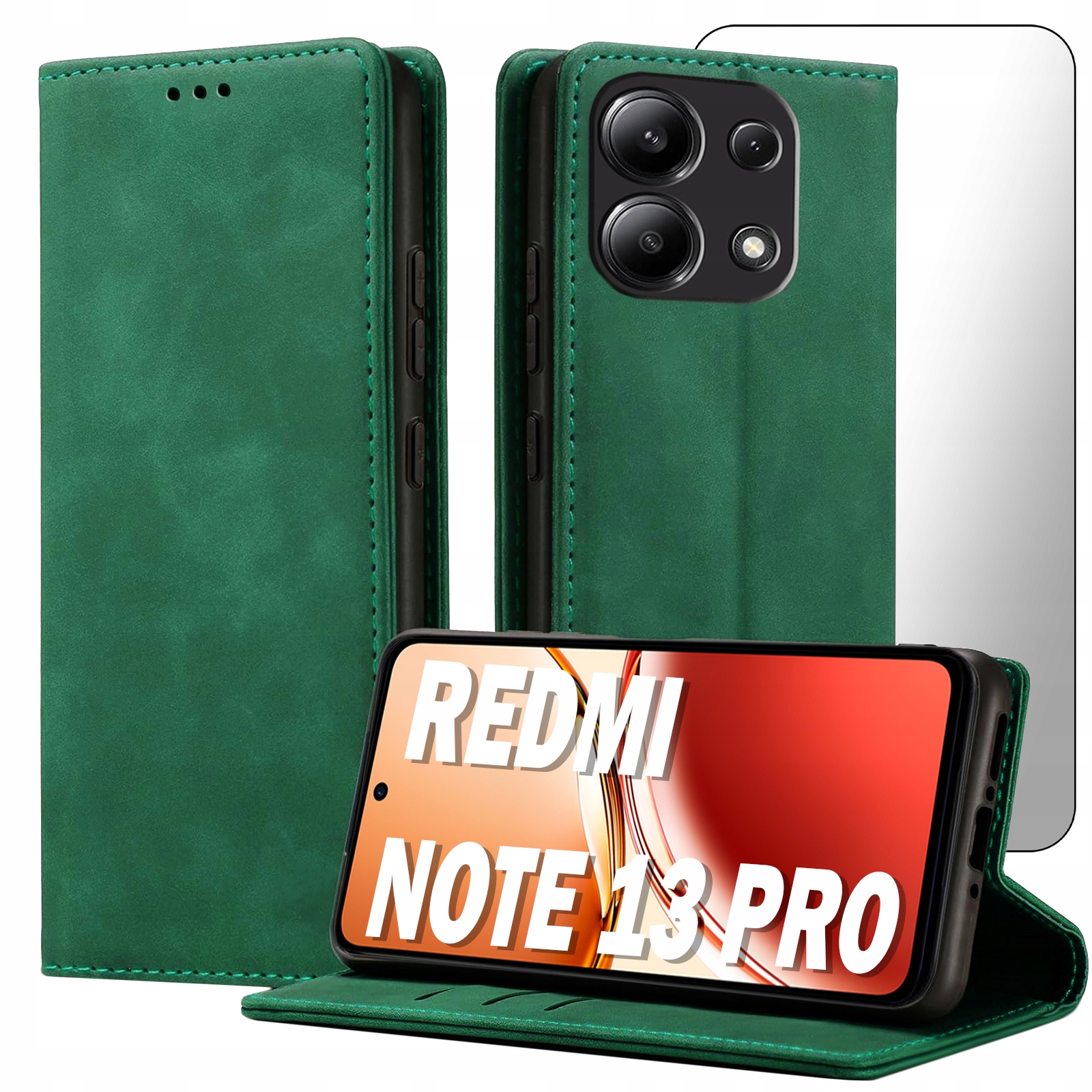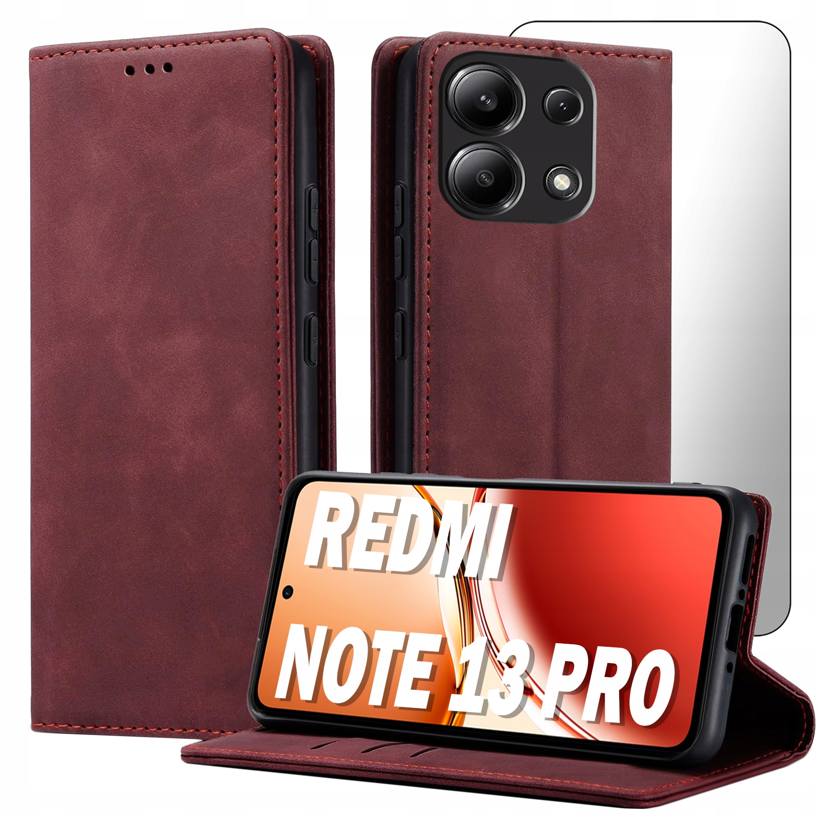 ETUI Z KLAPKĄ DO XIAOMI REDMI NOTE 13 PRO 4G / POCO M6 PRO ECOSKÓRA + SZKŁO