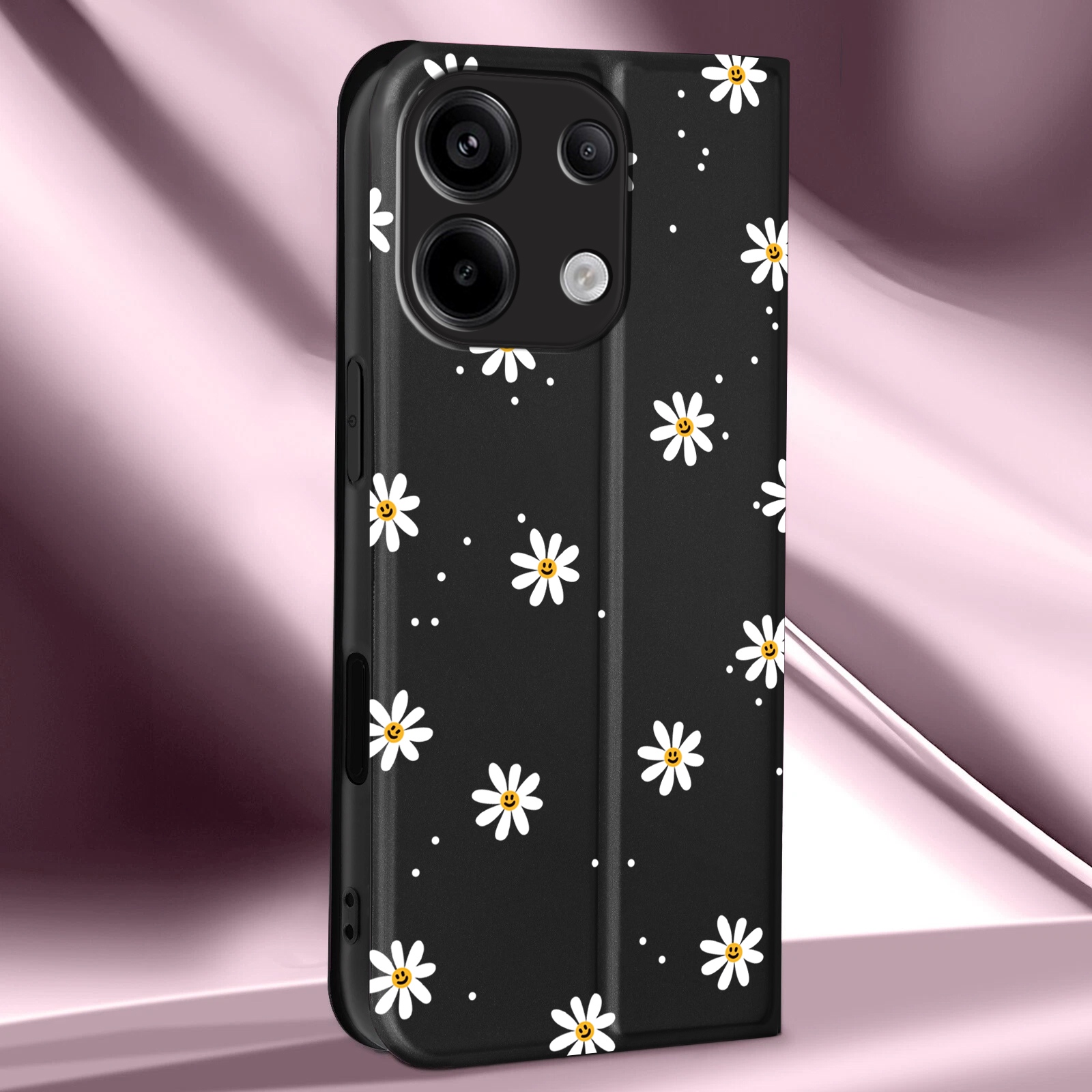 - Stylowy nadruk stokrotek – wyrazisty, trwały wzór, który dodaje pozytywnej energii i wyróżnia telefon na tle innych
