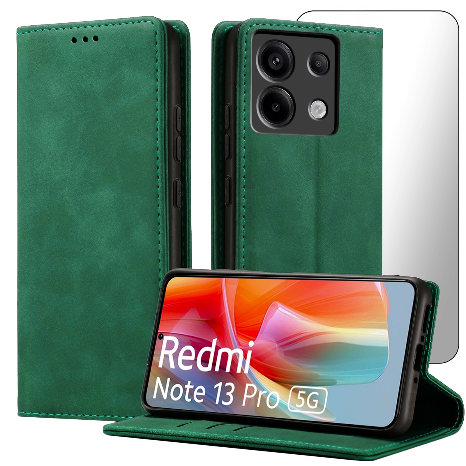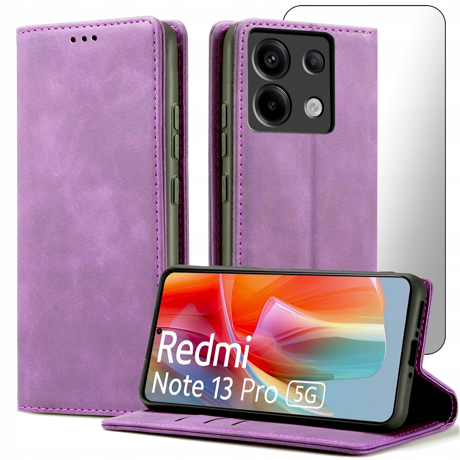 ETUI Z KLAPKĄ DO XIAOMI REDMI NOTE 13 PRO 5G ECOSKÓRA MAGNETYCNE + SZKŁO